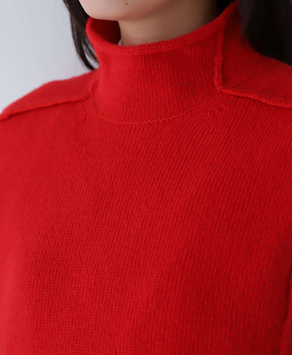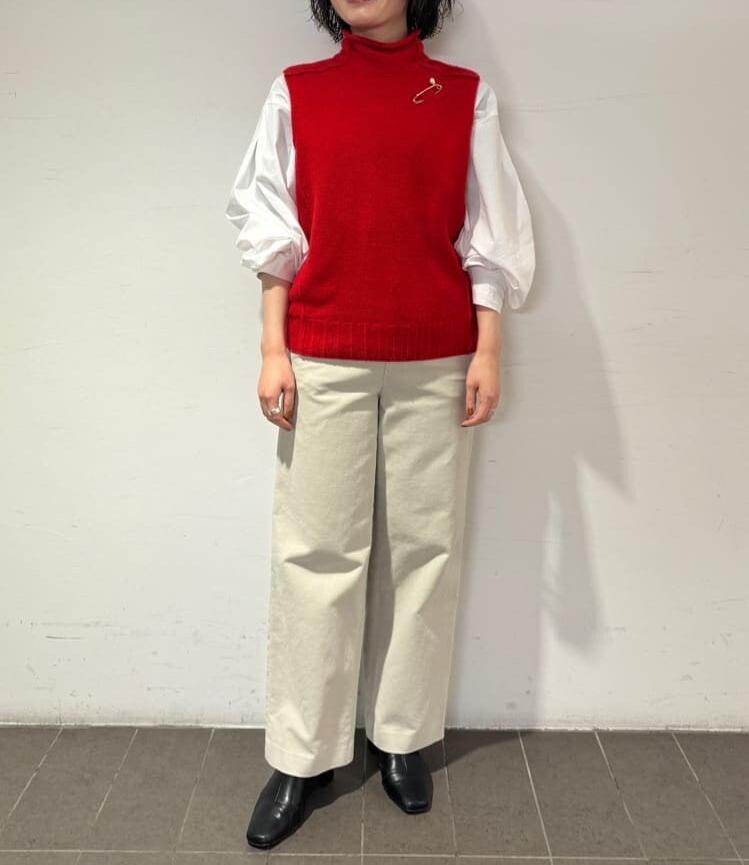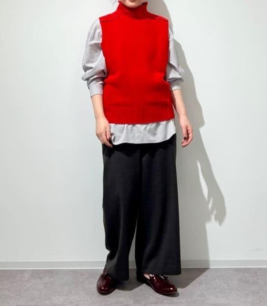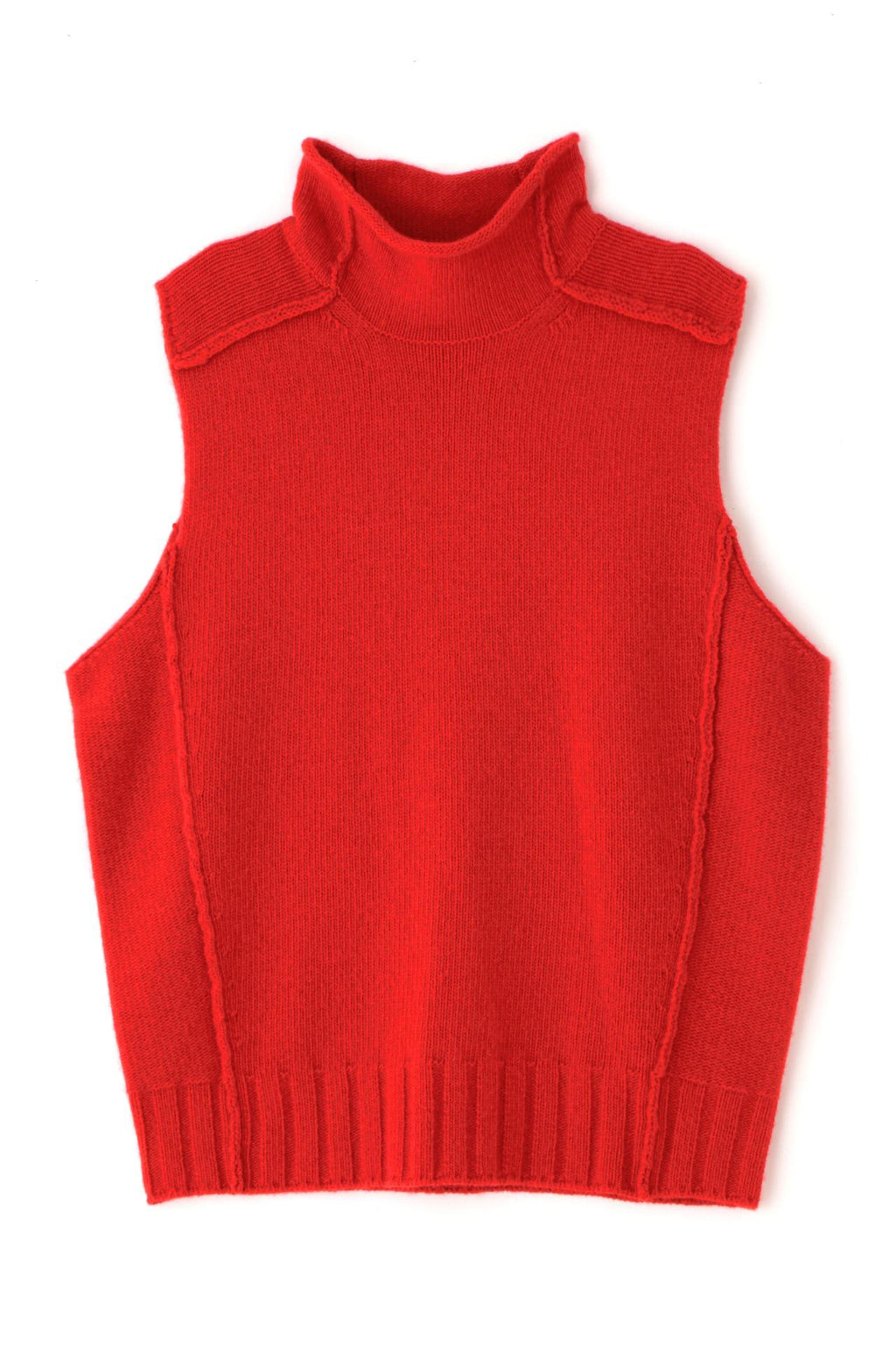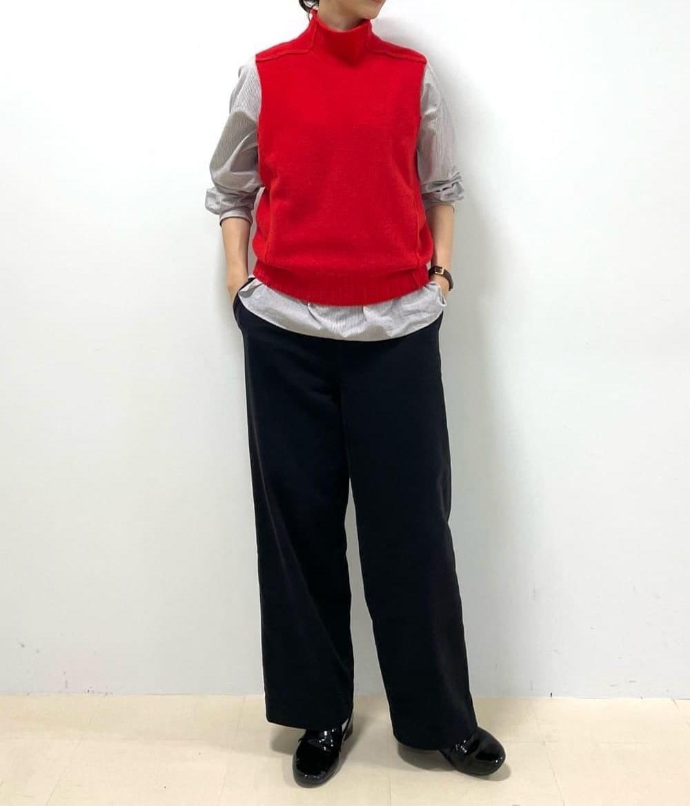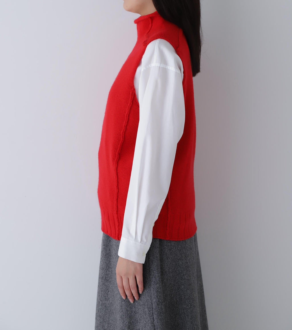 採用色彩鮮明的低針密度羊毛製成的高領背心。特意將拼接縫露出,展現適度的休閒感。
