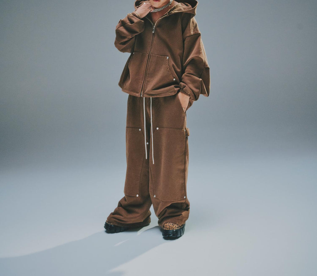 以具有適中厚度和高級感質感的重磅針織面料為基底,採用90年代風格的寬鬆褲型,打造出與以往不同的休閒褲。
