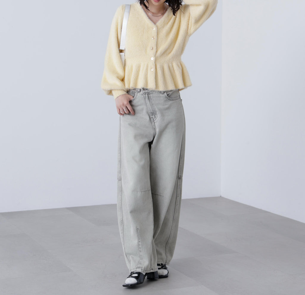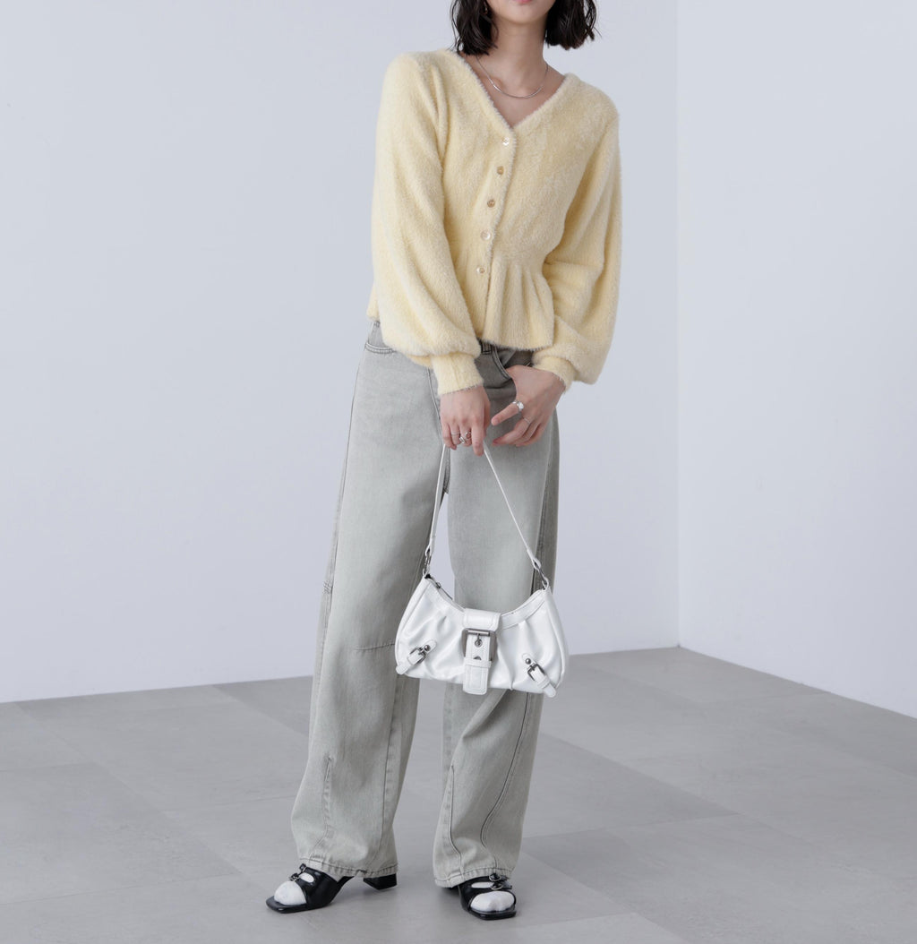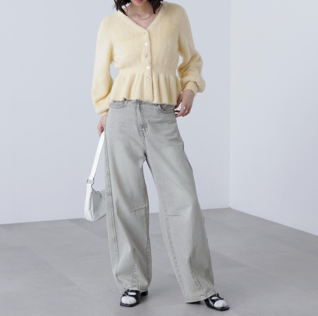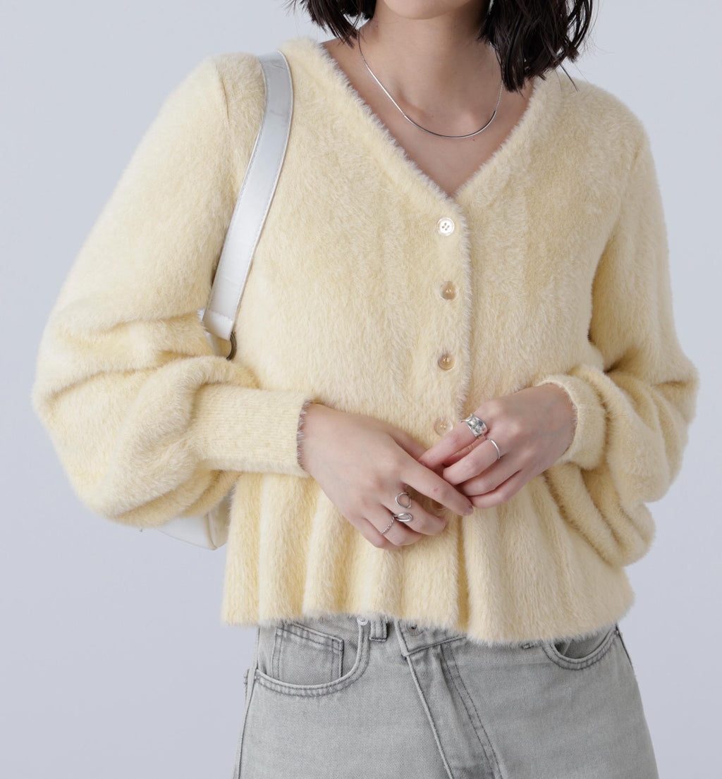 每年廣受好評的針織衫今年也登場!既可作為上衣,也可作為外套穿著,輕盈舒適的毛絨針織開衫。採用短毛足、不易刺癢肌膚的材質,並以柔軟光滑的線材製成。毛絨部分不易脫落,密實且緊密。將腰圍做成羅紋編織以塑造曲線,裙擺則採用佩普拉姆設計,打造修飾身形的輪廓。袖口採用褶皺設計,形成蓬鬆的袖子。單穿就像毛衣套頭衫,也可以搭配襯衫或高領上衣作內搭,或打開前襟作為外套搭配連衣裙等多種穿法。