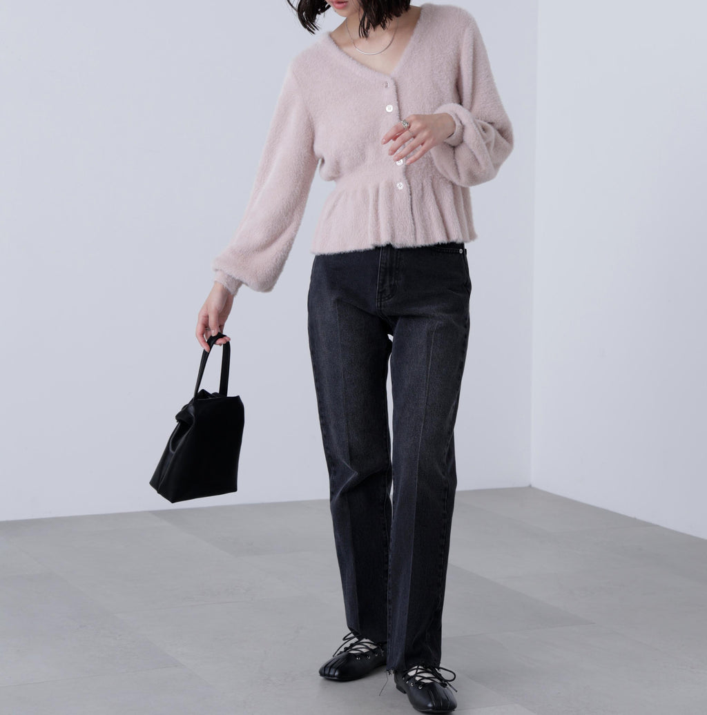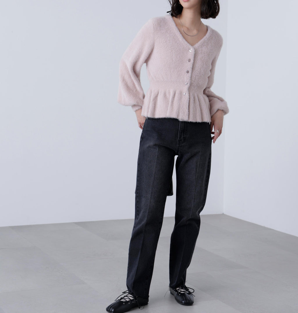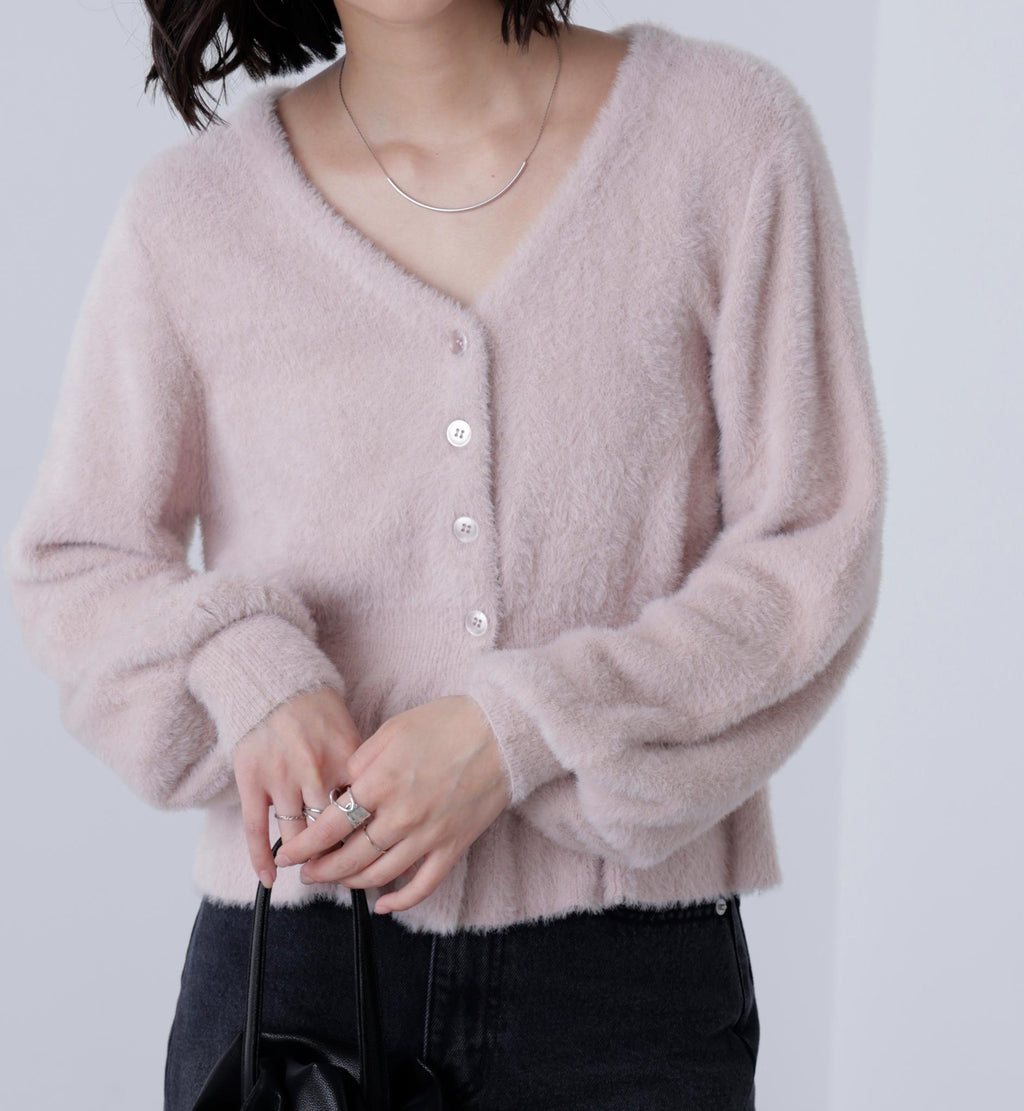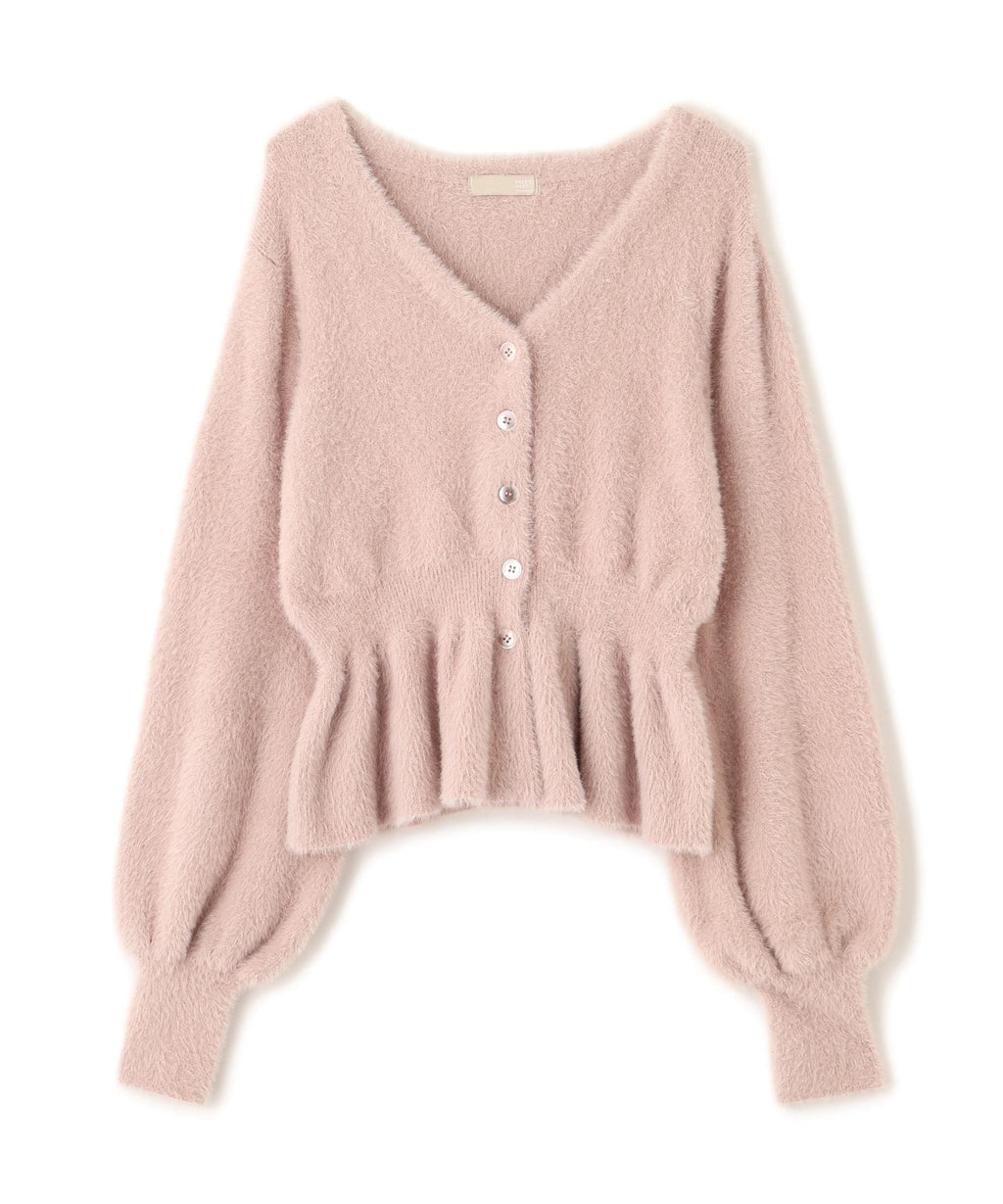 每年廣受好評的針織衫今年也登場!既可作為上衣,也可作為外套穿著,輕盈舒適的毛絨針織開衫。採用短毛足、不易刺癢肌膚的材料,並以柔軟光滑的線材製成。毛絨部分不易脫落,密度緊實。將「腰圍」做成羅紋編織以塑造身形,裙擺則採用佩普拉姆設計,打造修飾身形的輪廓。袖口採用褶皺設計,形成蓬鬆的袖子。單穿時像毛衣套頭衫,也可以搭配襯衫或高領上衣作內搭,或打開前扣作為外套搭配連衣裙等多種穿法。