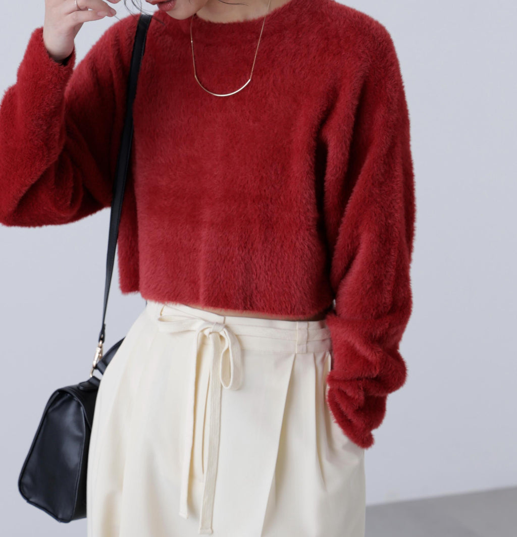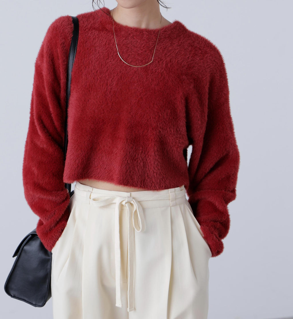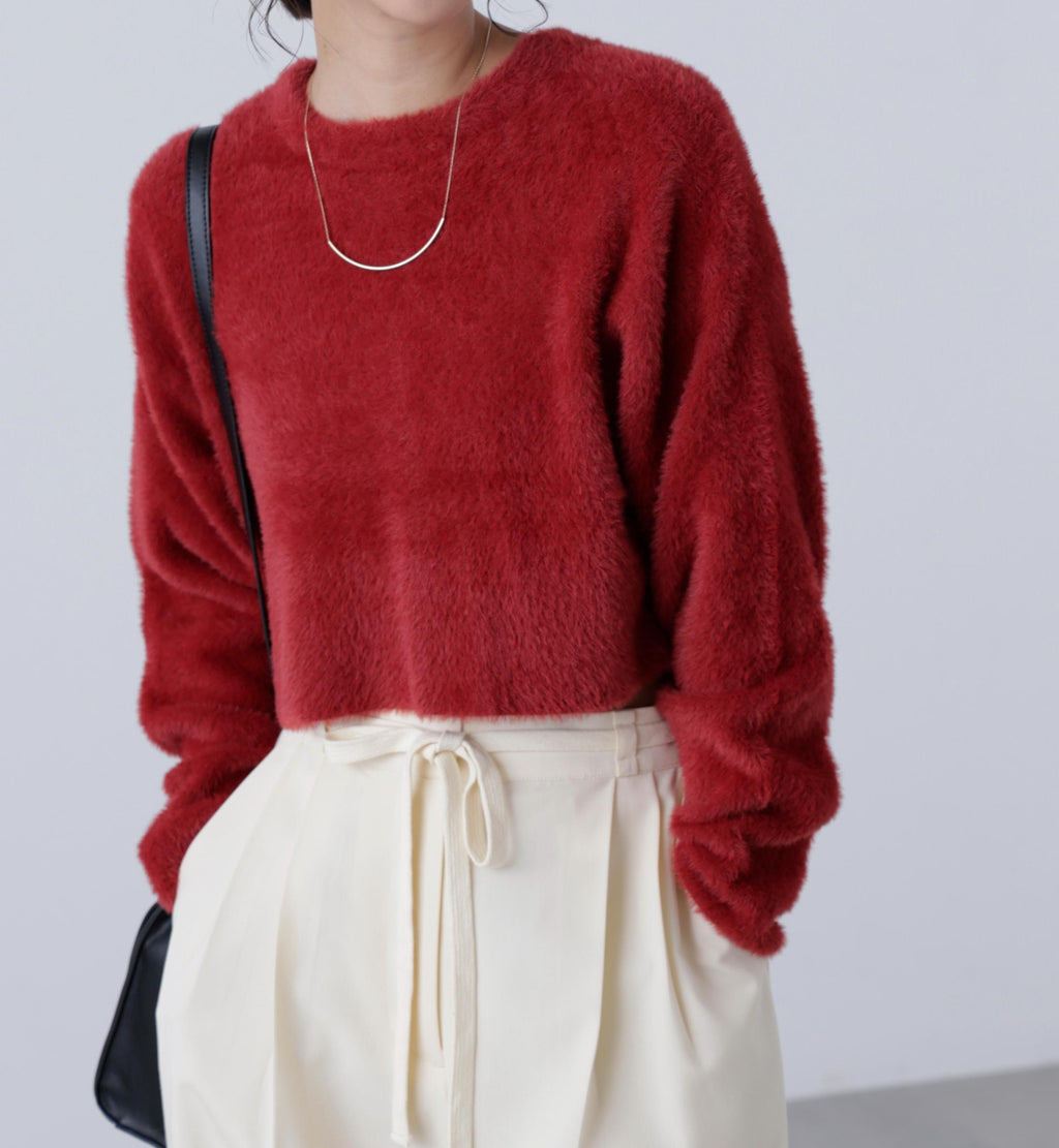 前後雙向短款短毛絨針織衫