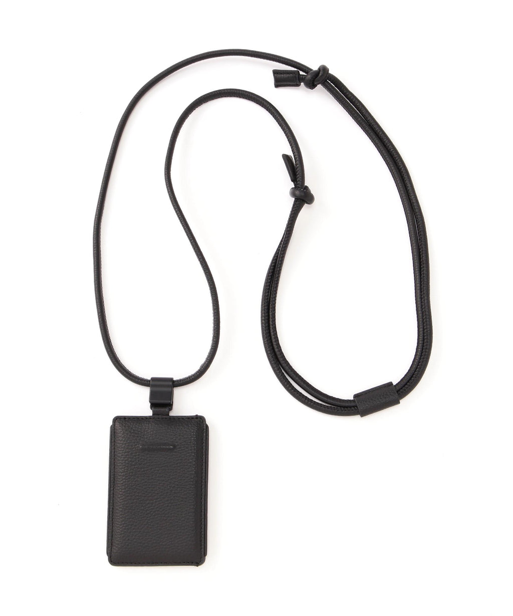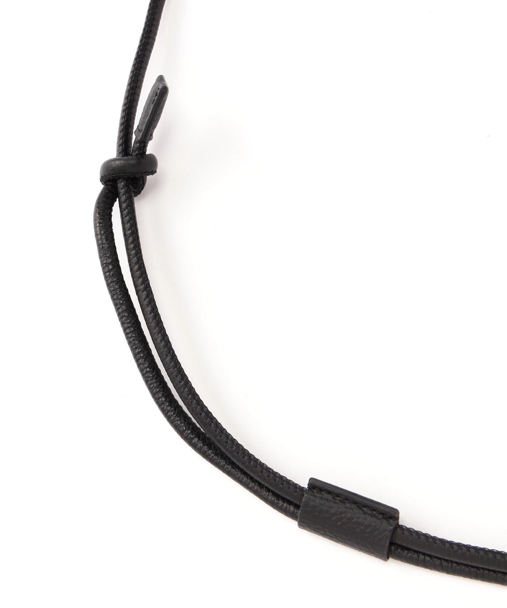 ・用可調節長度的圓形繩子製成的皮革掛繩。