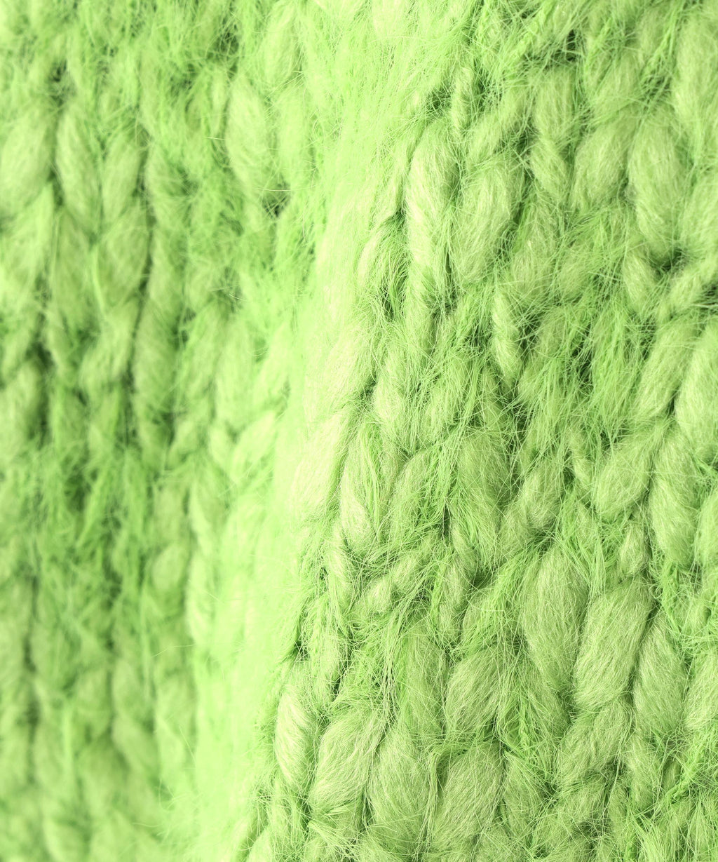 採用粗號的麻花紗與毛絨紗混紡的編織。