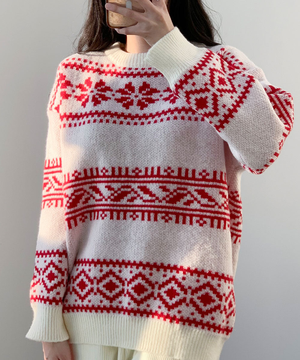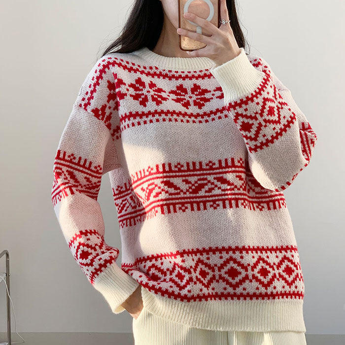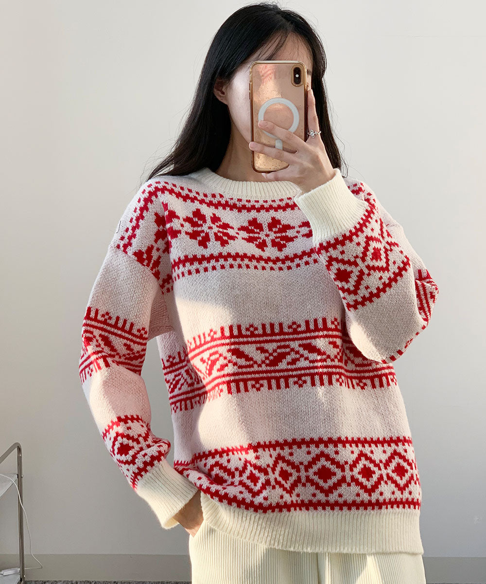 聖誕 針織 毛衣 圖案針織 韓國時尚 秋冬 Christmas 聖誕針織 照片映え 寬鬆 大碼 紅色 女士 FREE 尺寸 約會 派對 新年會 忘年會 冬裝 成人 成人休閒 辦公室休閒 韓國