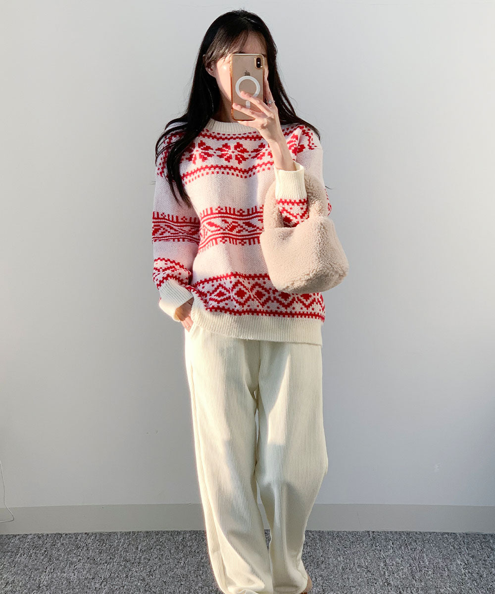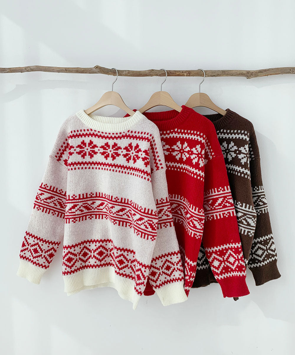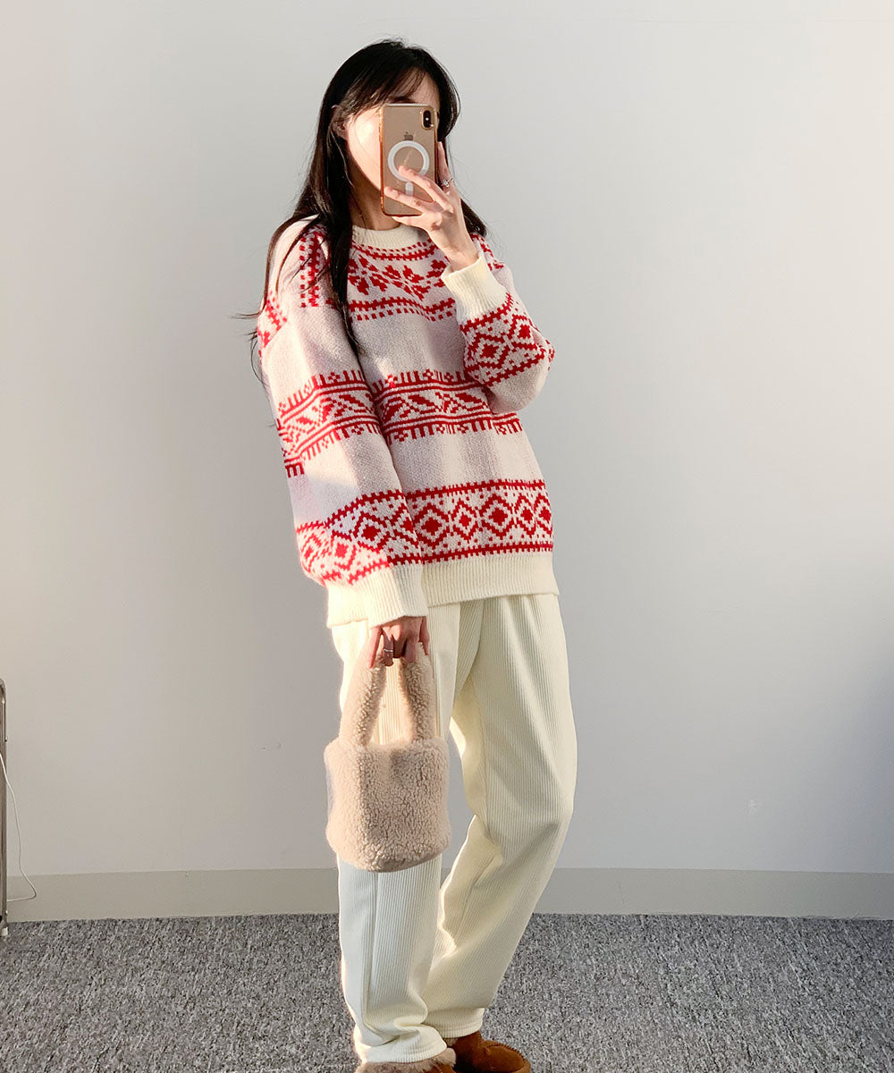 聖誕 針織 毛衣 圖案針織 韓國時尚 秋冬 Christmas 聖誕針織 照片映え 寬鬆 大碼 紅色 女士 FREE 尺寸 約會 派對 新年會 忘年會 冬裝 成人 成人休閒 辦公室休閒 韓國
