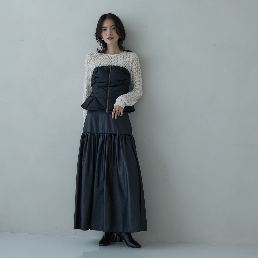 搭配簡約上衣即可完成突顯裙子存在感的風格。
