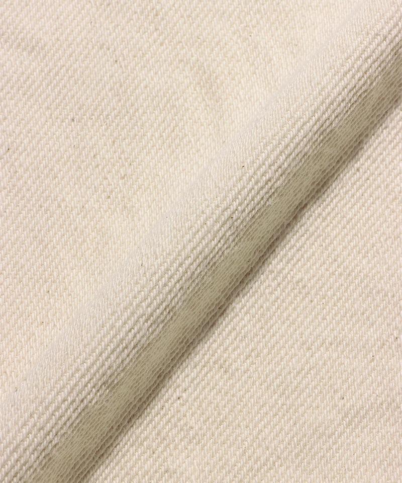 〈FOUNDOUR〉所用的是,粗番手的甘撚紗線,織成的更為柔軟的丹寧布料。除了外觀的震撼感外,穿著時的垂墜感也獨特,打造出具有良好傳統感且時尚的褲子。