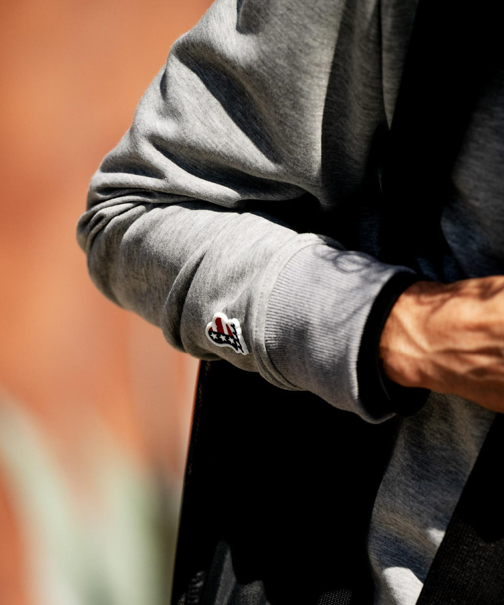 品牌主題與標誌採用厚層金屬硅膠印花,分別位於胸部和左臂部分。