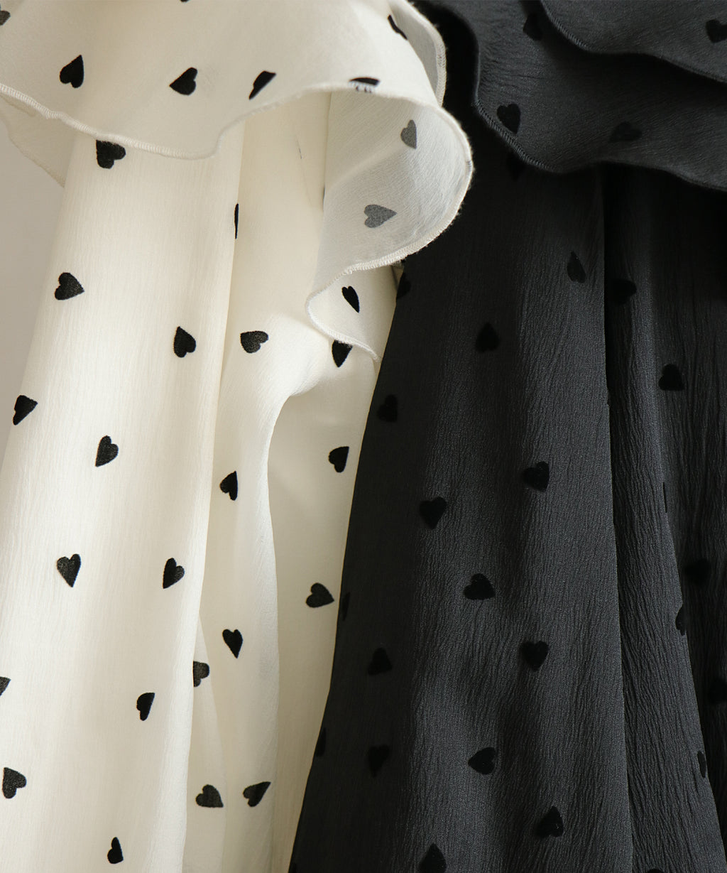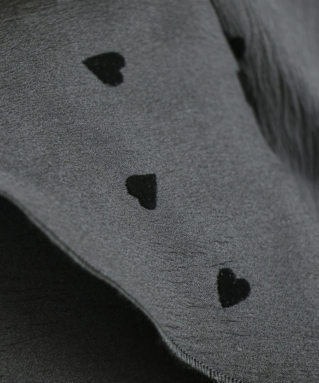 手感良好的絨毛材質心形圖案可愛的襯衫。領口裝飾有蝴蝶結,成為造型的亮點。蓬鬆且有量感的袖子是重點。建議搭配素色下身,形成平衡良好的搭配。■面料透視感[やや有り]內襯[無し]彈性[やや有り]布料厚度[薄手]