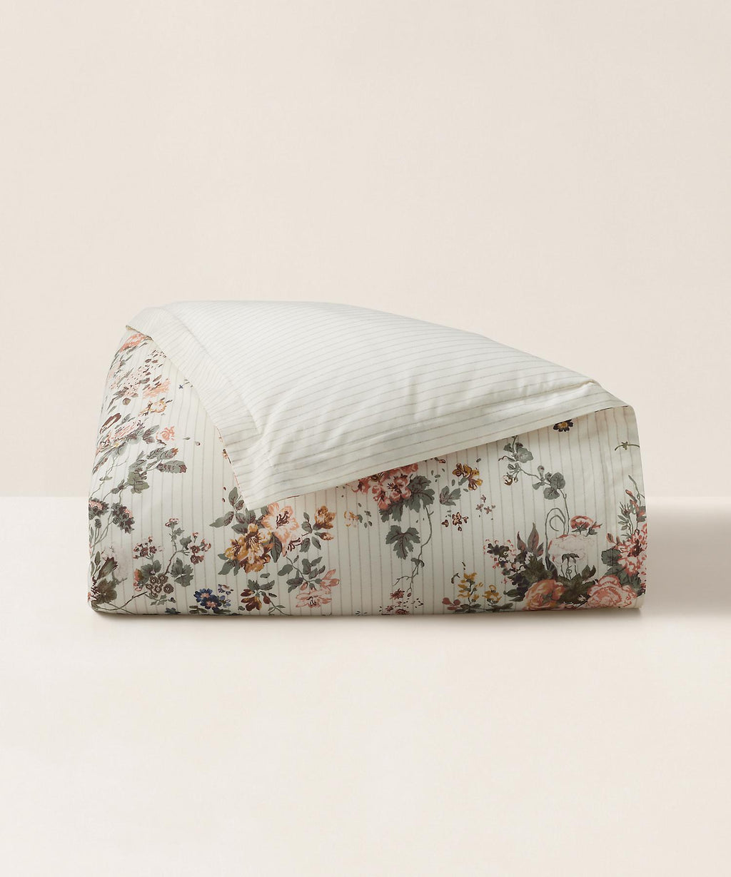 融合了經典英國風格的花卉圖案和男裝風格的粉筆條紋的湯普森羽絨被套。結合了長期受到喜愛的Ralph Lauren的兩個主題,為掛被增添了標誌性風格。使用棉花平紋的織物在葡萄牙製作,創造出光滑的觸感和精緻的垂感的產品。
