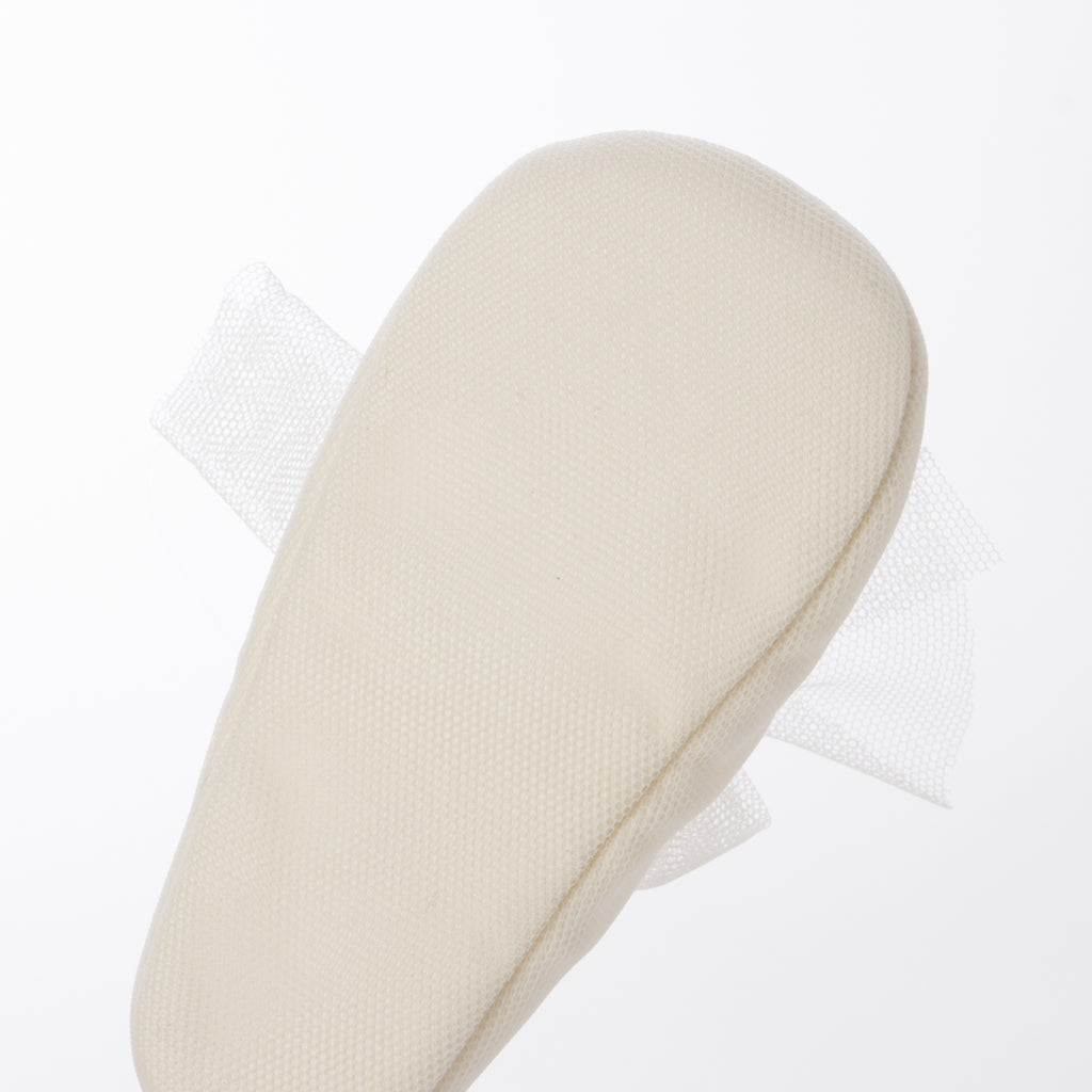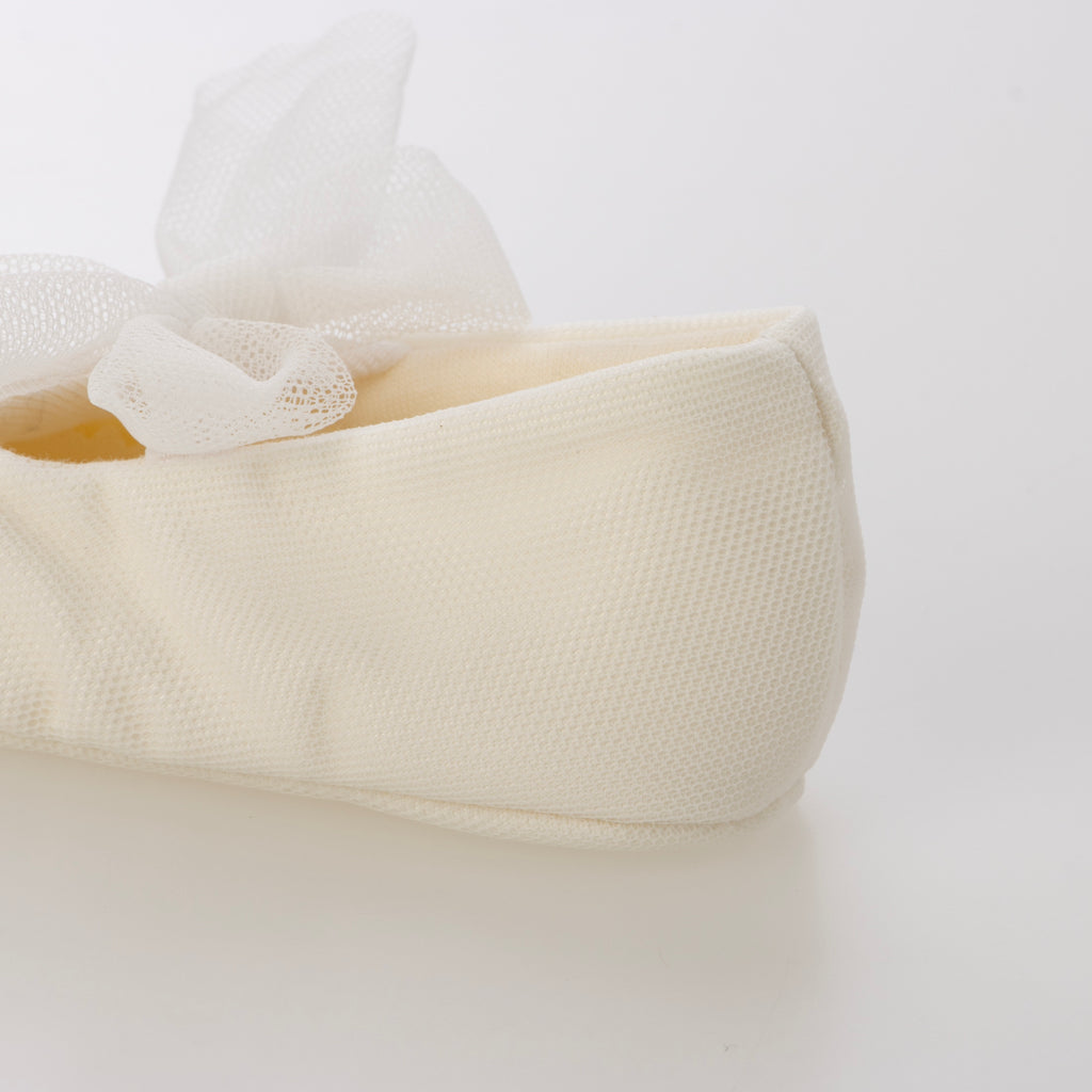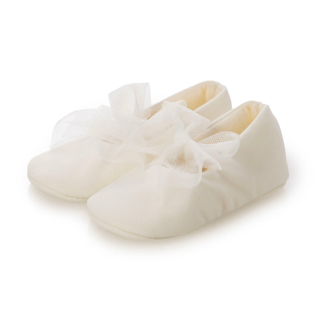用蕾絲材質製成的緞帶為嬰兒鞋增添華麗感。