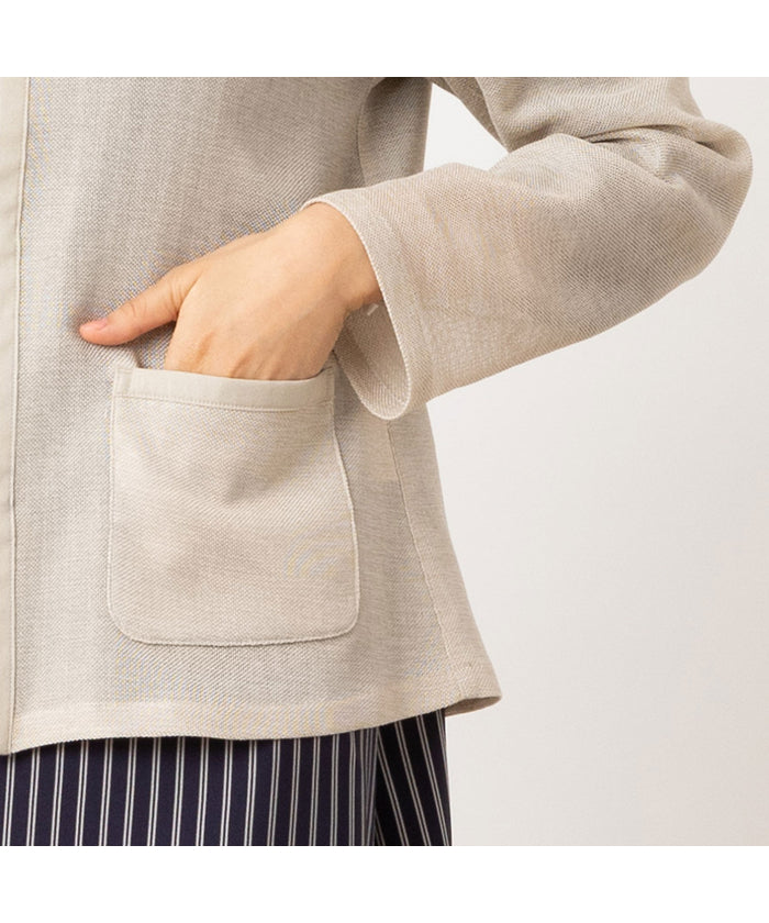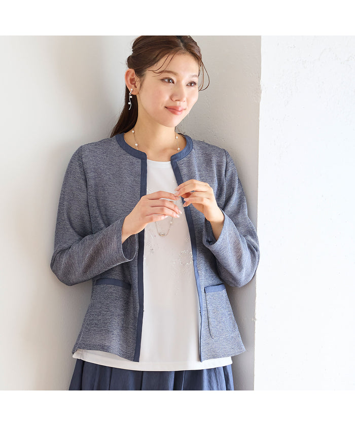 這是一款使用細緻且有著清爽感的交織材質製成的外套。