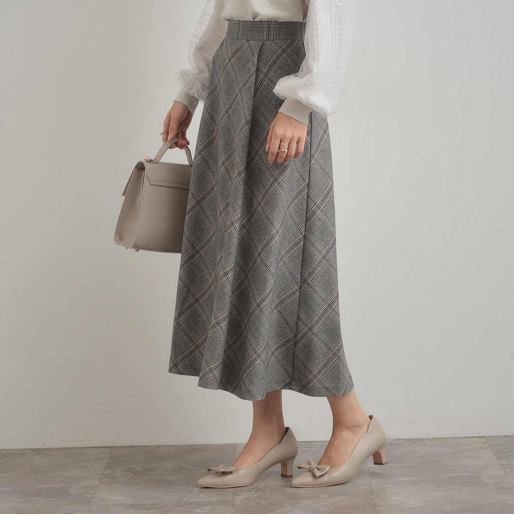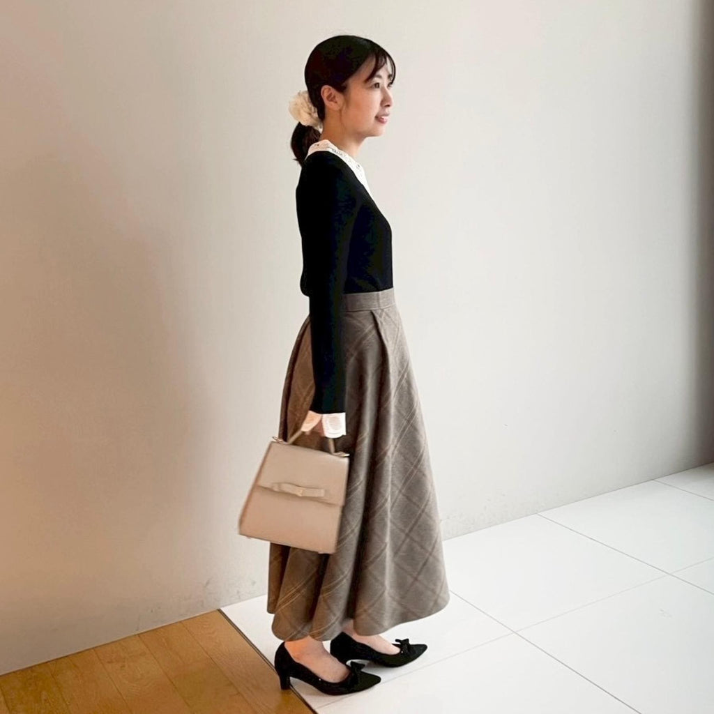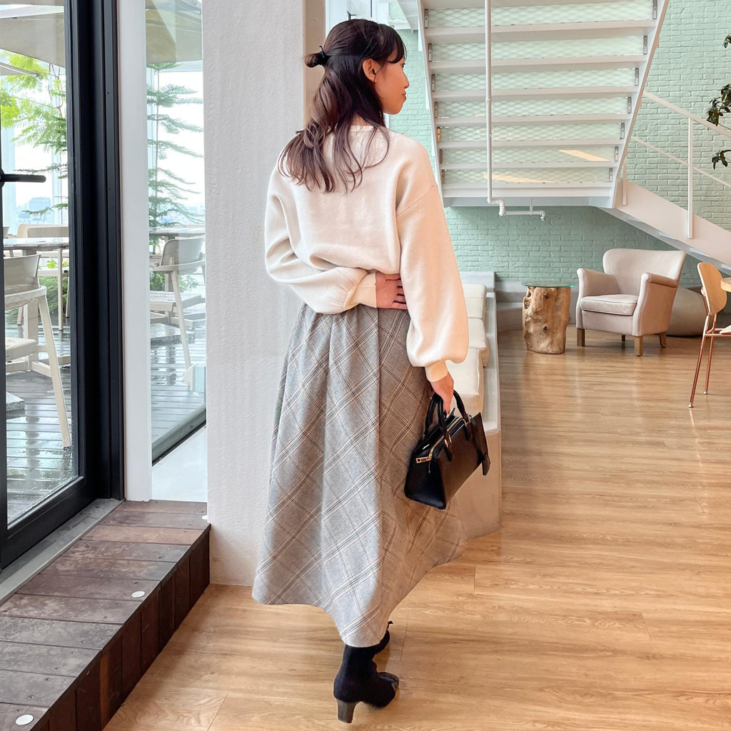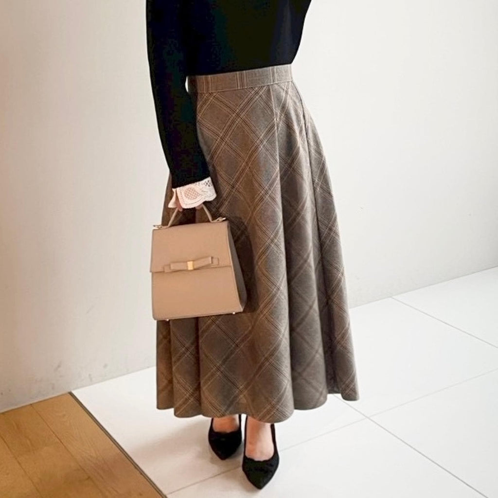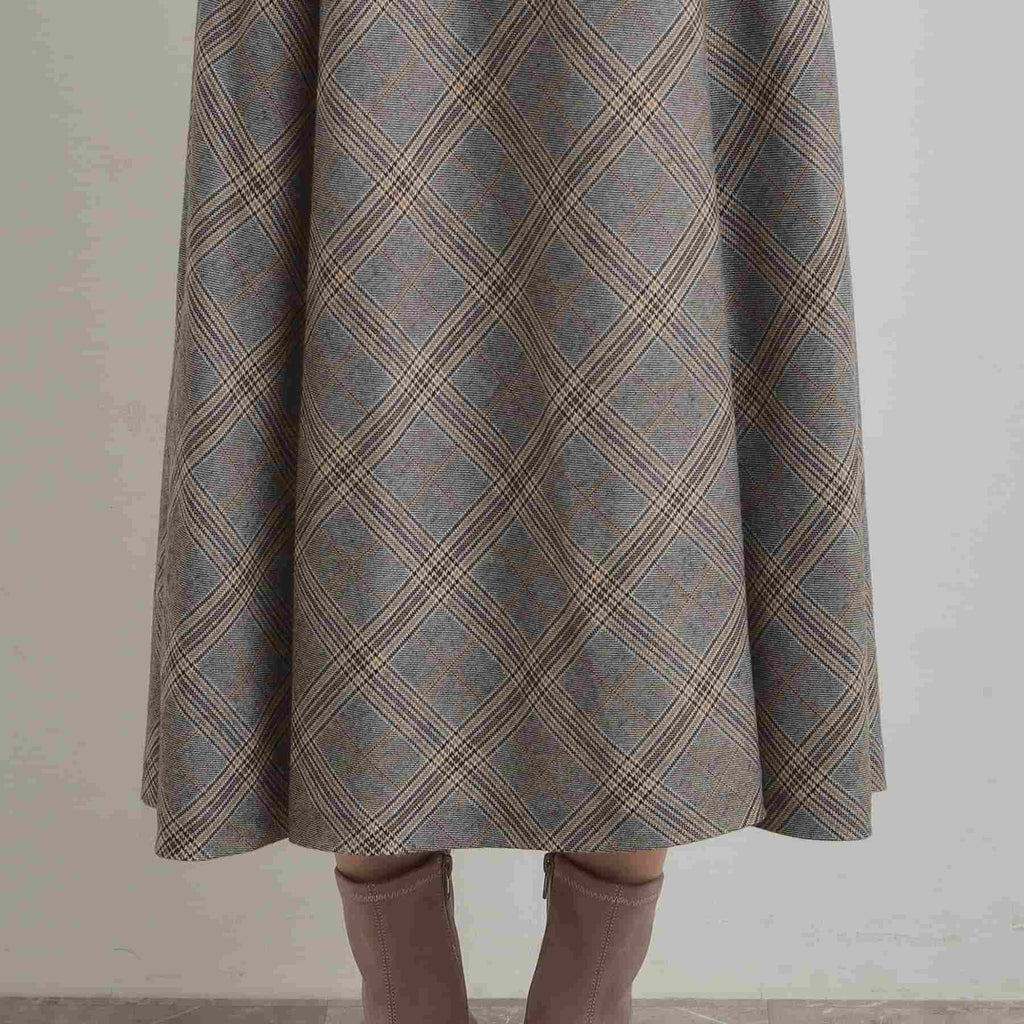 古典氛圍的格紋設計,與素色上衣搭配的單品也能展現出成熟優雅的風格。漂亮的喇叭輪廓也是推薦的重點。