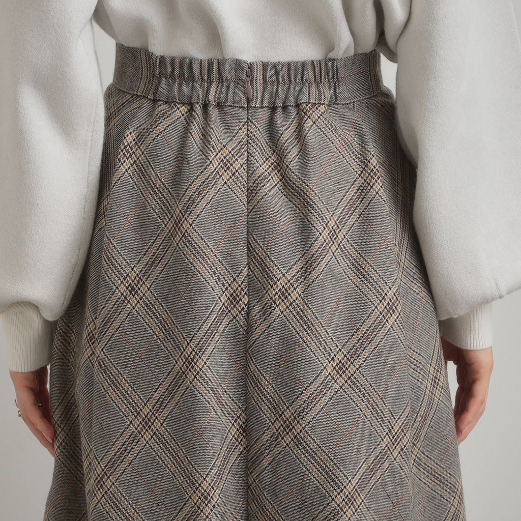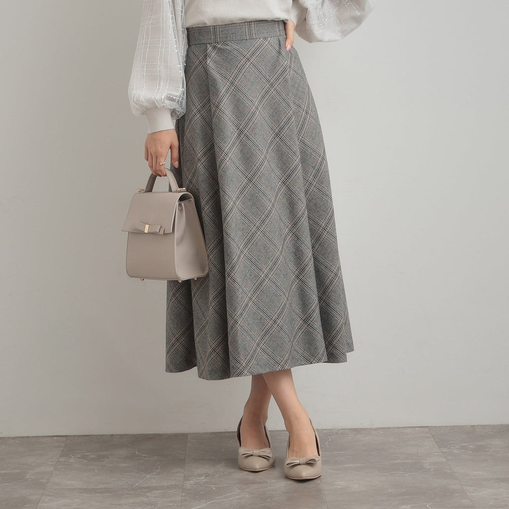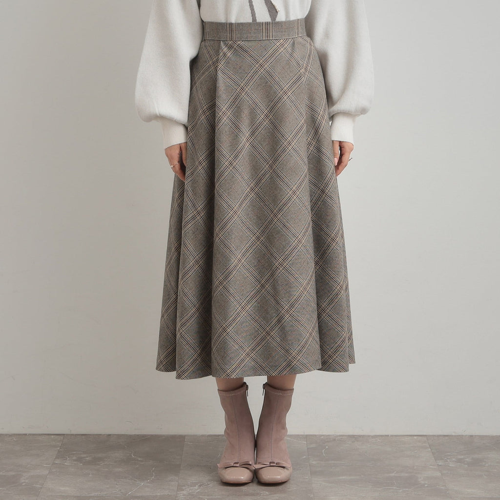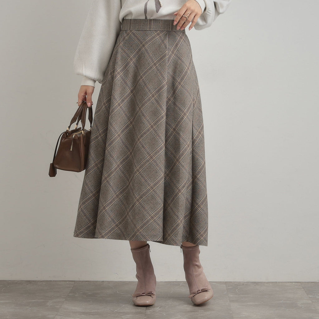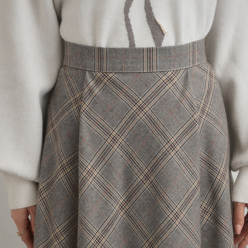 古典氛圍的格紋設計,與素色上衣搭配的單品也能展現出成熟優雅的風格。漂亮的喇叭輪廓也是推薦的重點。