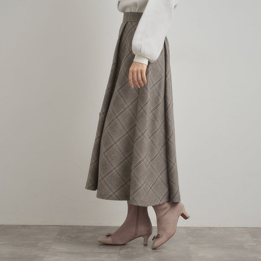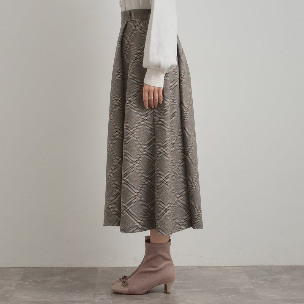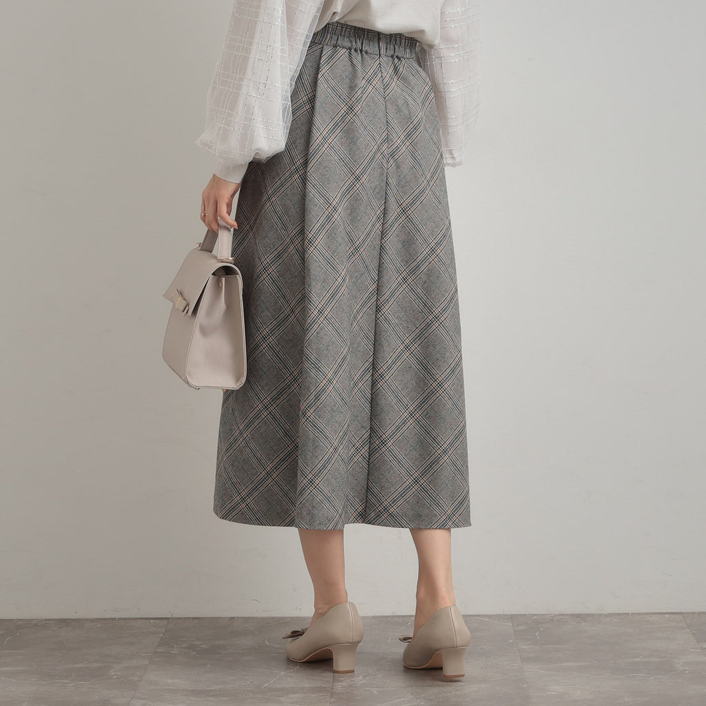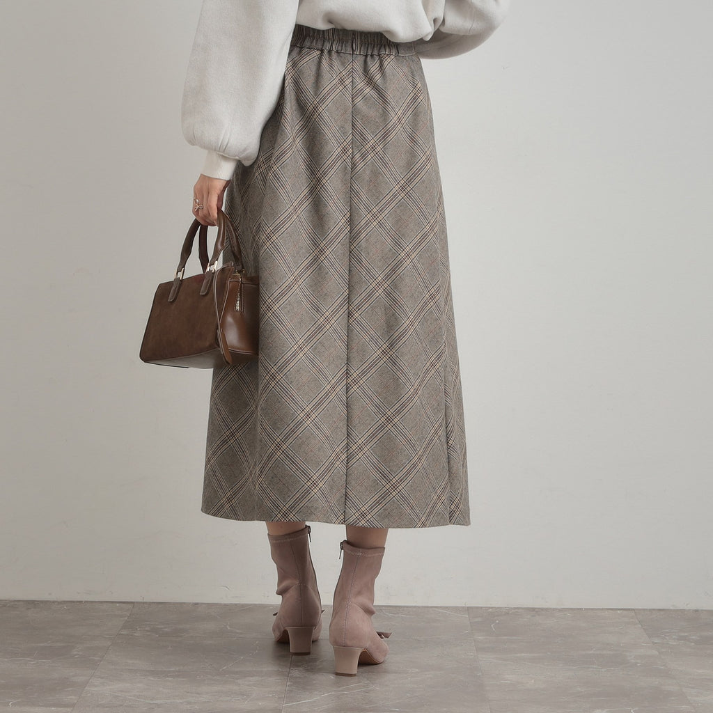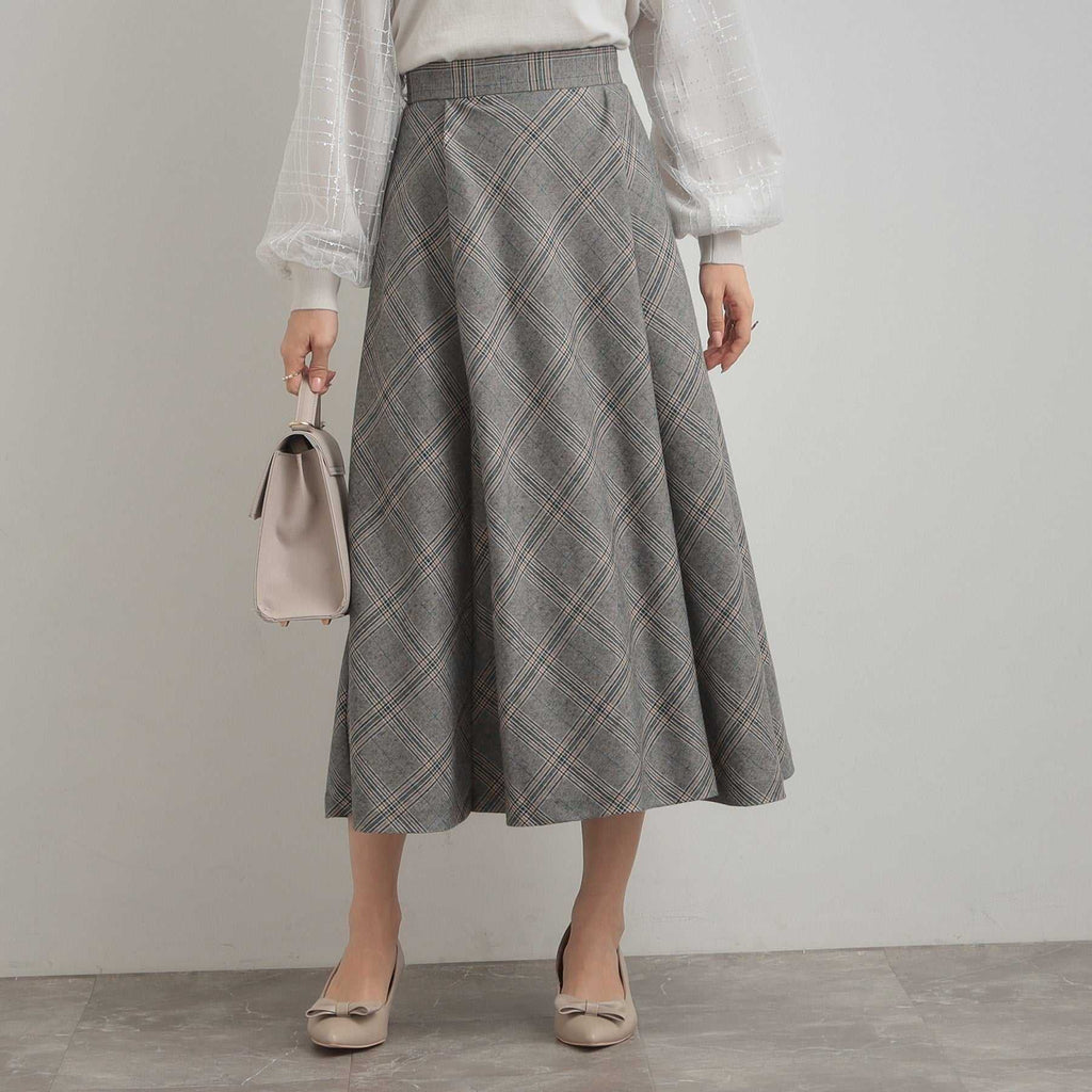 古典氛圍的格紋設計,與素色上衣搭配的單品也能展現出成熟優雅的風格。漂亮的喇叭輪廓也是推薦的重點。