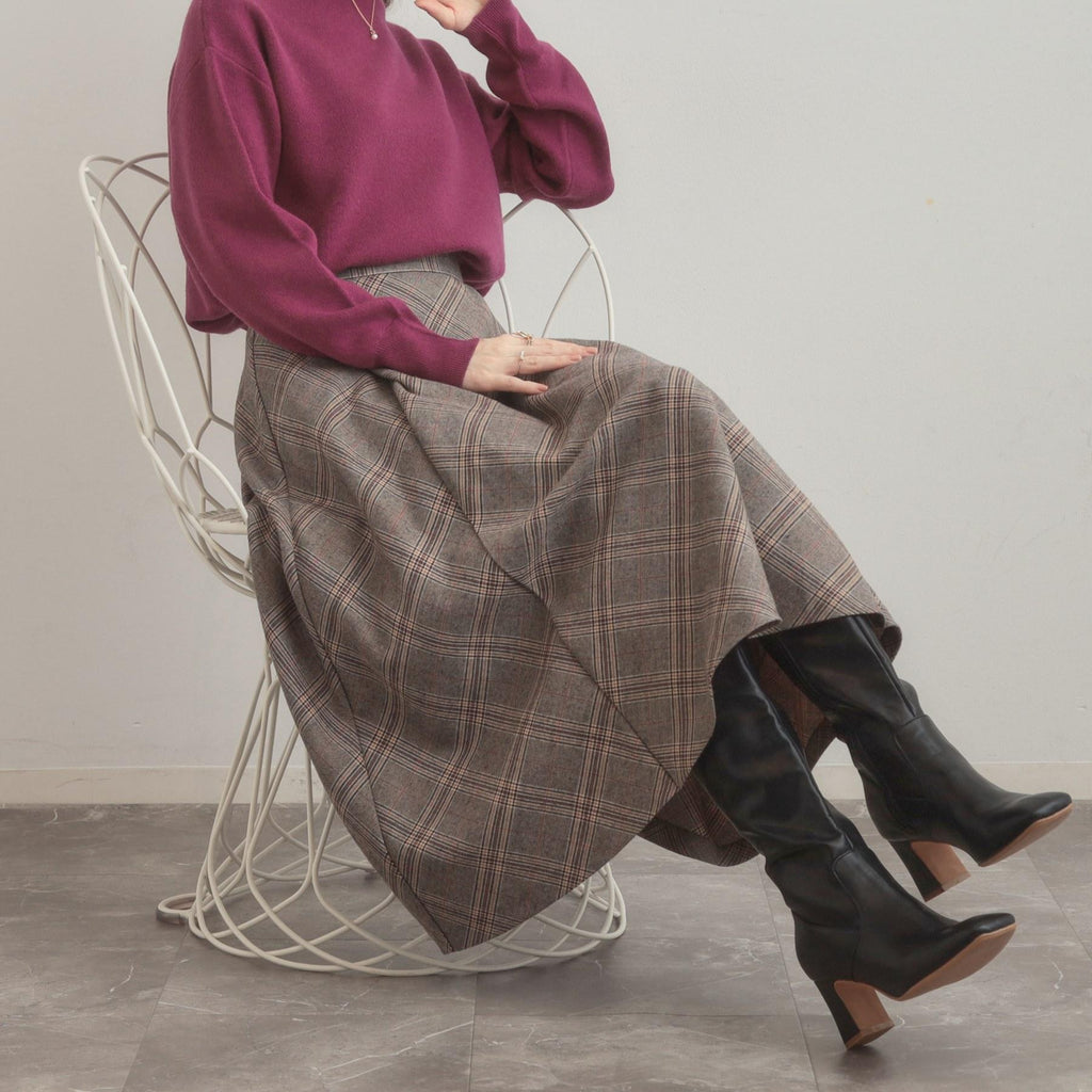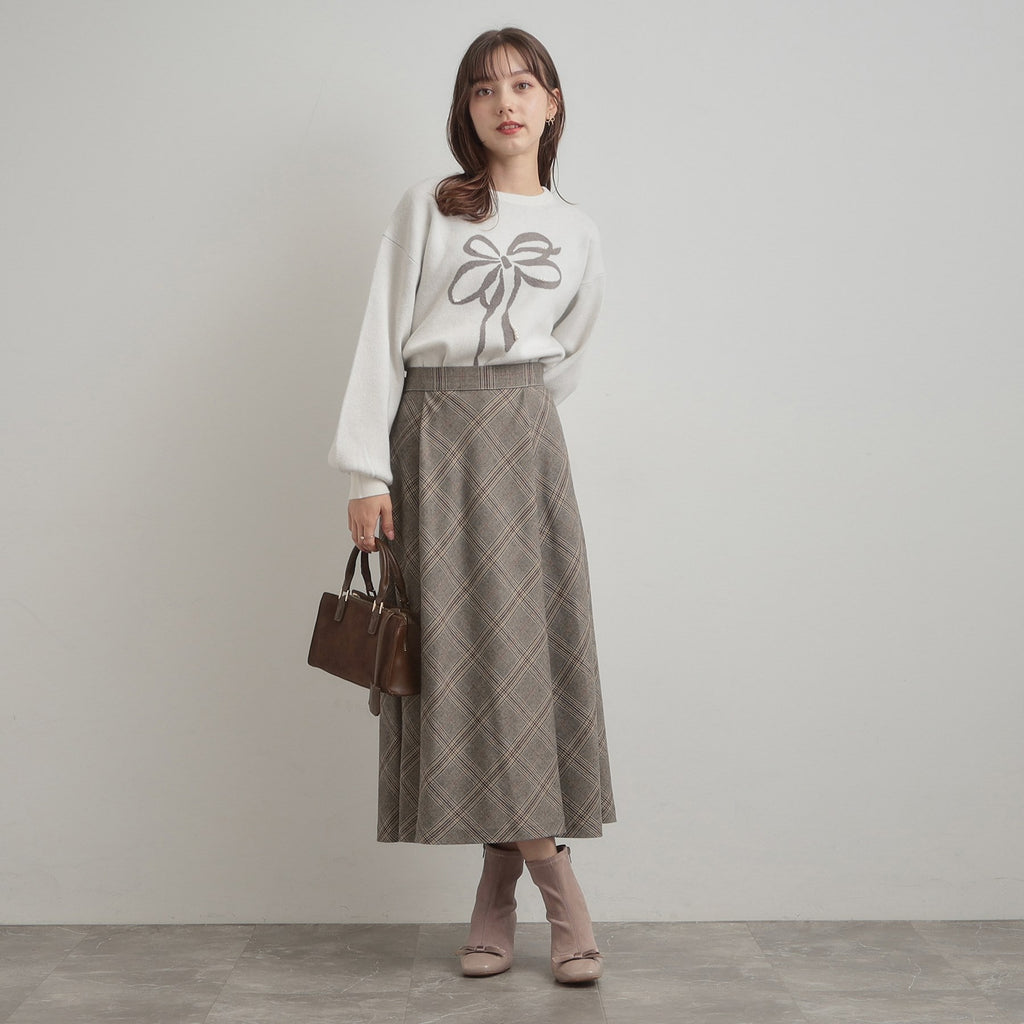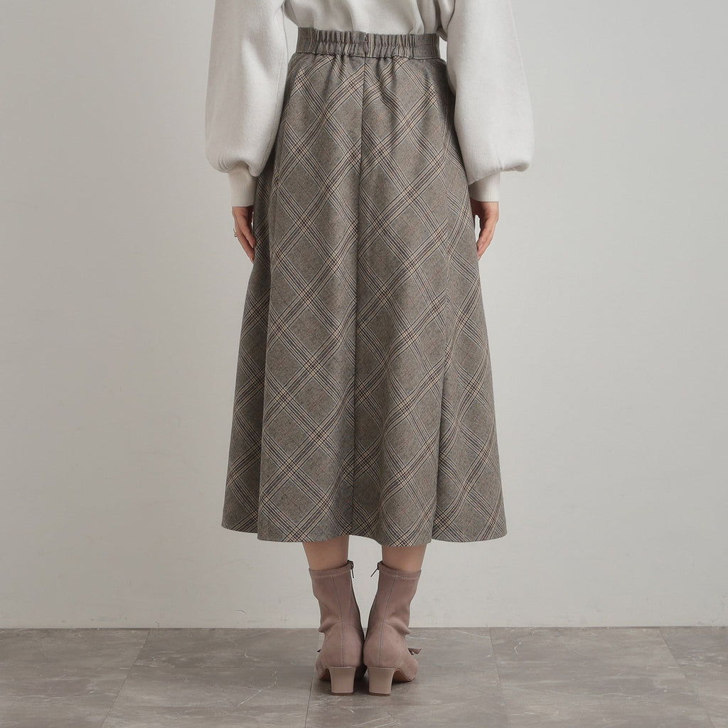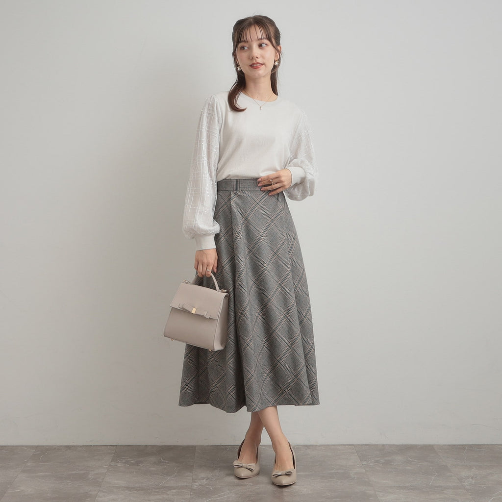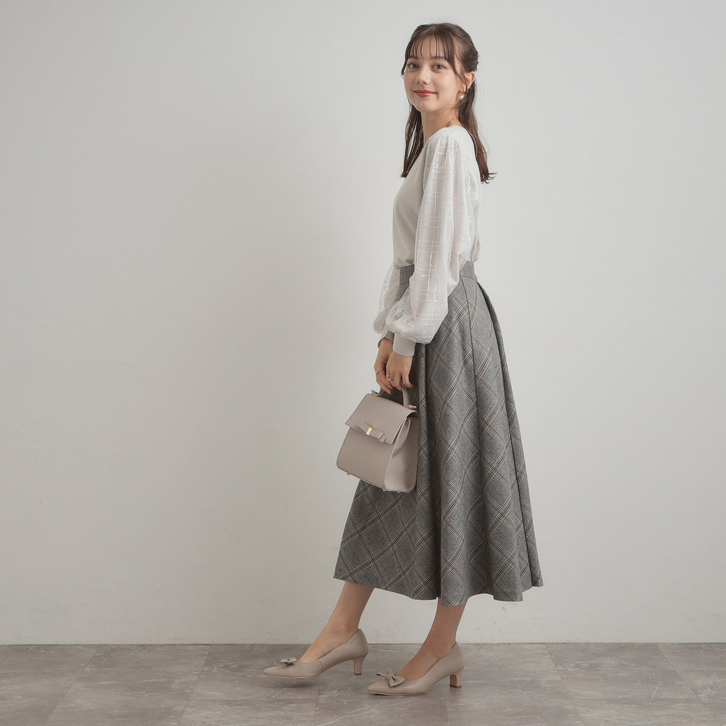 古典氛圍的格紋設計,與素色上衣搭配的單品也能展現出成熟優雅的風格。漂亮的喇叭輪廓也是推薦的重點。