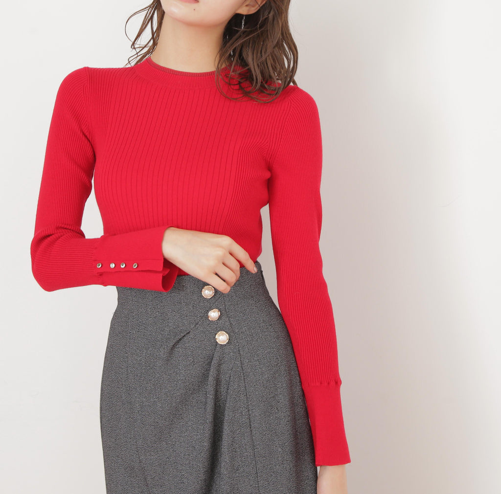 這是一款容易搭配任何下身的簡約羅紋針織衫。設計融入了當前流行的分層風格的領口。袖口的編織方式有所不同,使用比身體部分更纖細的線材,呈現出袖口風格的設計。袖口上的小金色鈕扣也是一個亮點。這款設計雖然簡單,但卻充滿了用心,建議可以將其腰圍進入下身搭配,或與連身裙進行分層搭配。※由於拍攝時的燈光關係,顏色可能會有所不同。