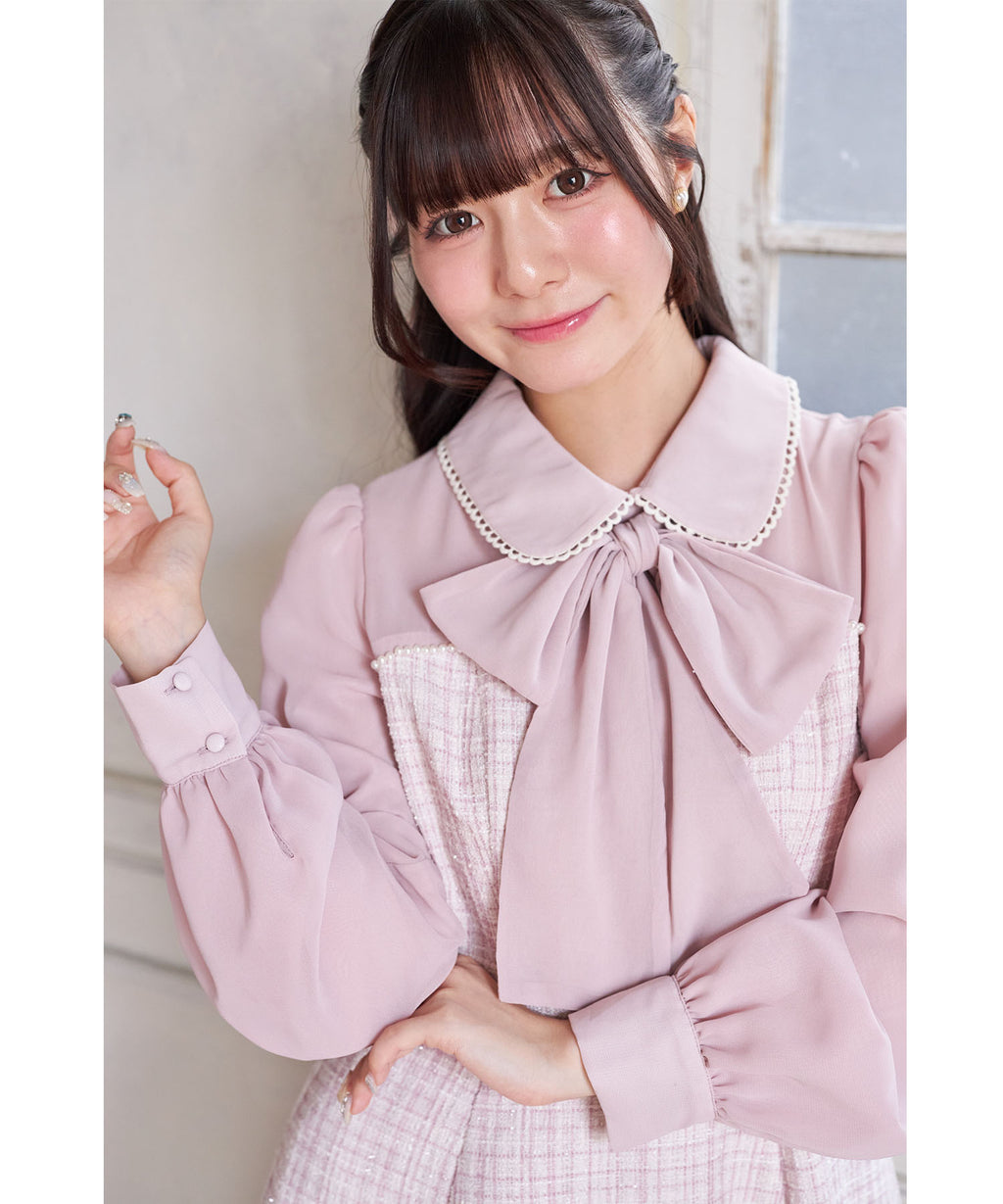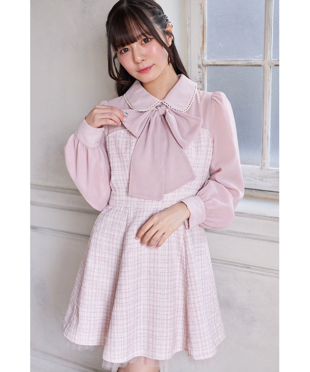 「袖口蝴蝶結&薄紗荷葉邊附帶閃亮粗花呢外套」搭配穿著,可以作為套裝◎
