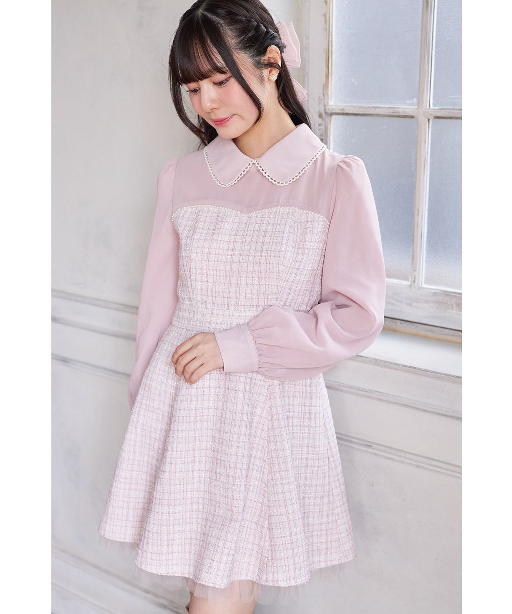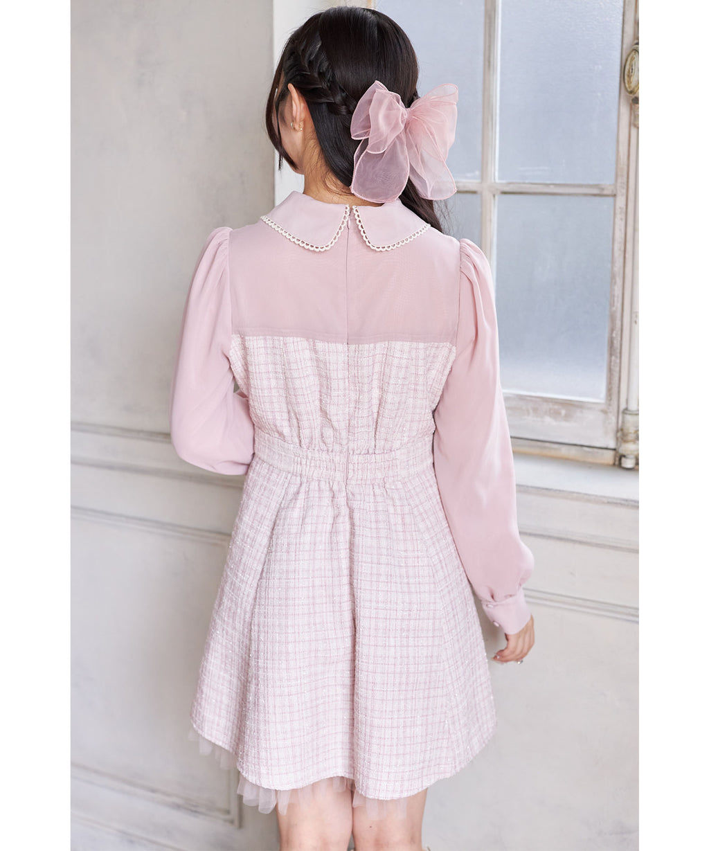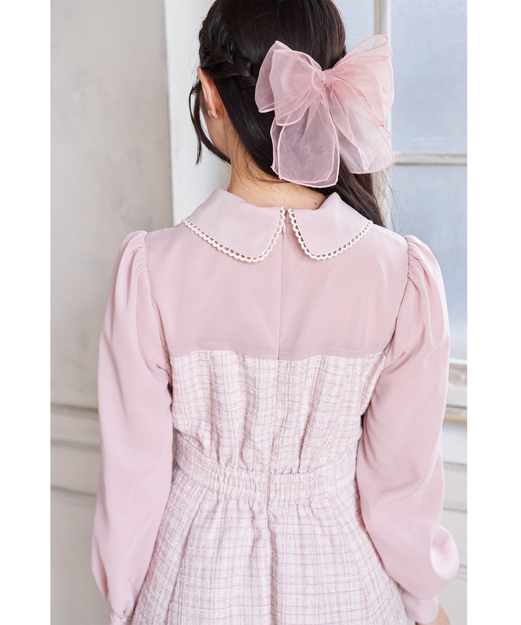 スユン Suyunn 2WAY蝴蝶結飾邊閃亮粗呢拼接連衣裙