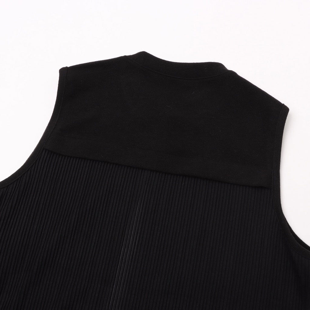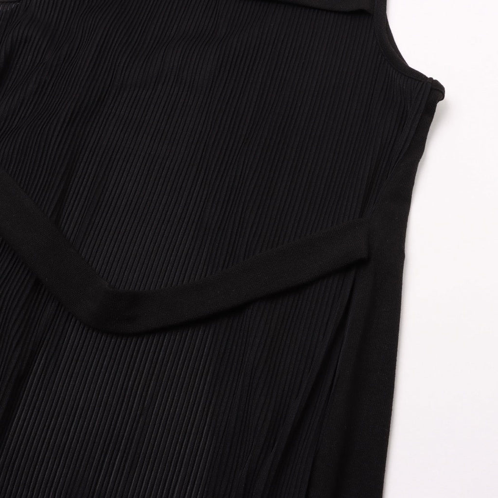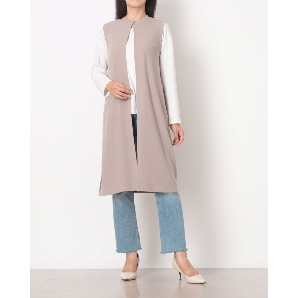拉里貝特 無地×條紋褶皺針織長背心