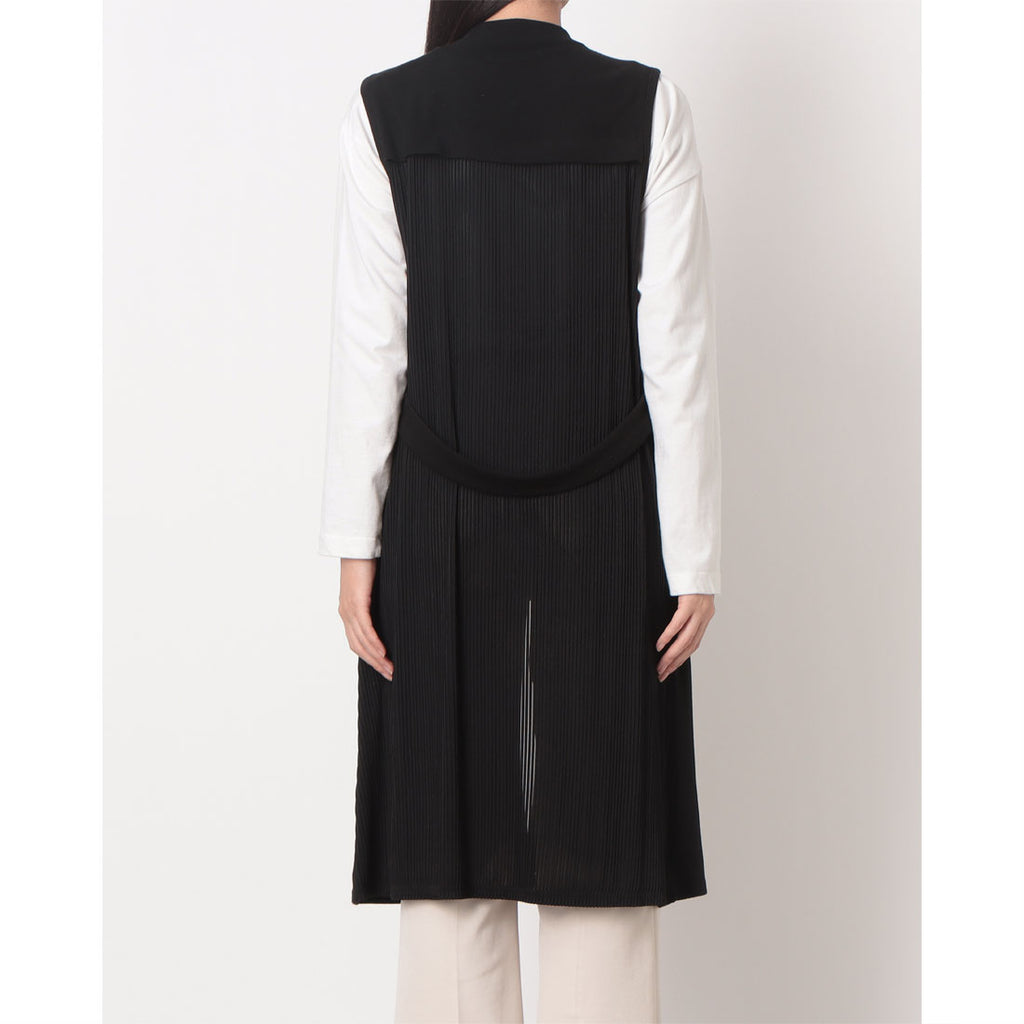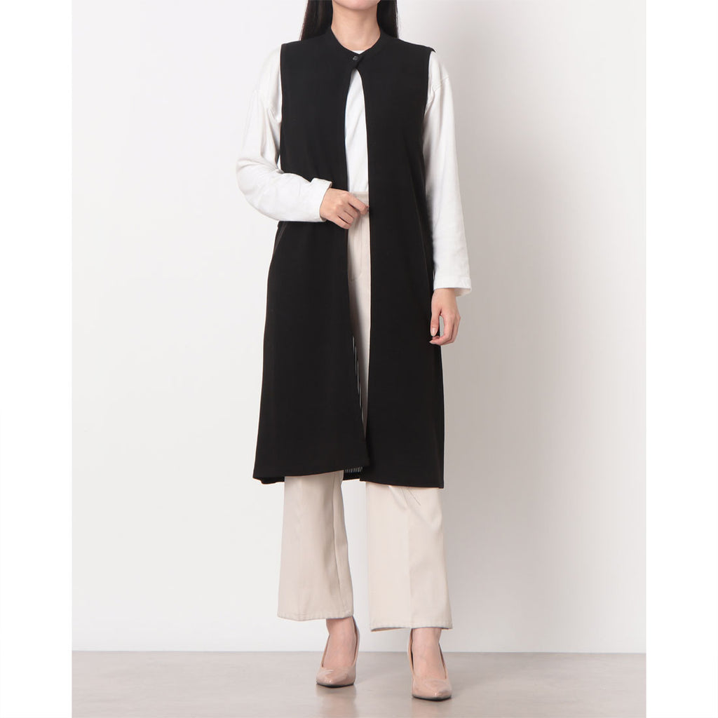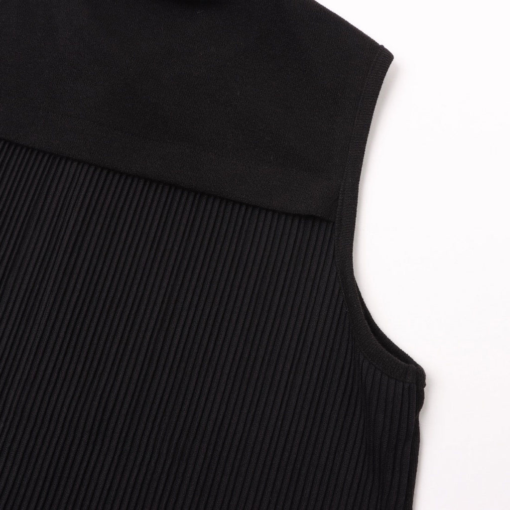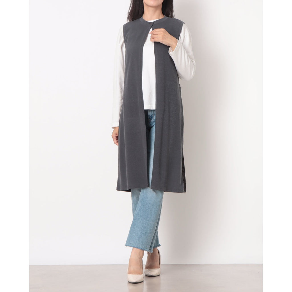 拉里貝特 無地×條紋褶皺針織長背心