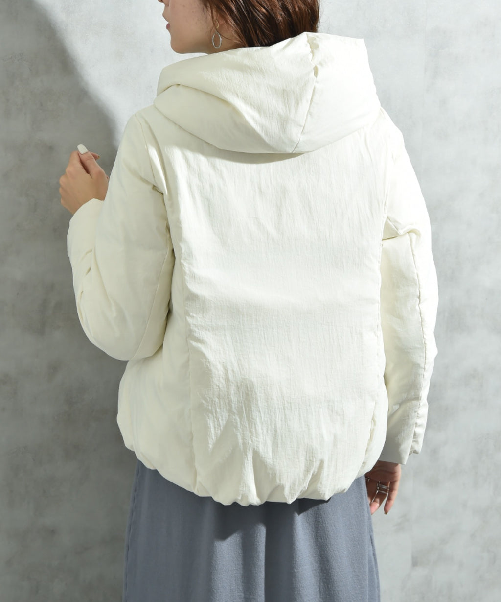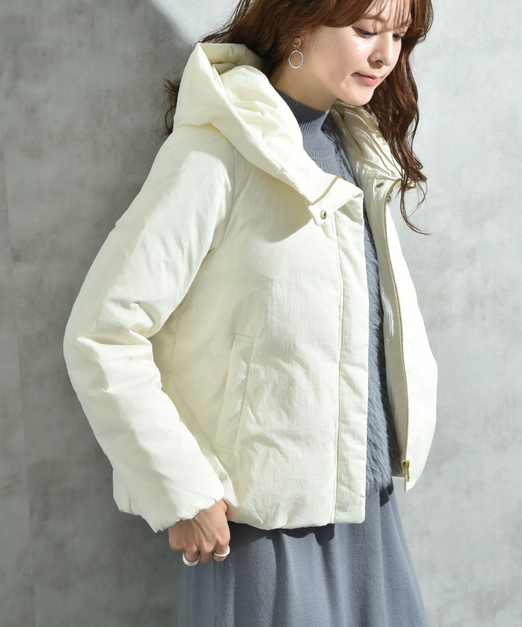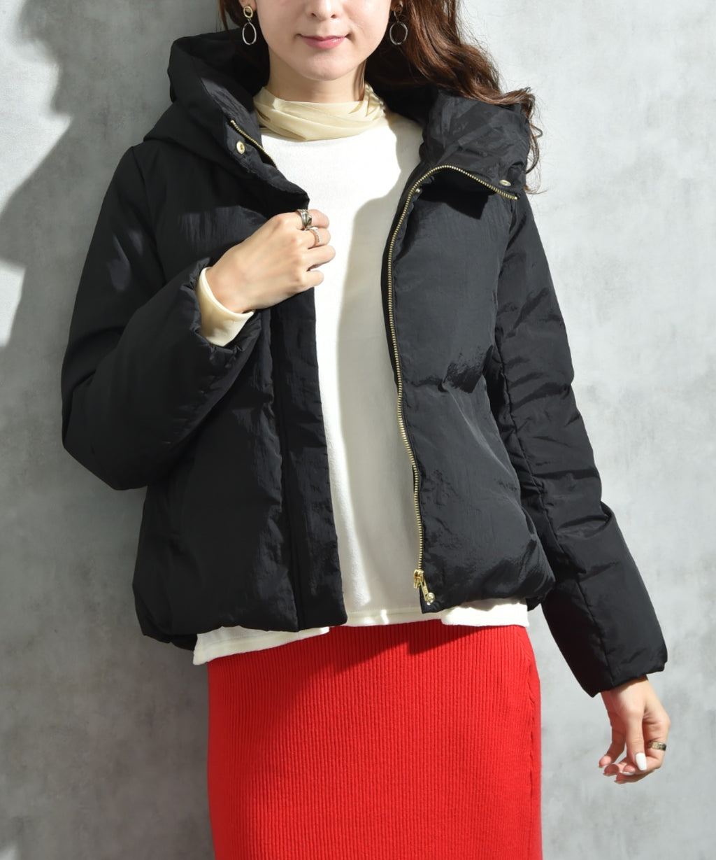 輕盈且柔軟的質感的尼龍塔夫塔材質製成的短外套。