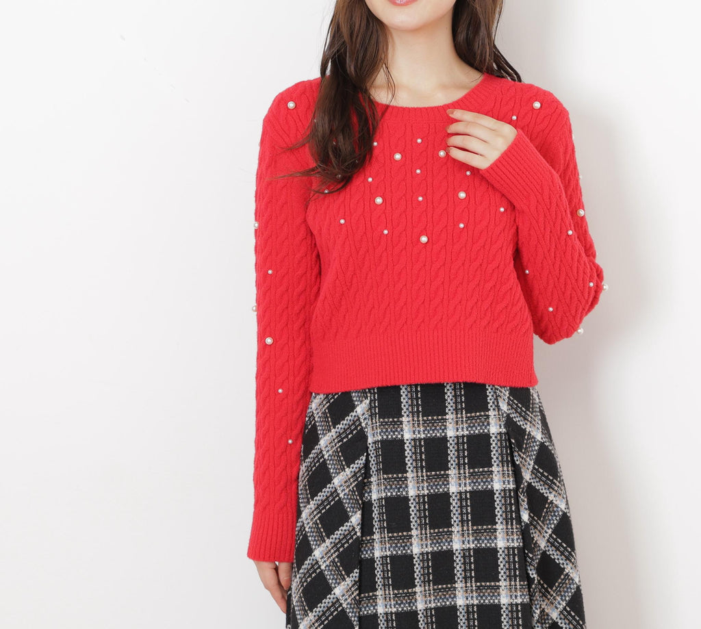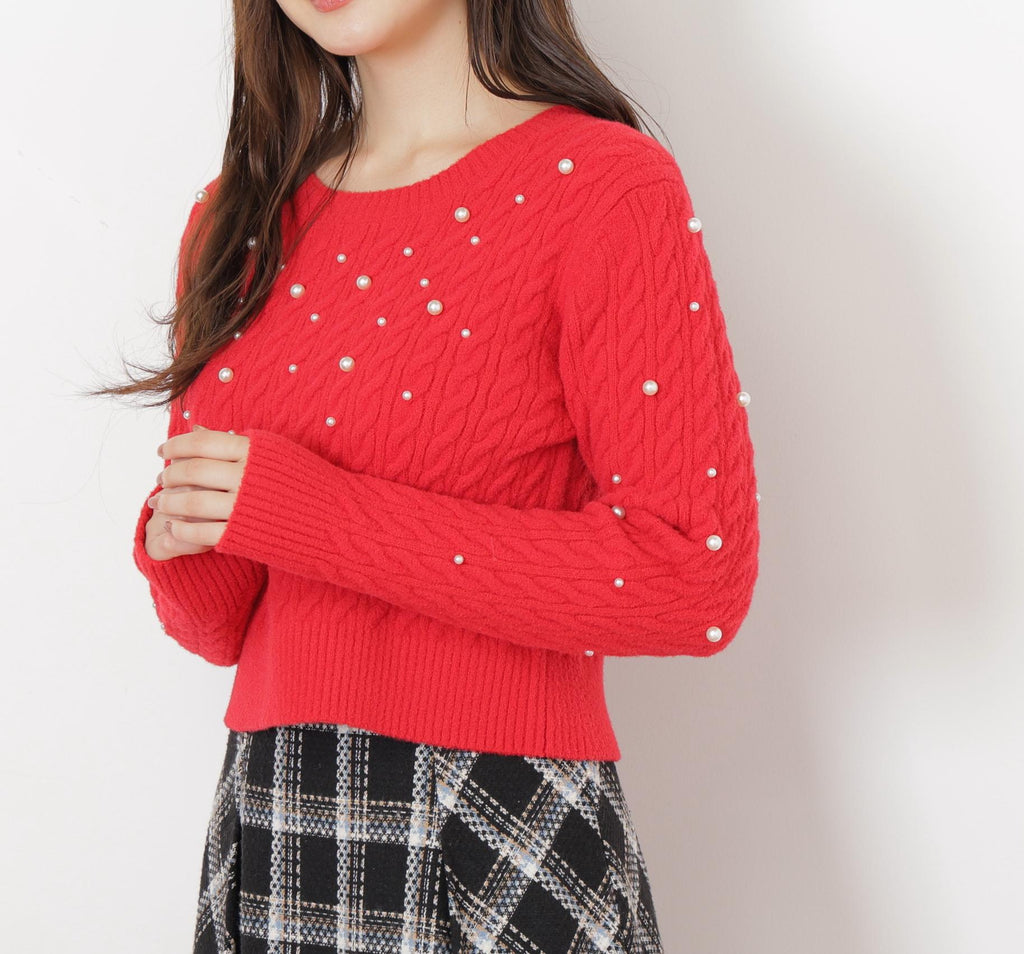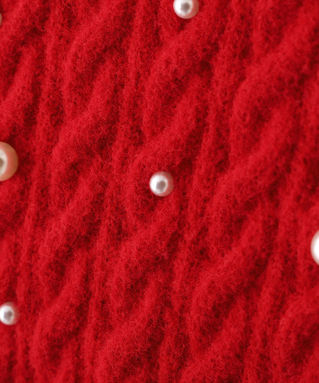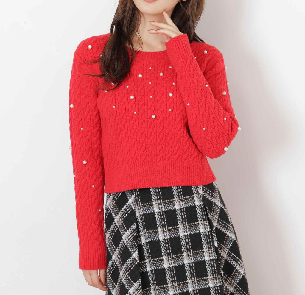 采用柔軟蓬鬆的線材製作的中等厚度的織紋針織。隨機散佈著不同大小的珍珠釦,展現出華麗的設計。針織編織與珍珠釦的組合非常吸引人,無論是日常使用還是年末活動都非常推薦。提供了提升聖誕氣氛的顏色。※由於拍攝時的燈光關係,顏色可能會有所不同。
