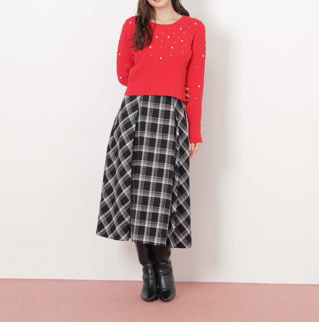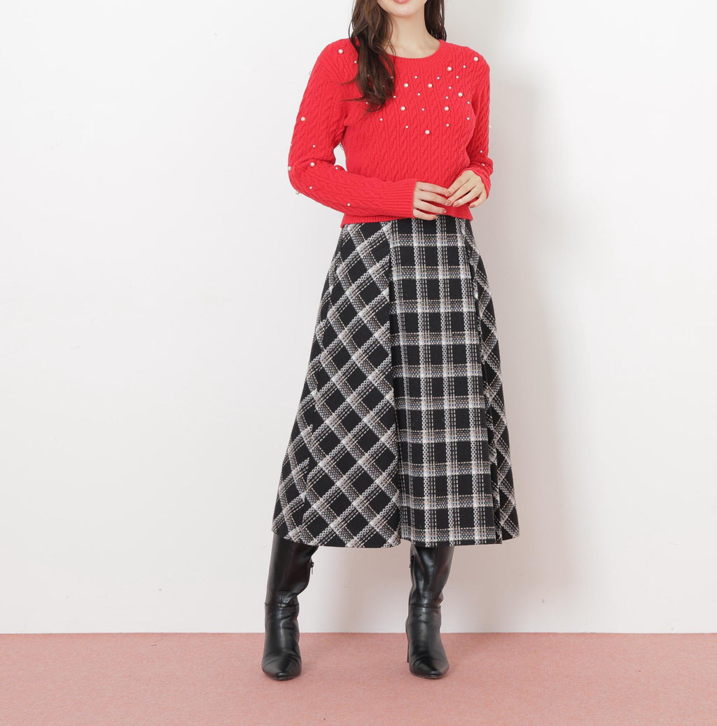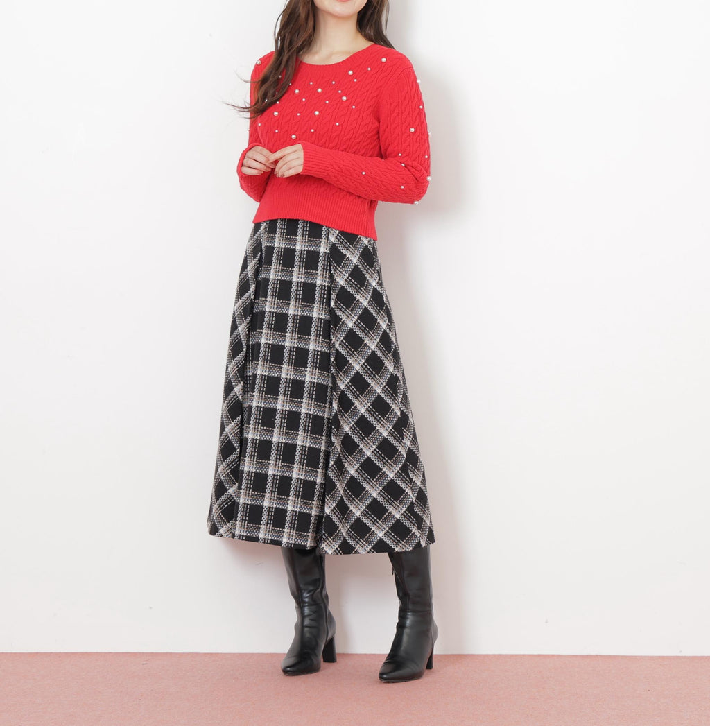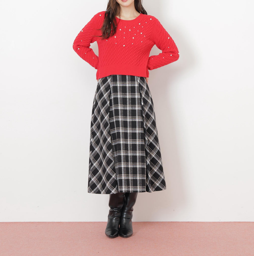 采用柔軟蓬鬆的線材製作的中等厚度的織紋針織。隨機散佈著不同大小的珍珠釦,展現出華麗的設計。針織編織與珍珠釦的組合非常吸引人,無論是日常使用還是年末活動都非常推薦。提供了提升聖誕氣氛的顏色。※由於拍攝時的燈光關係,顏色可能會有所不同。