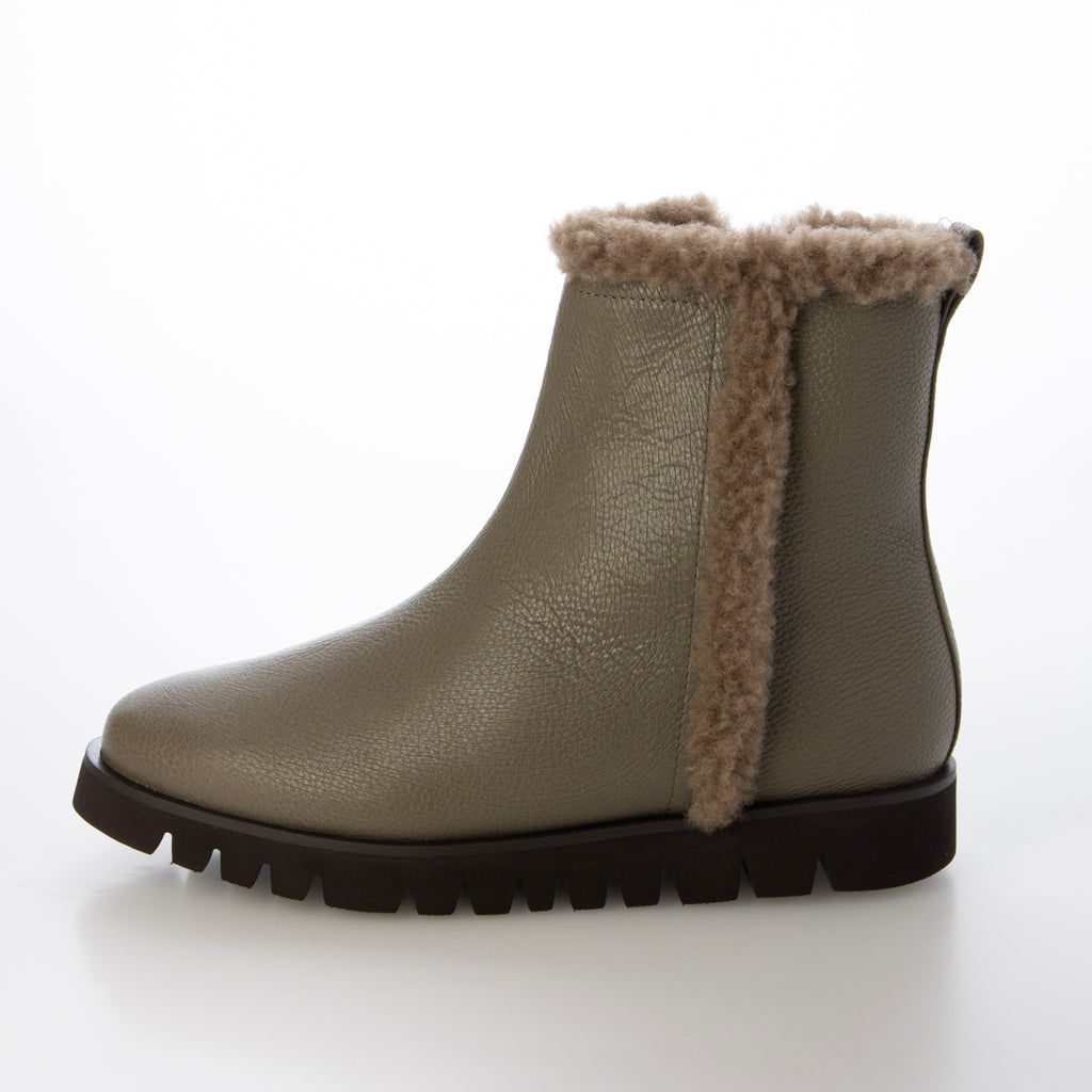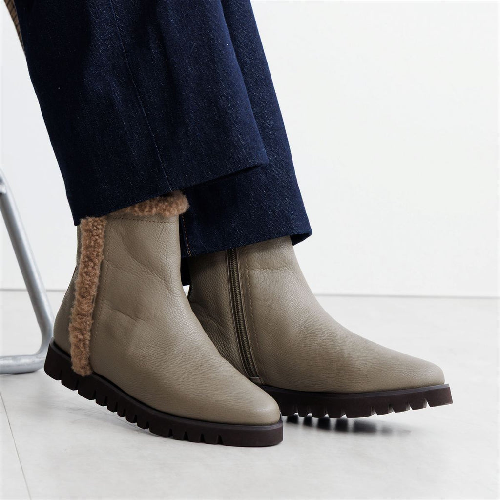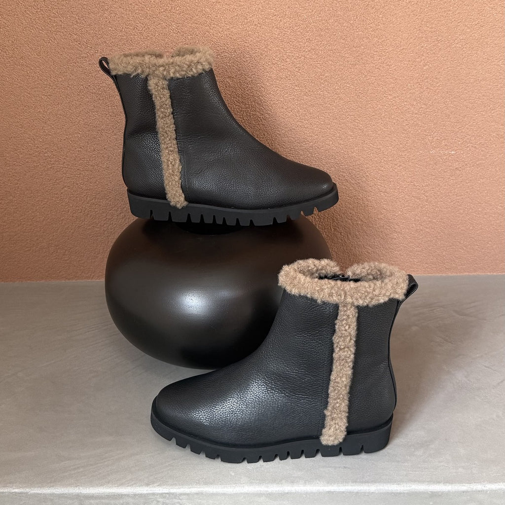 筒內的毛絨溫暖,側面可見的毛絨成為短靴的亮點。