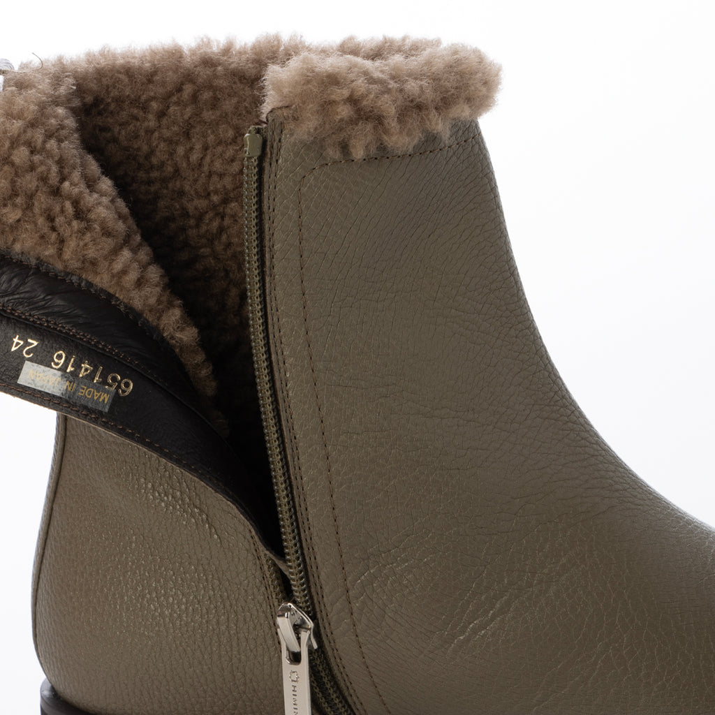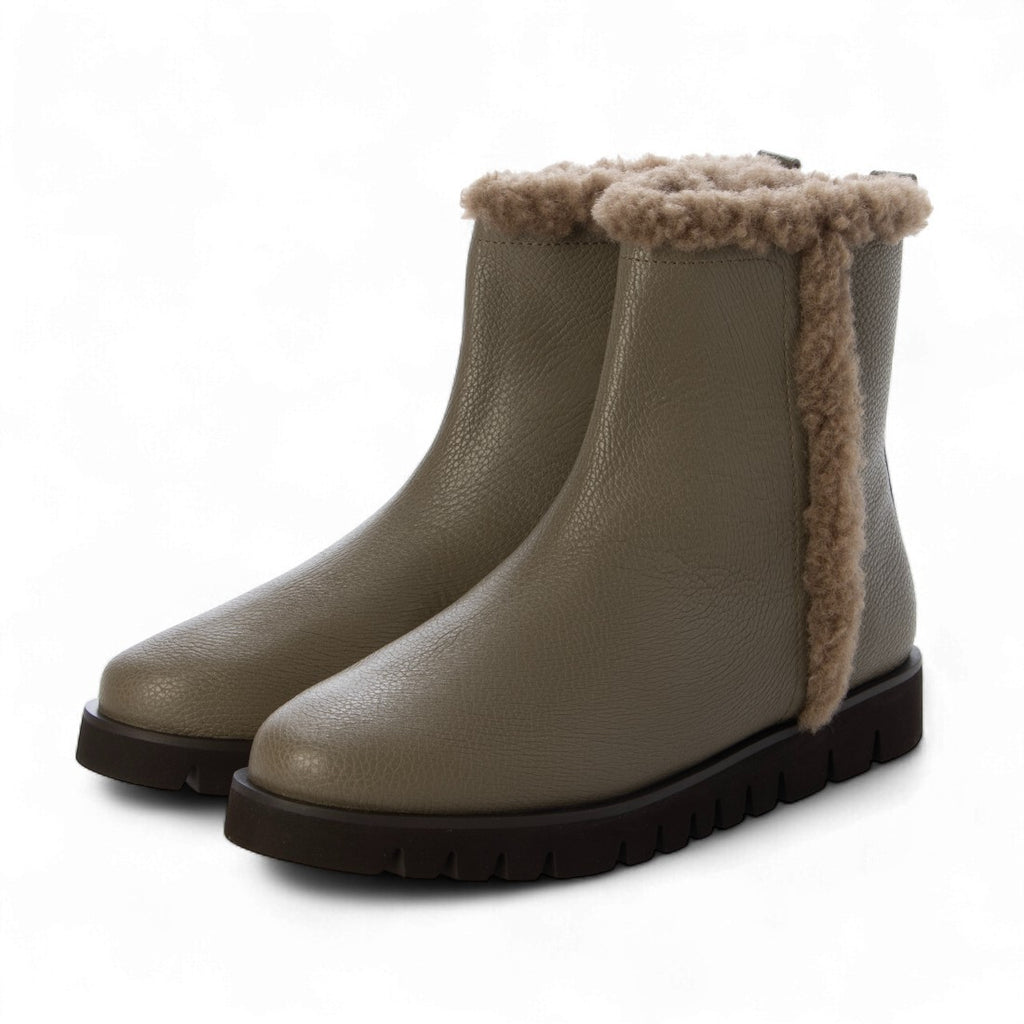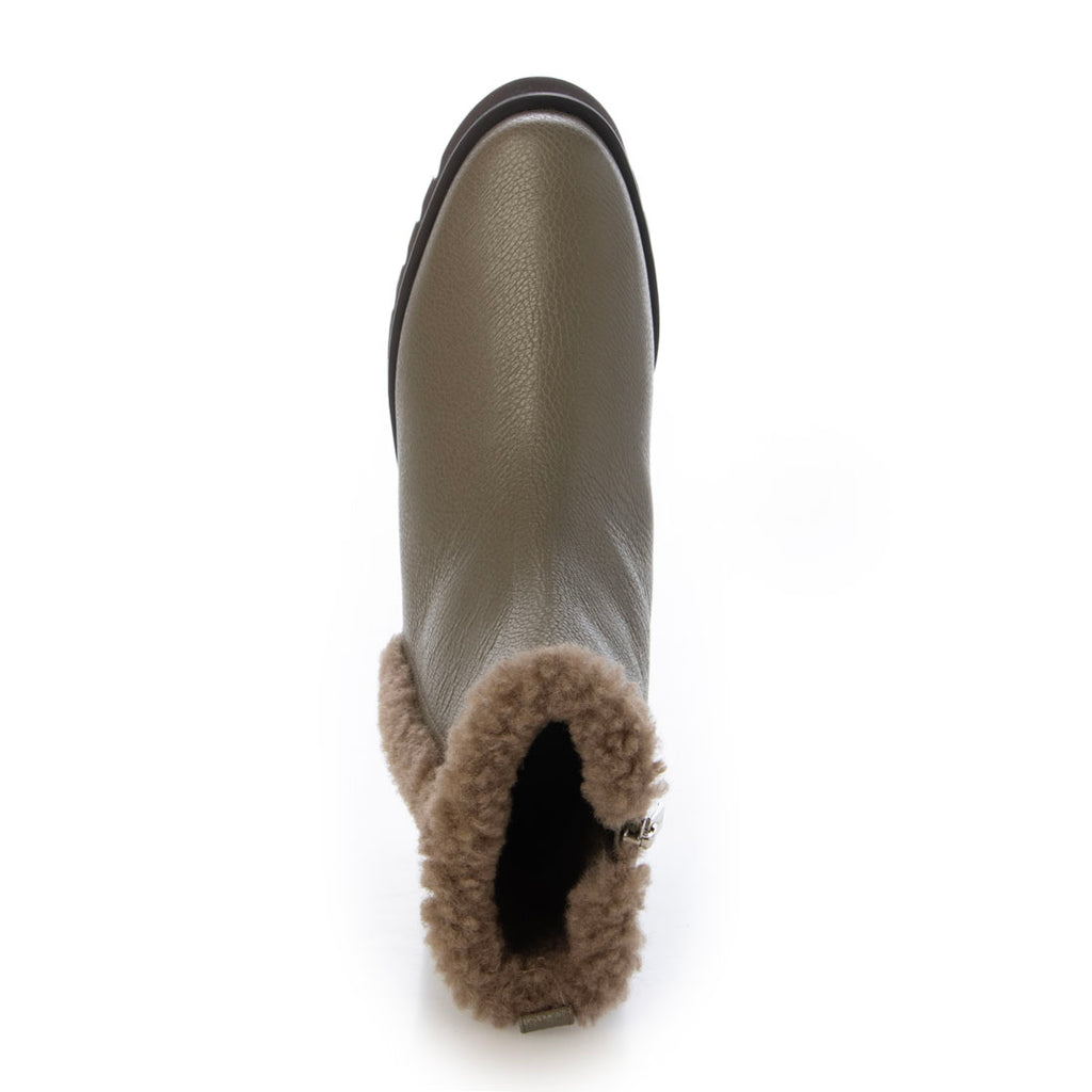 筒內的毛絨溫暖,側面可見的毛絨成為短靴的亮點。