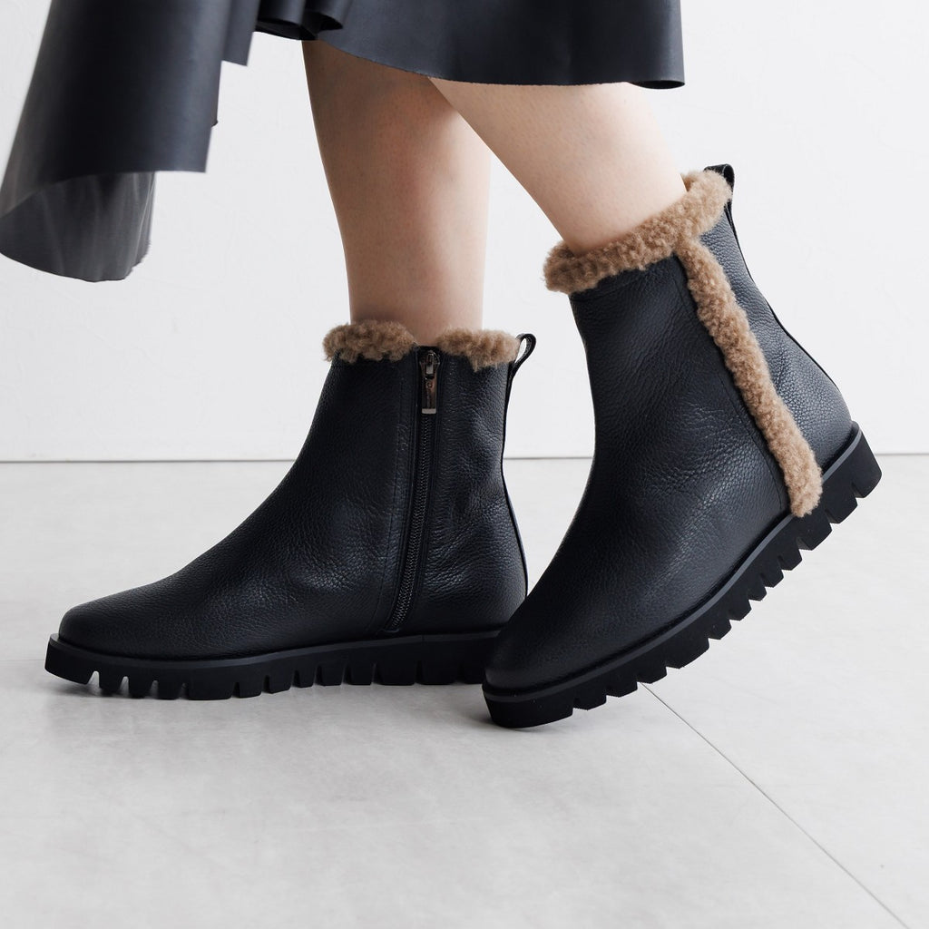 採用防水處理的鞋面皮革、筒內的毛絨保溫力,加上消臭功能的杯型鞋墊,這款功能性豐富的短靴在冬季出門及旅行等各種場合中都能大放異彩。