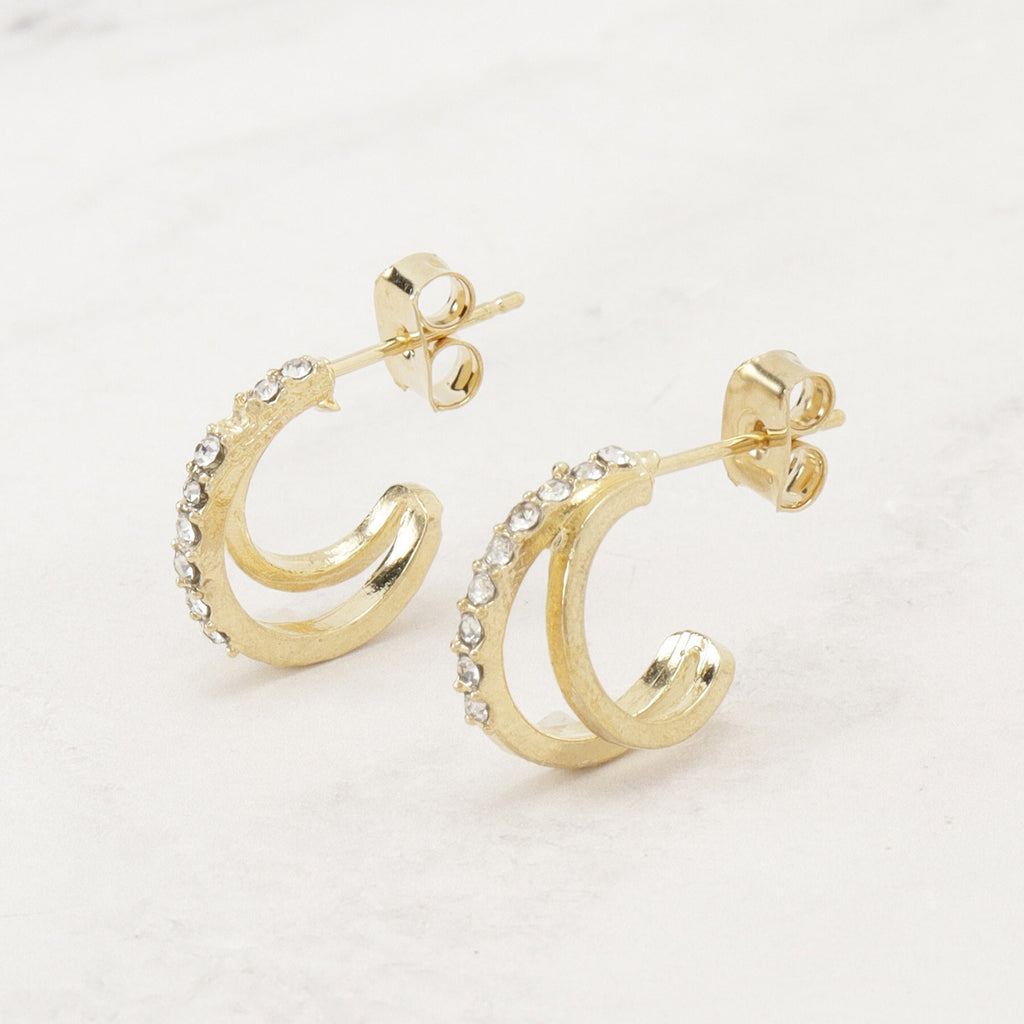 設計有連串寶石和仿珍珠的圈形耳環。