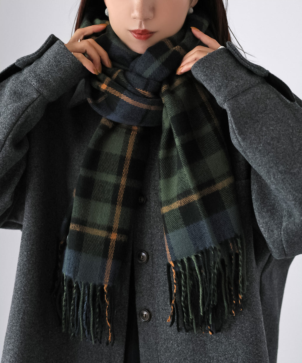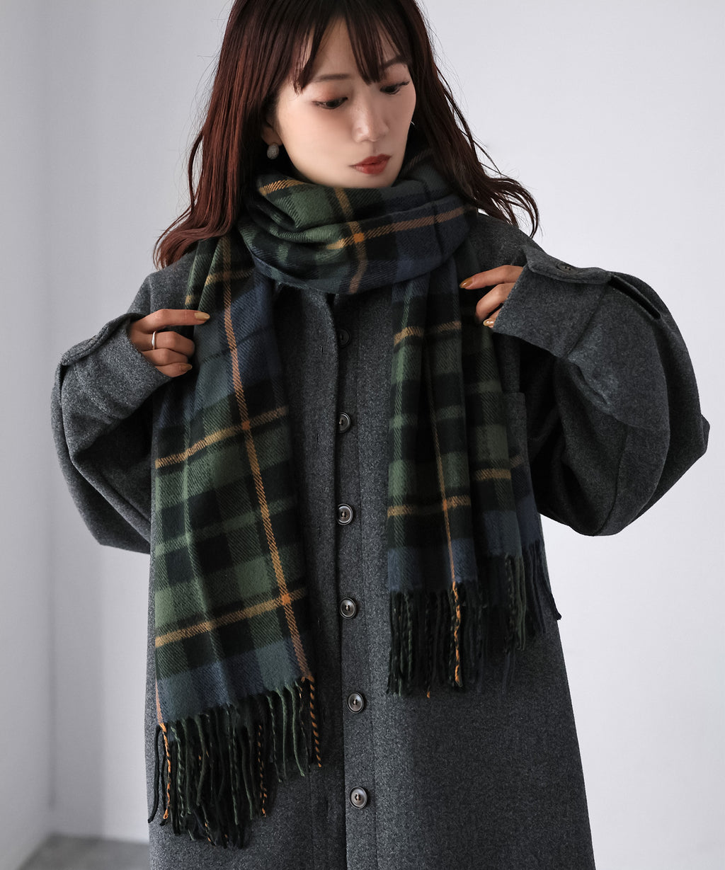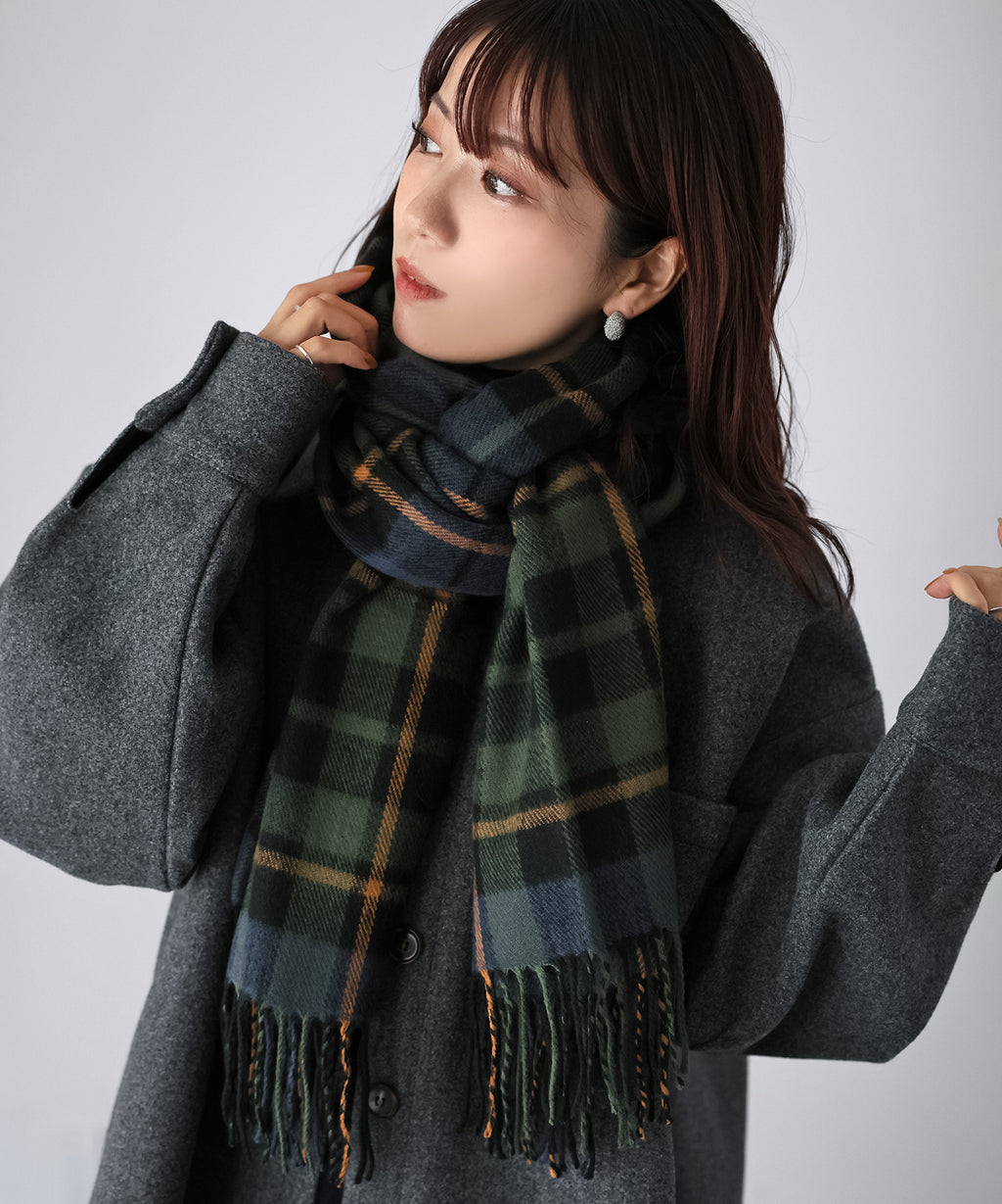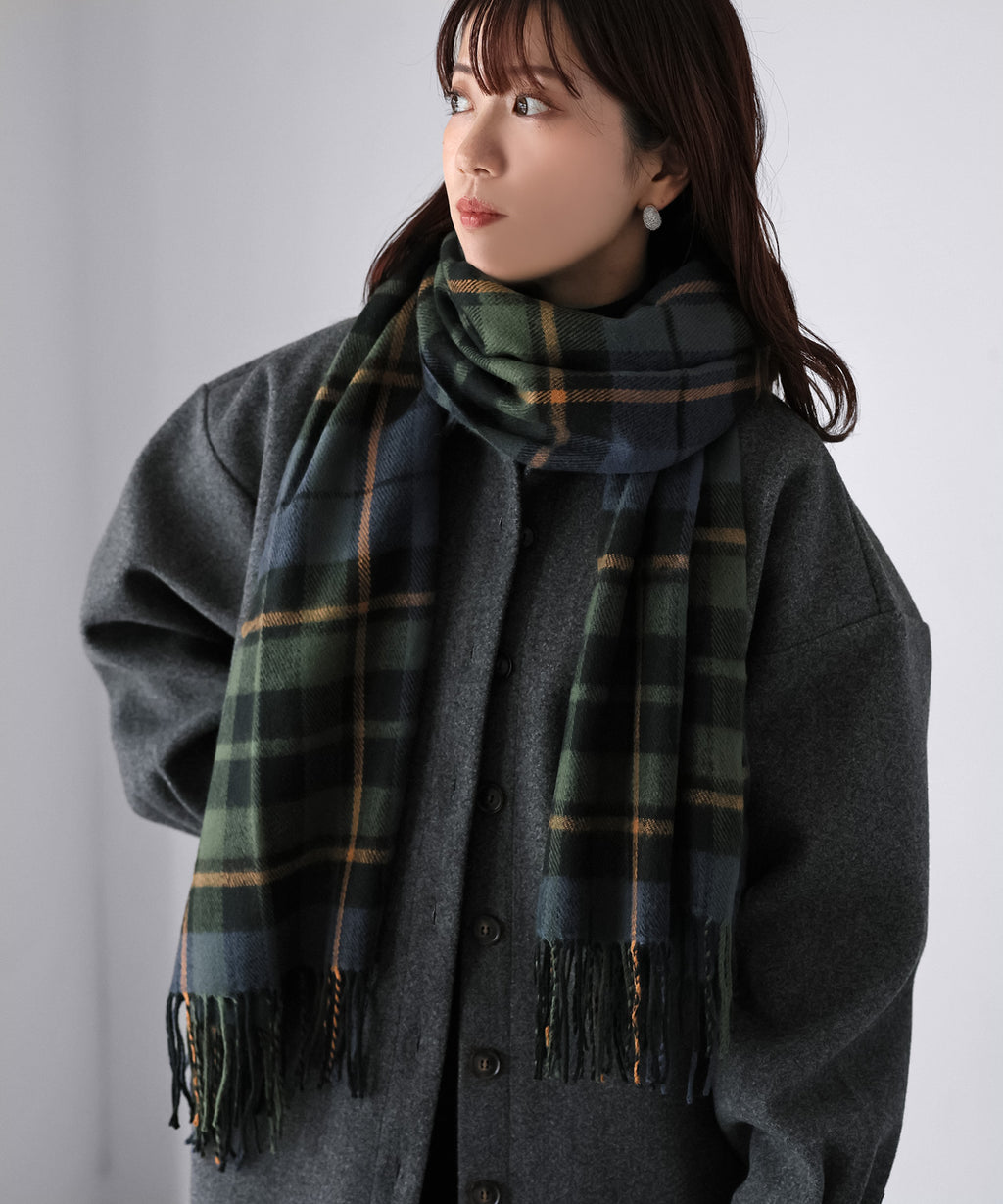 雖然是基本的格紋設計,但卻有著成為搭配重點的存在感,僅僅圍在簡單的造型上就能增添季節感。