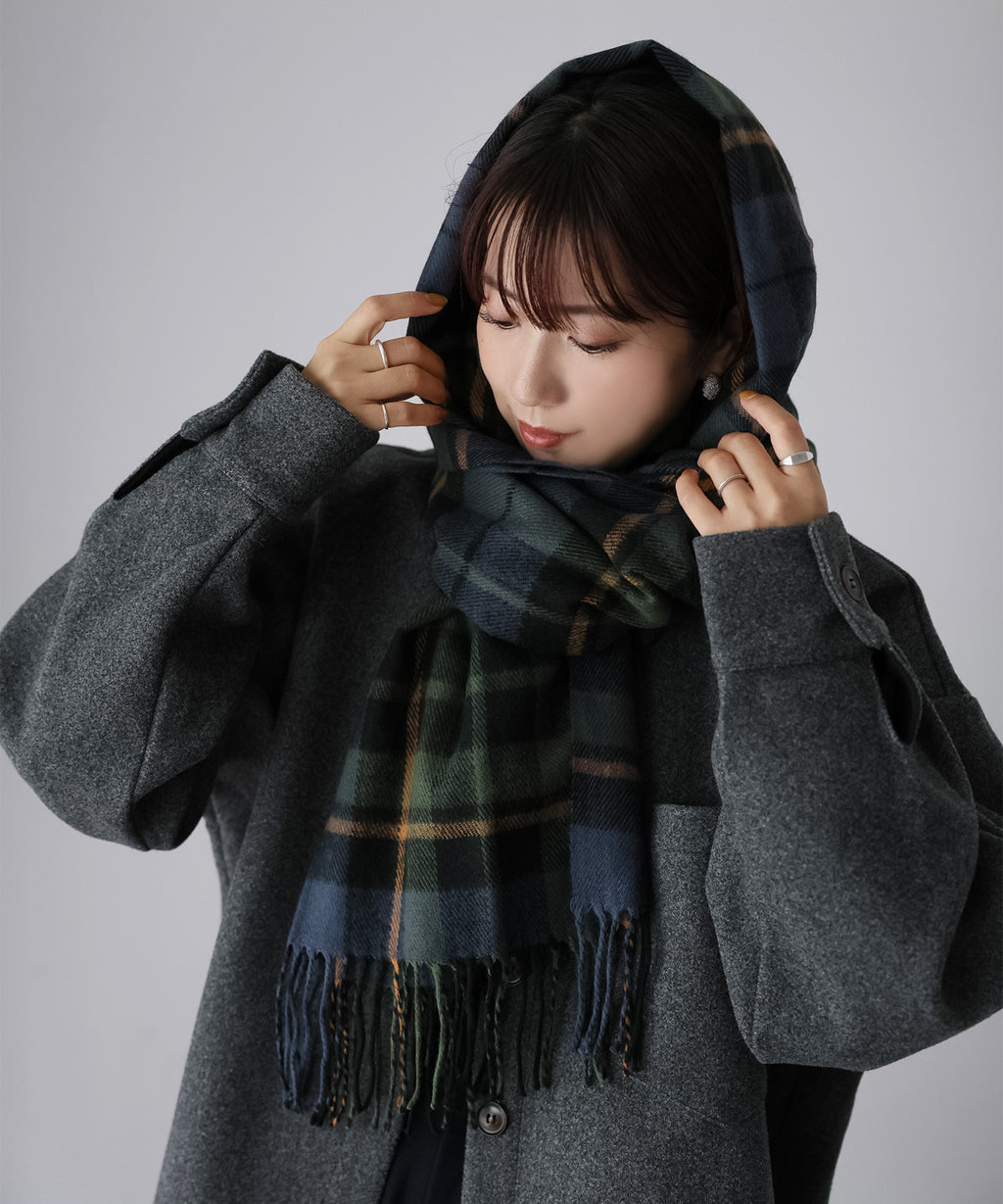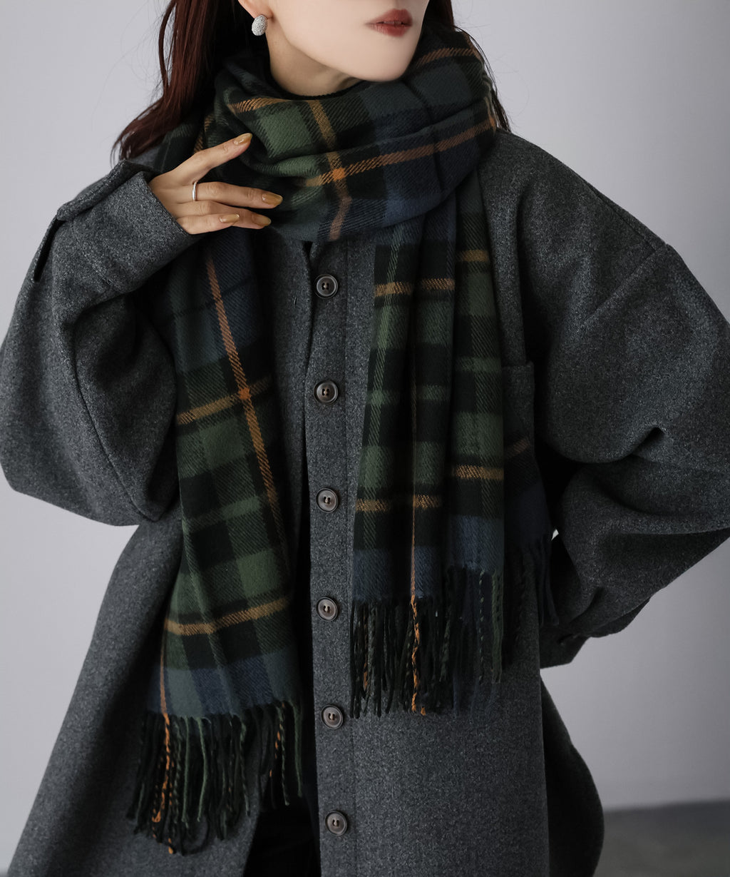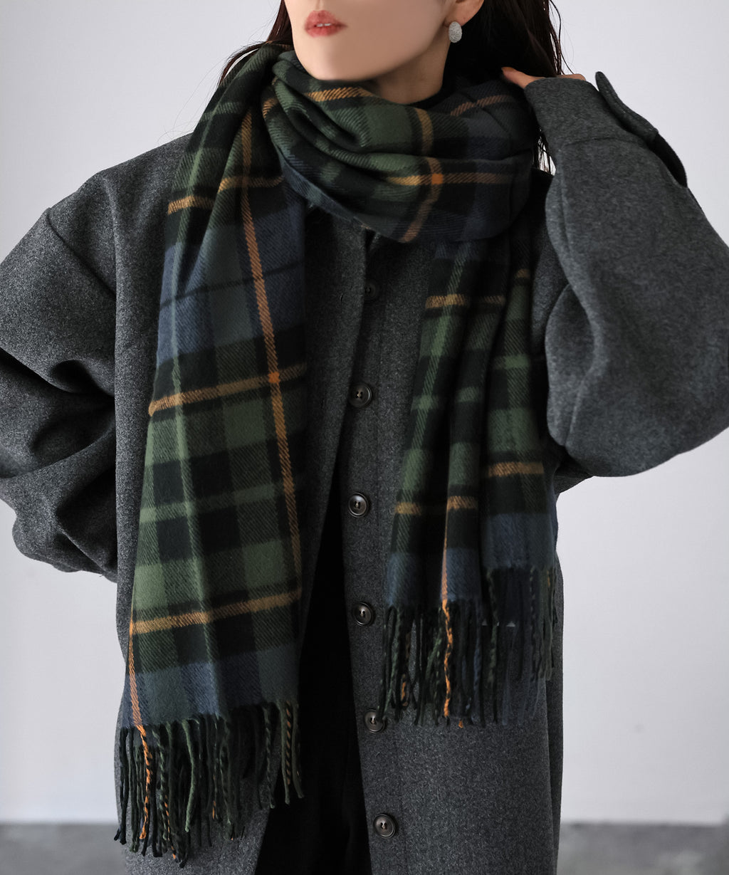 雖然是基本的格紋設計,但卻有著成為搭配重點的存在感,僅僅圍在簡單的造型上就能增添季節感。