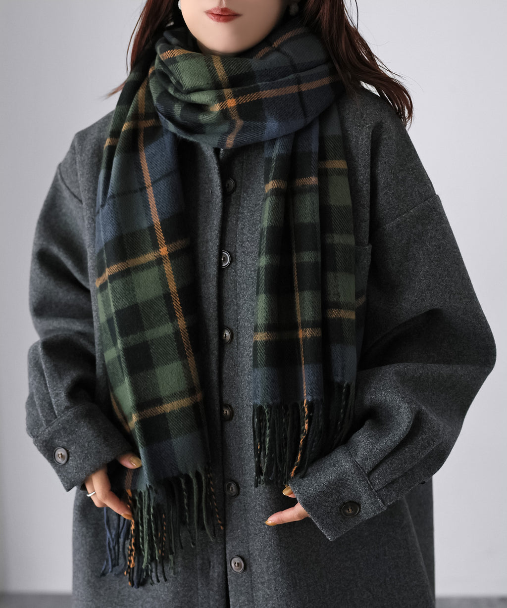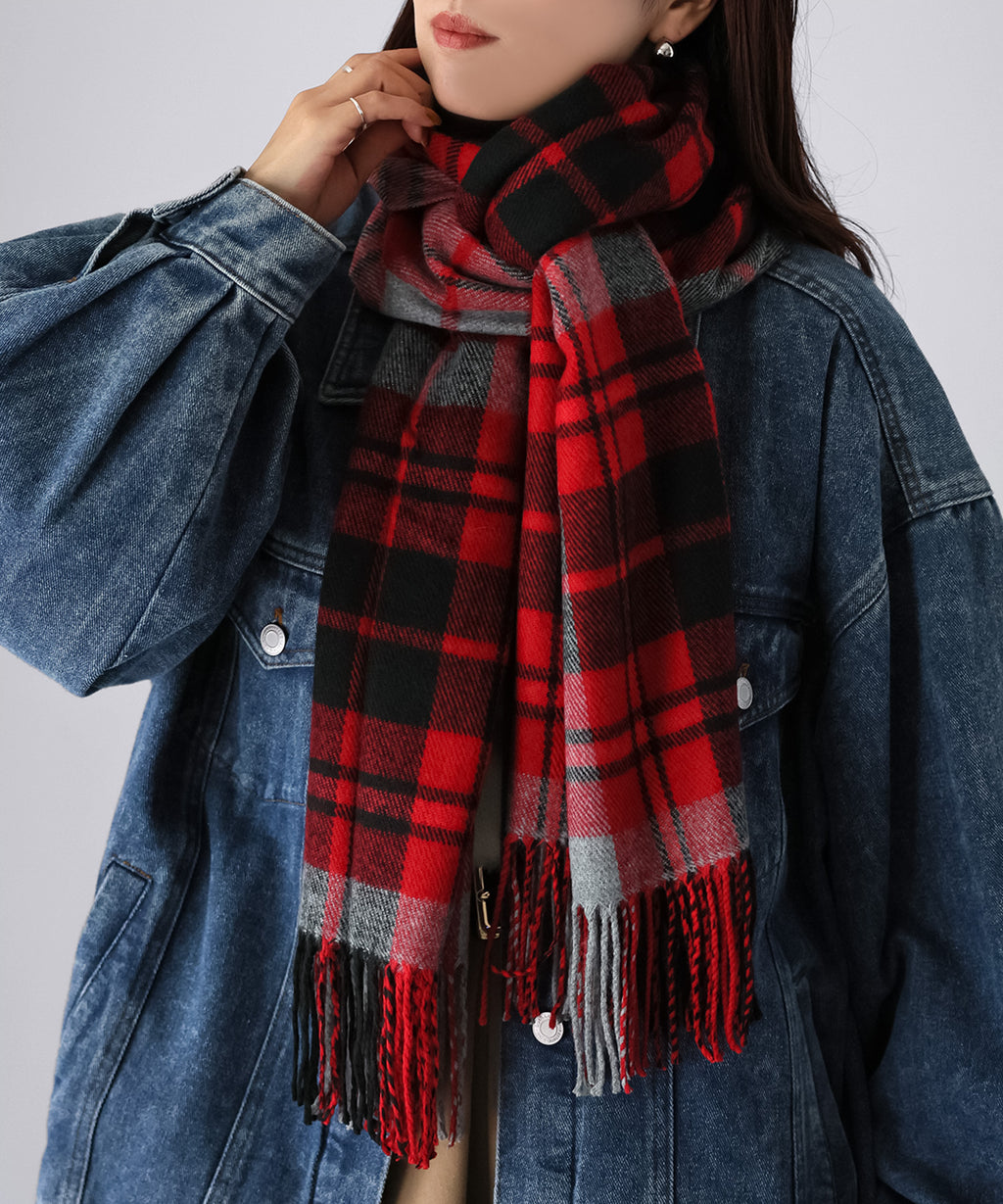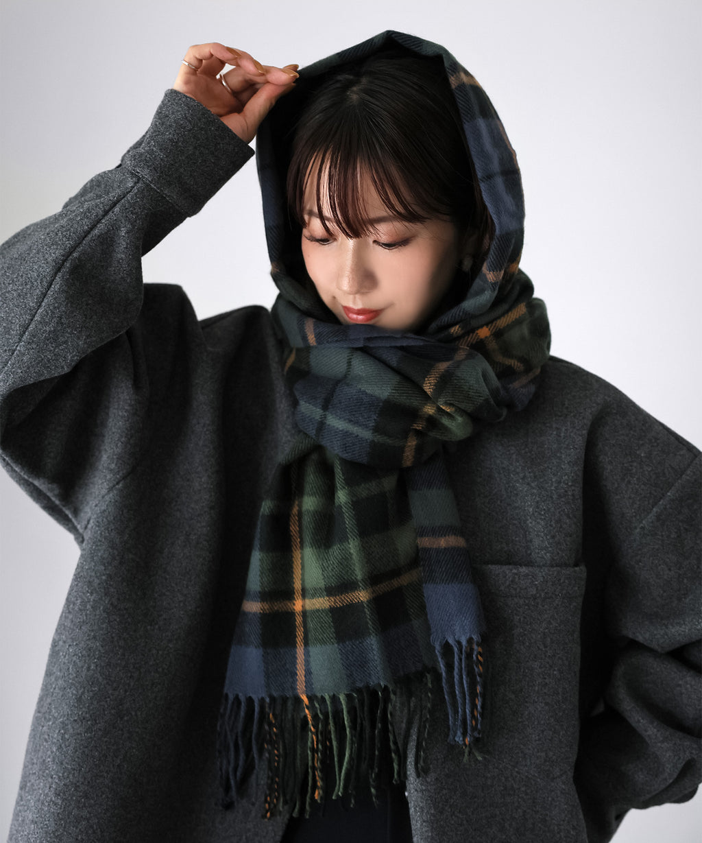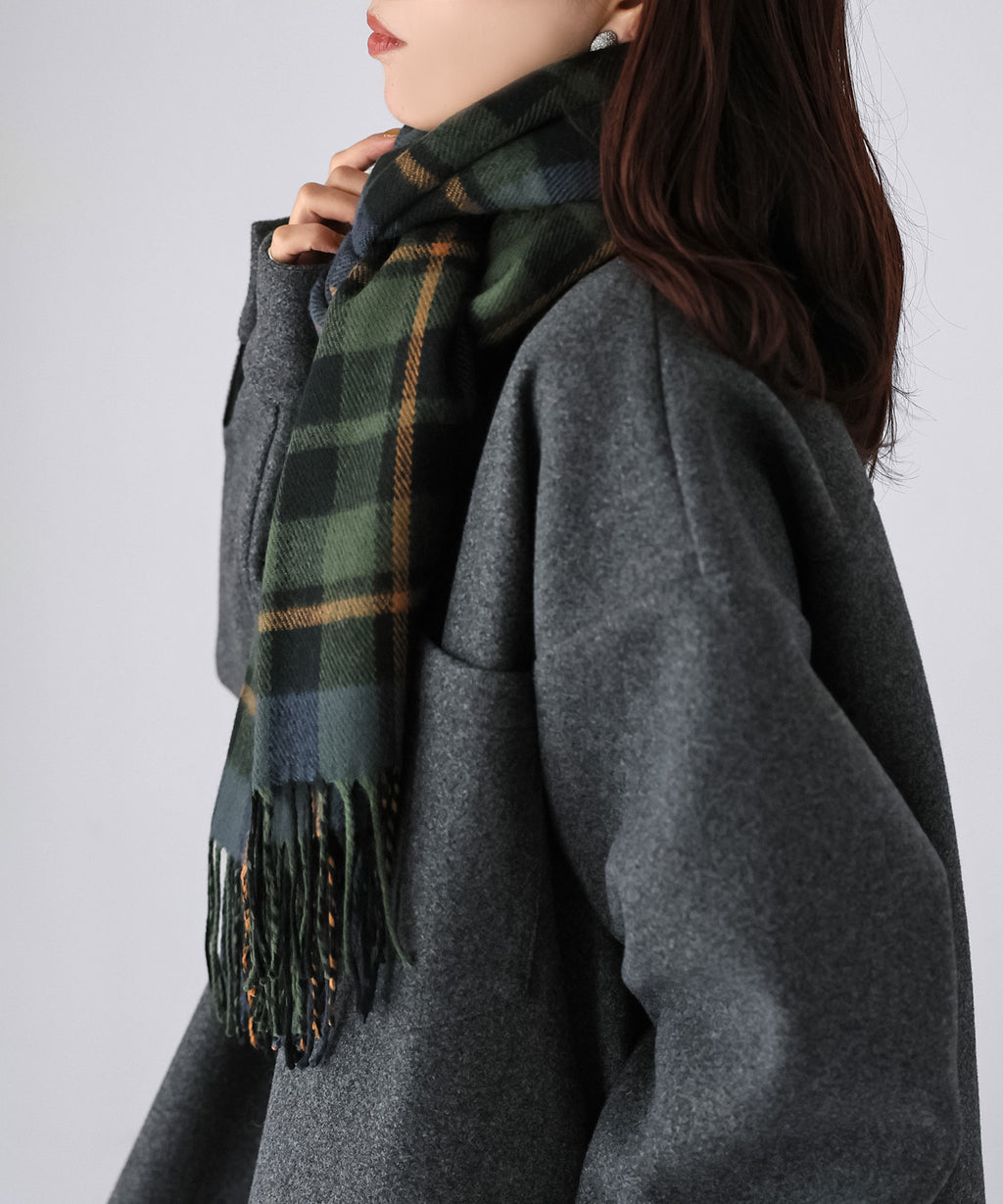 雖然是基本的格紋設計,但卻有著成為搭配重點的存在感,僅僅圍在簡單的造型上就能增添季節感。