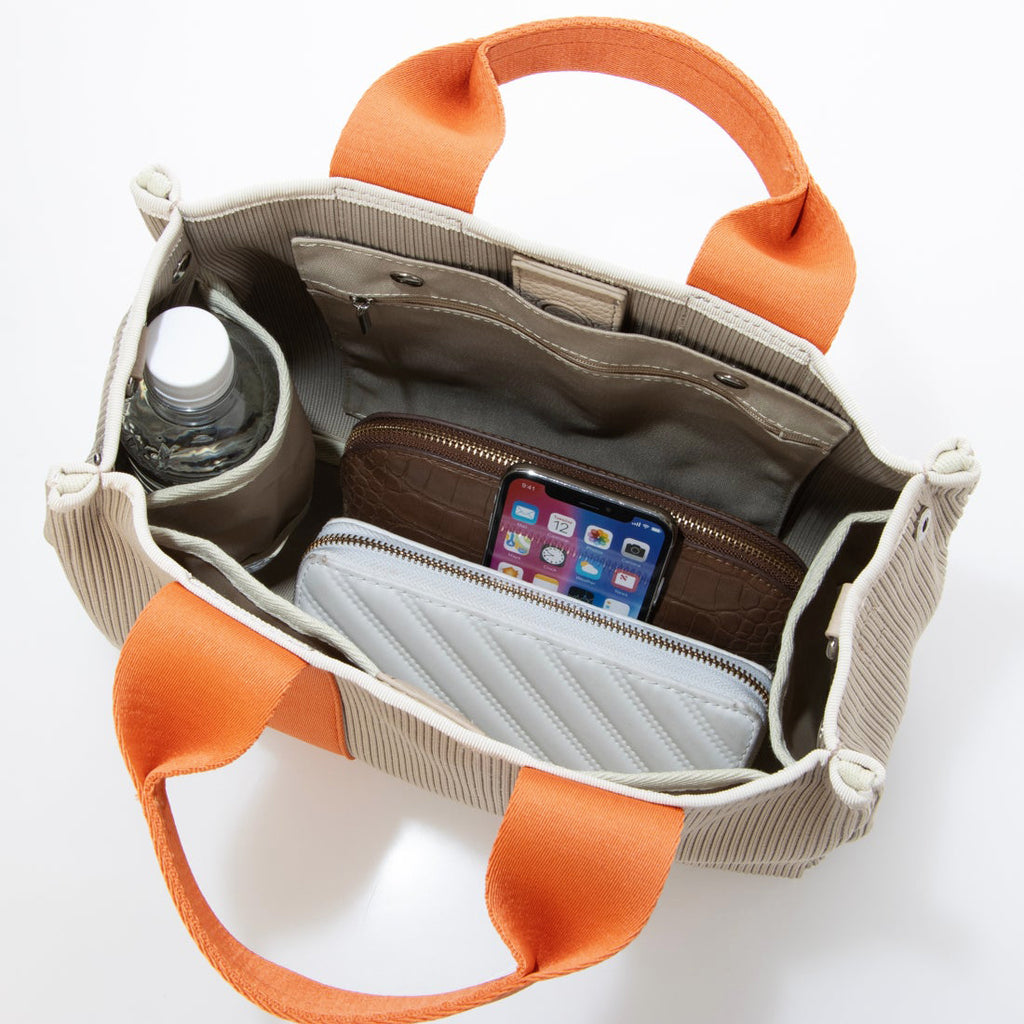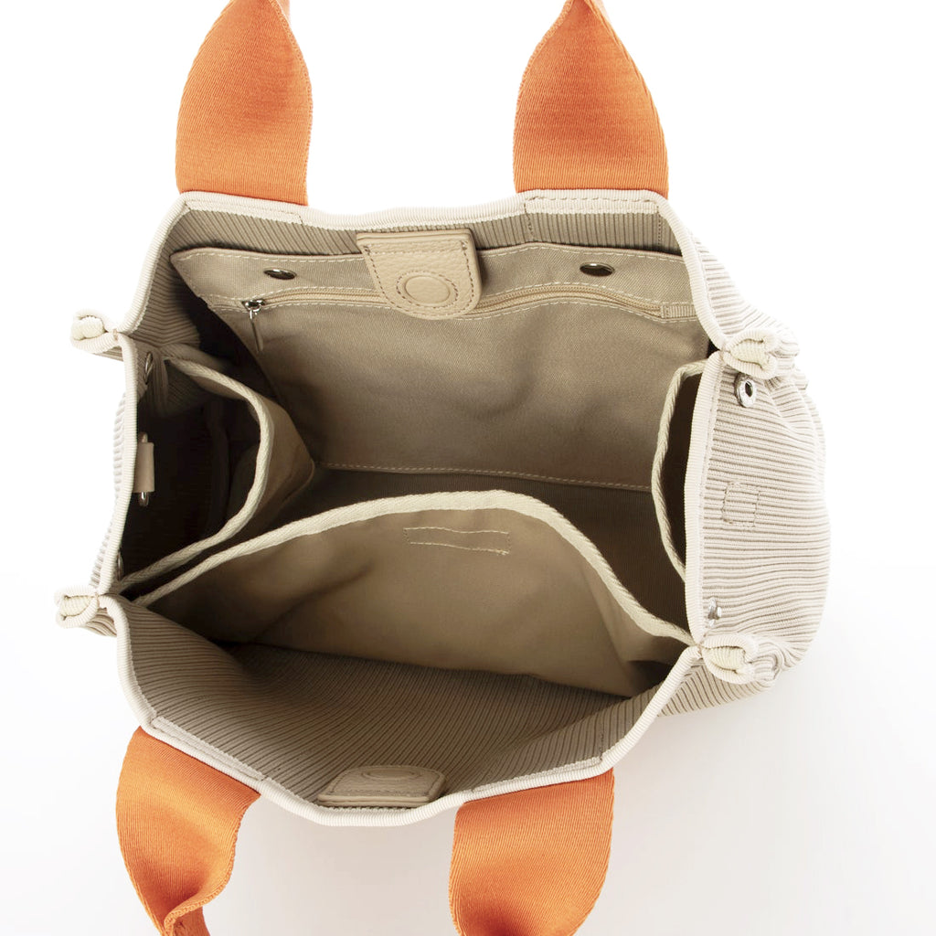 內側兩側有瓶架,可以固定水瓶或摺疊傘,內部設計便於整理。