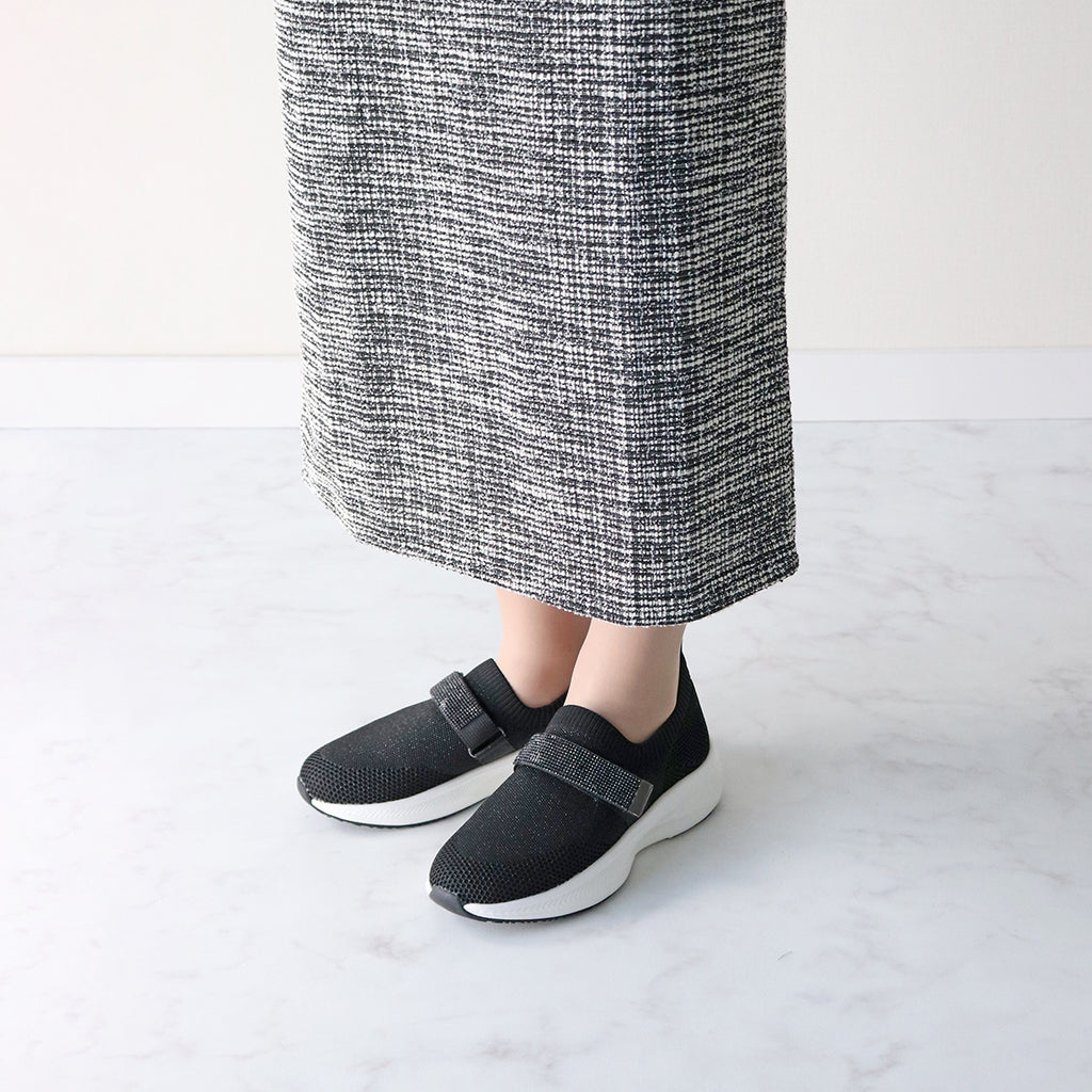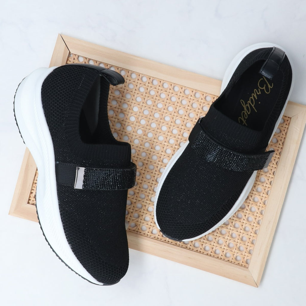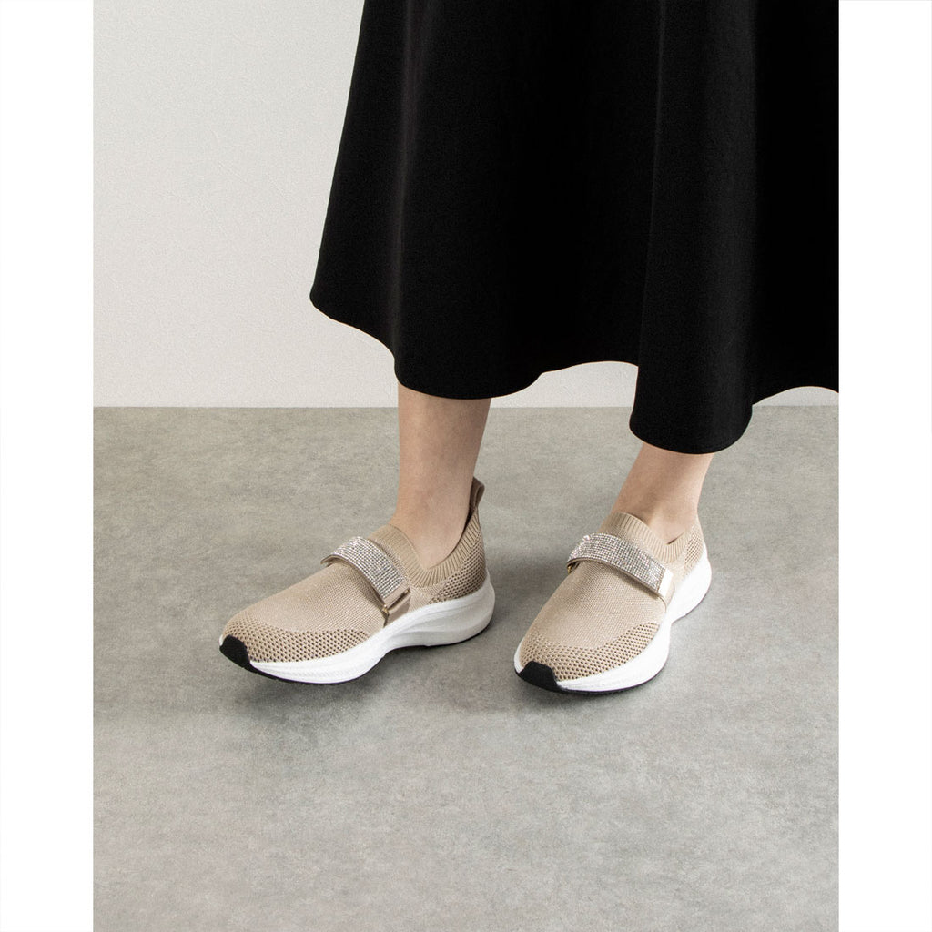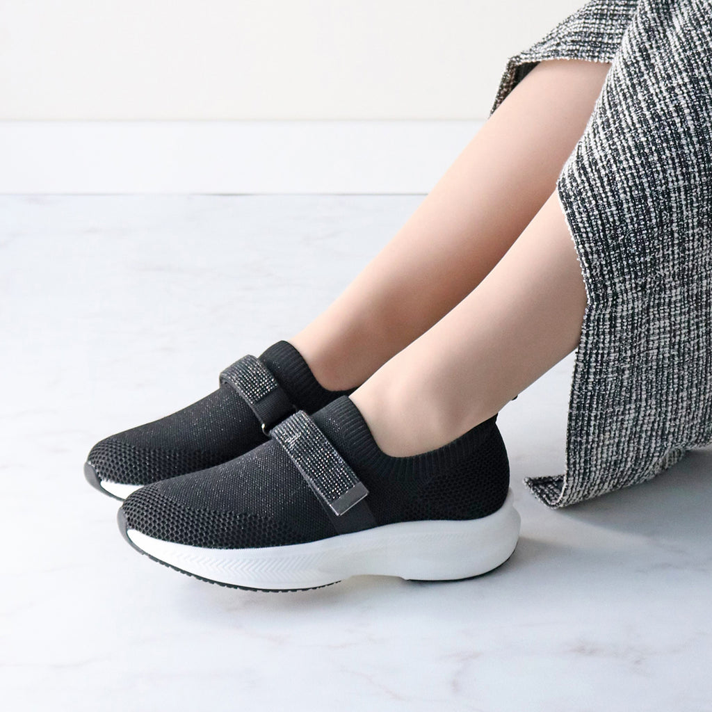 休閒針織材質的運動鞋,配有閃亮的水鑽帶,時尚又可愛。