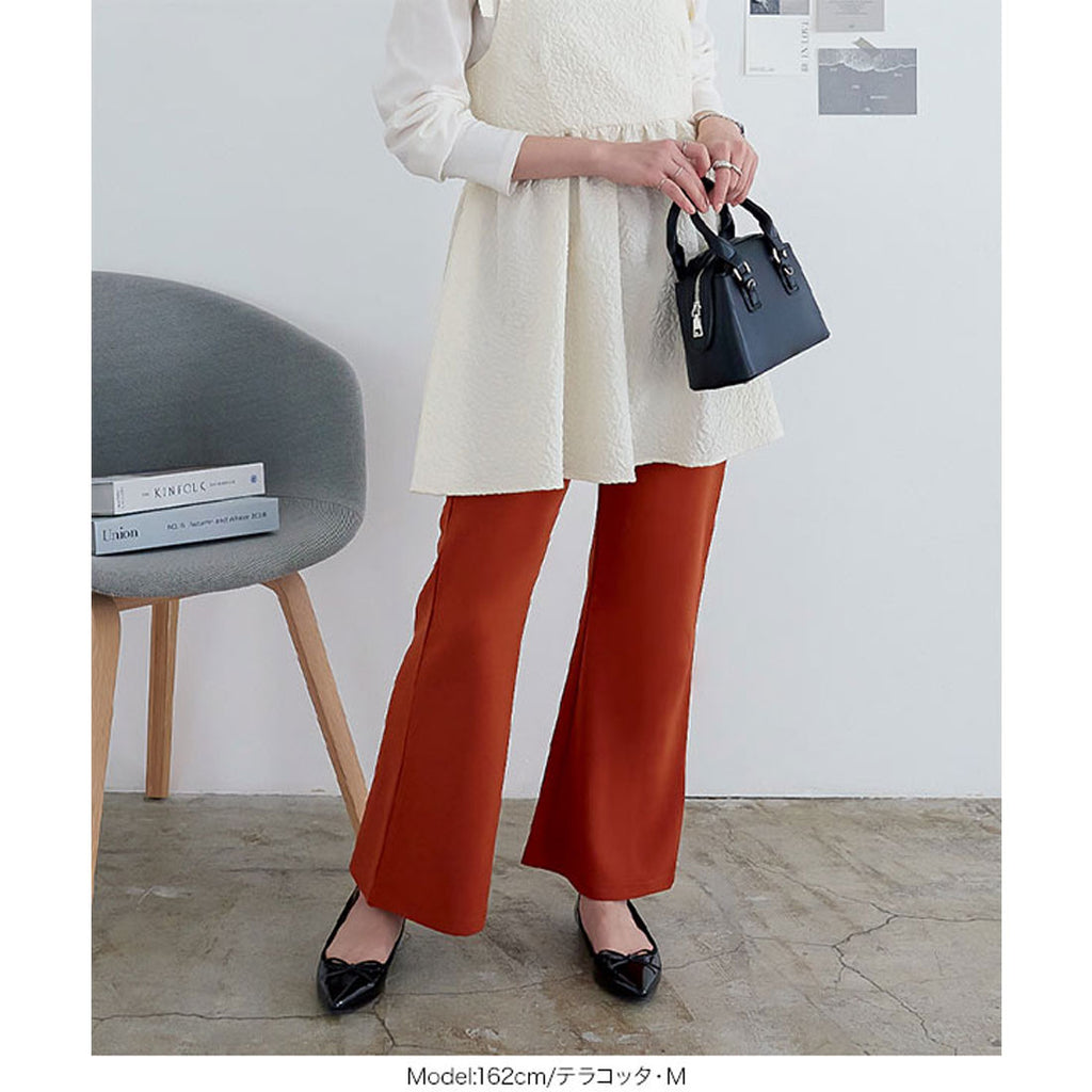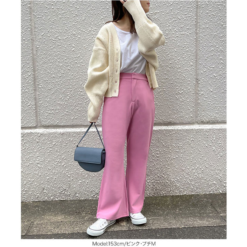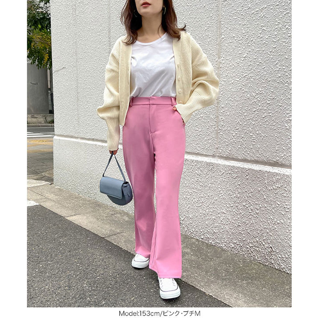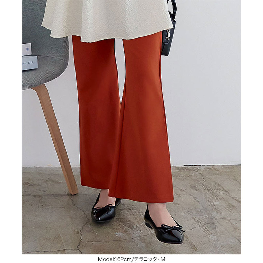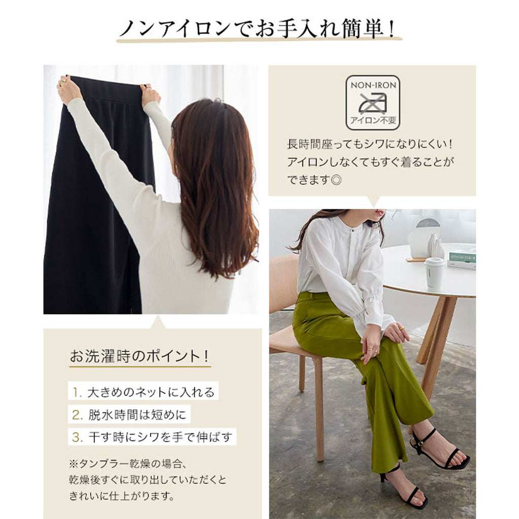 [ ストレッチ×ノーアイロン ] 選擇3種尺寸 細見的半喇叭褲 [M3848] 女士休閒褲 低身高 高身高 小尺寸 辦公室休閒 工作服 口袋設計 腰部鬆緊帶 彩色褲子 優雅 黑色 黑色 粉色 橙色 綠色 媽媽 媽媽套裝