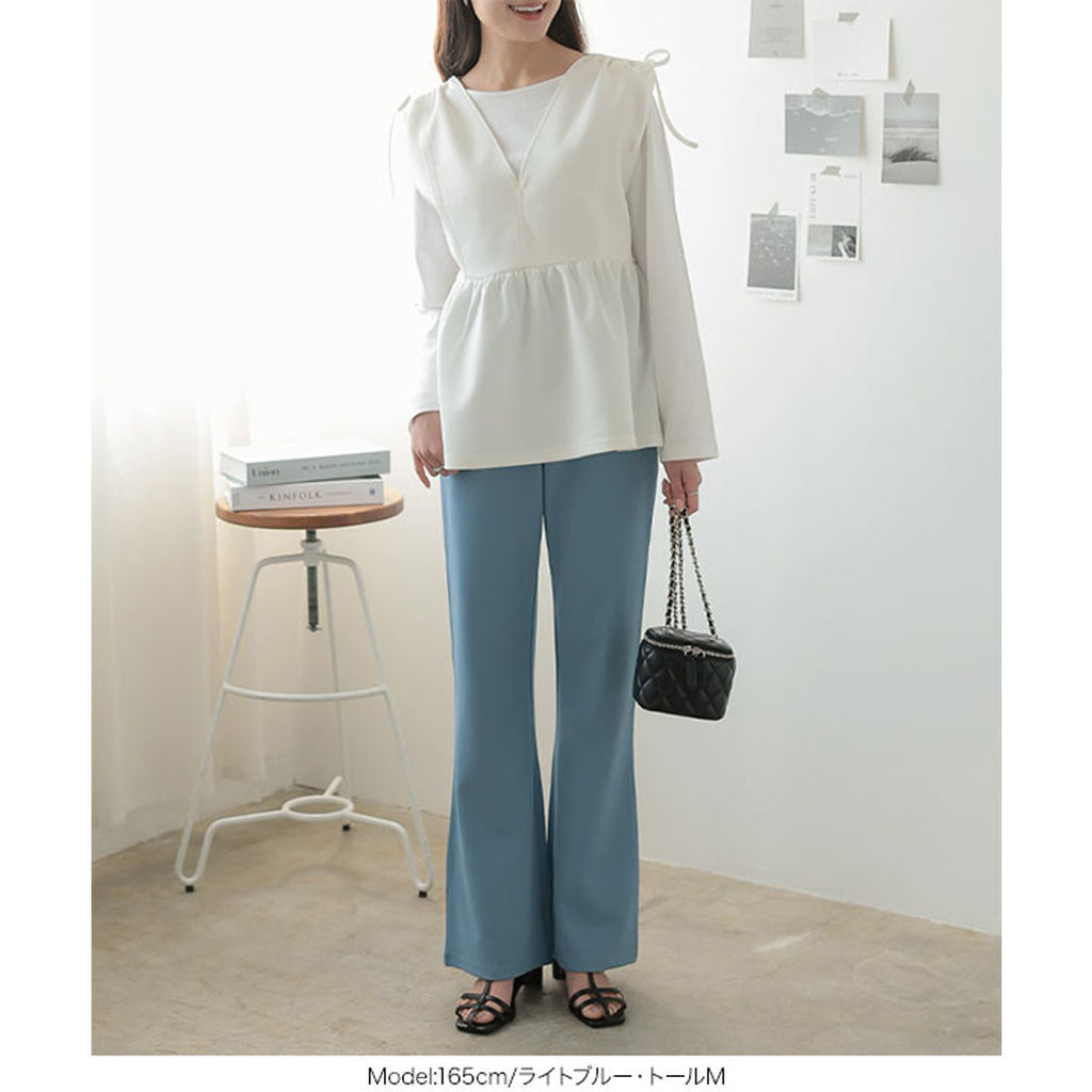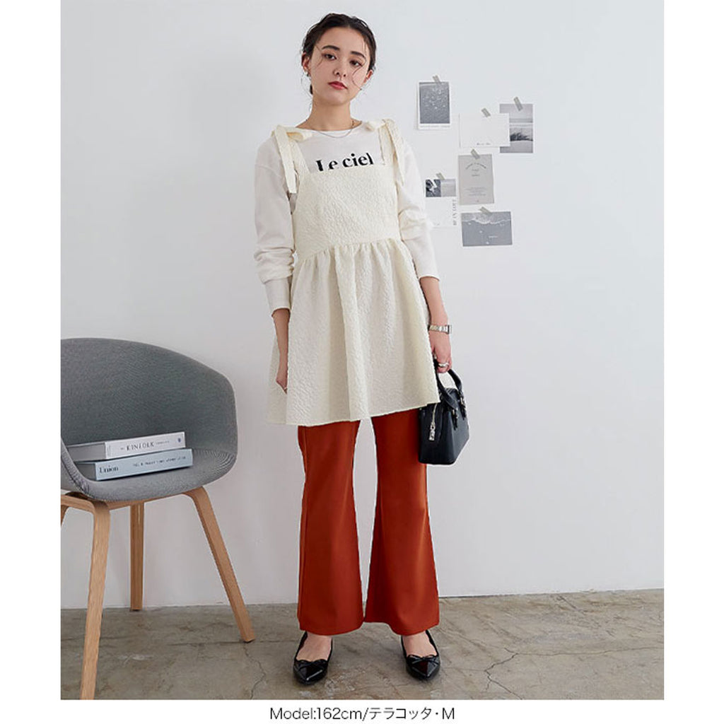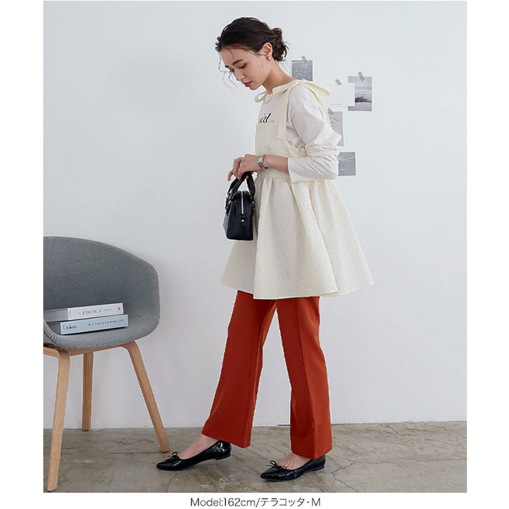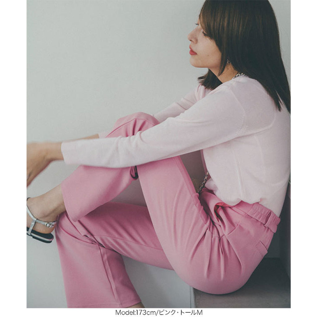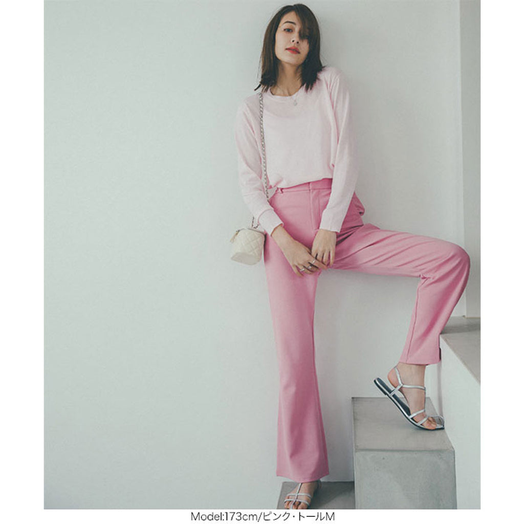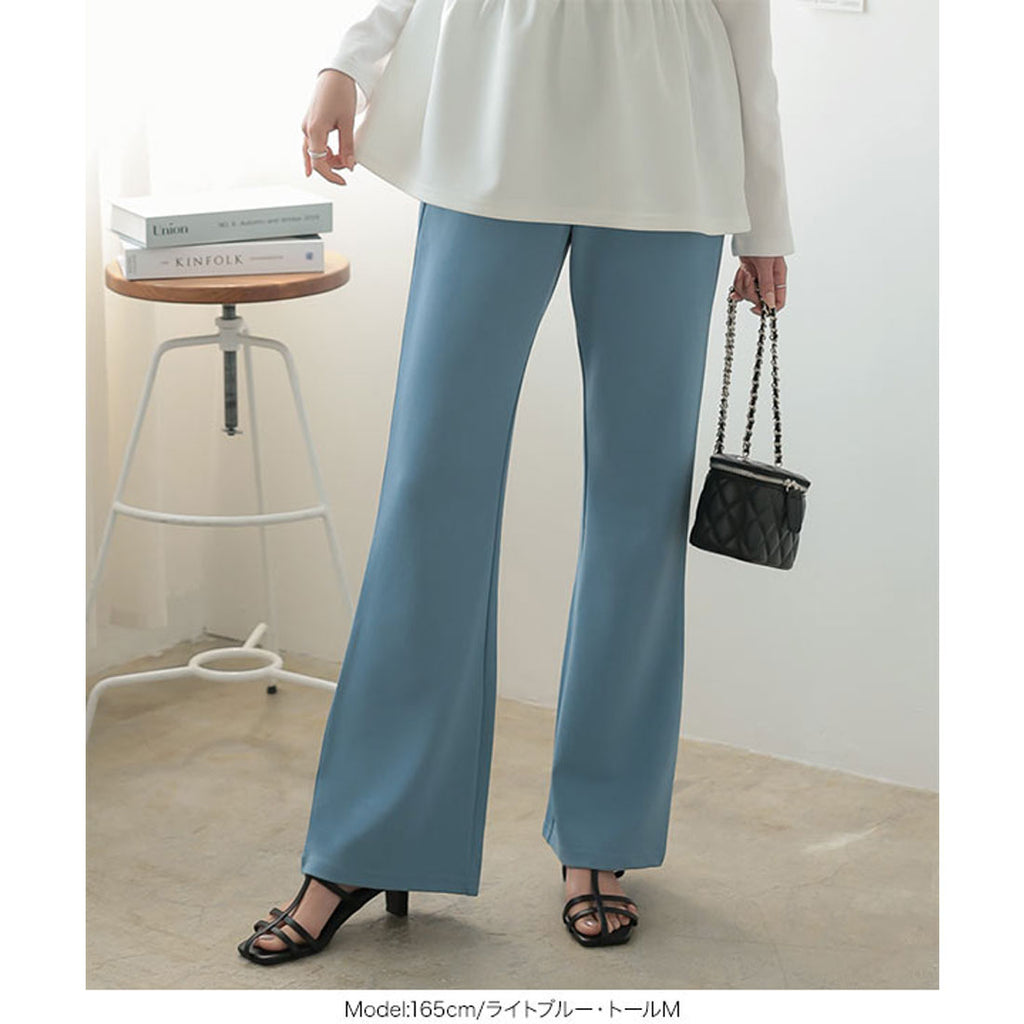 [ ストレッチ×ノーアイロン ] 選擇3種尺寸 細見的半喇叭褲 [M3848] 女士休閒褲 低身高 高身高 小尺寸 辦公室休閒 工作服 口袋設計 腰部鬆緊帶 彩色褲子 優雅 黑色 黑色 粉色 橙色 綠色 媽媽 媽媽套裝
