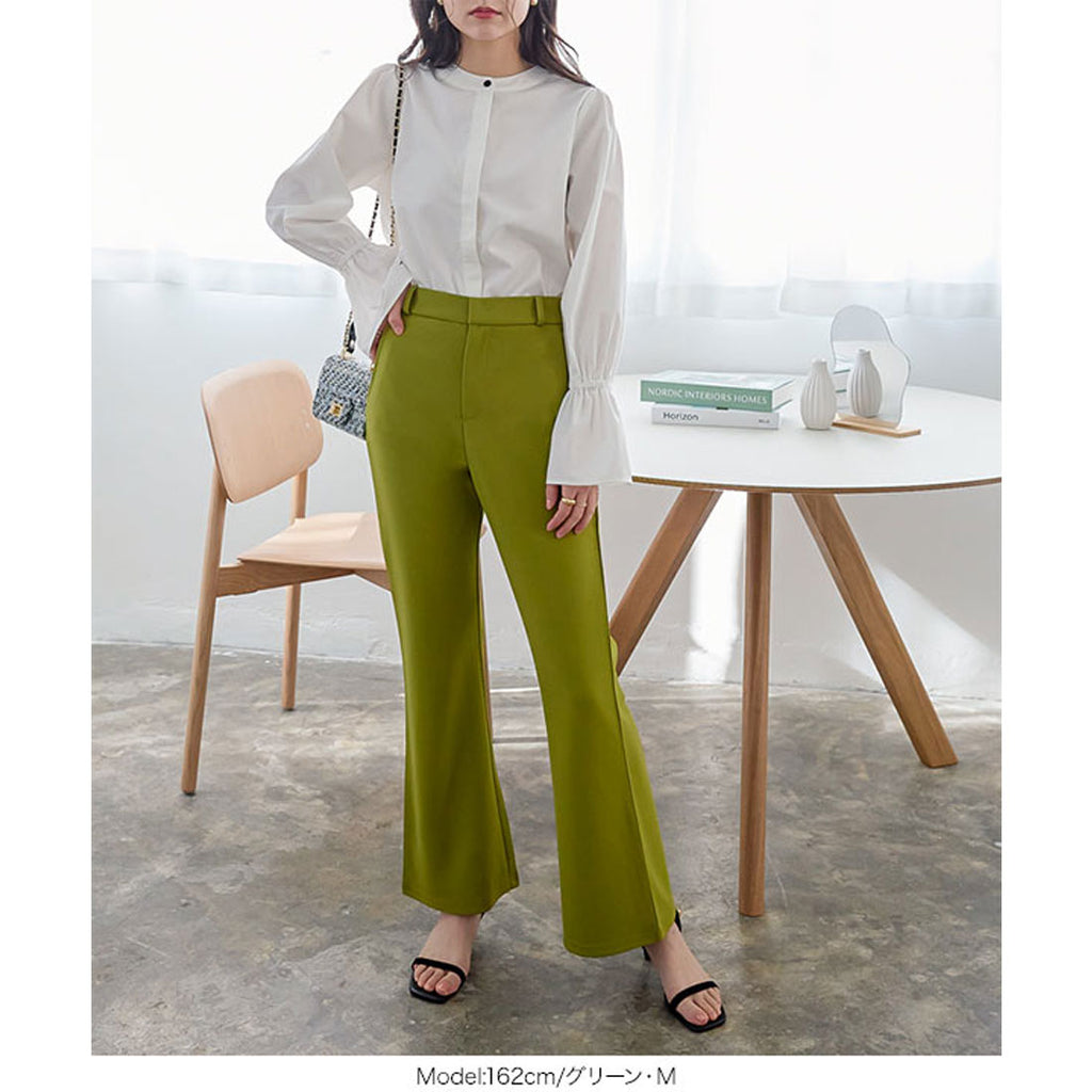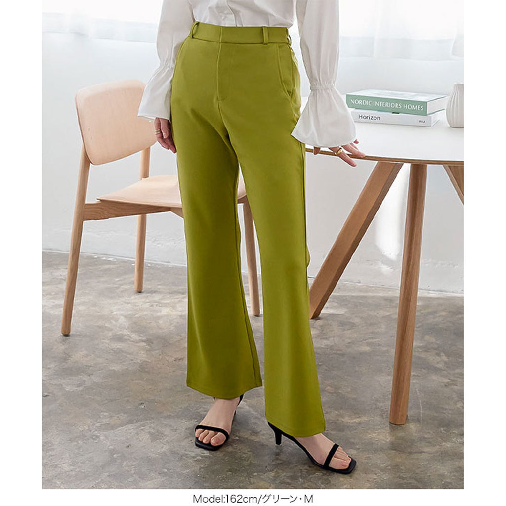 ◇コウベレタス KOBE LETTUCE 神戸レタス [ 伸縮×無需熨燙 ] 細身伸縮半喇叭褲【小】 [M3848](綠色)。