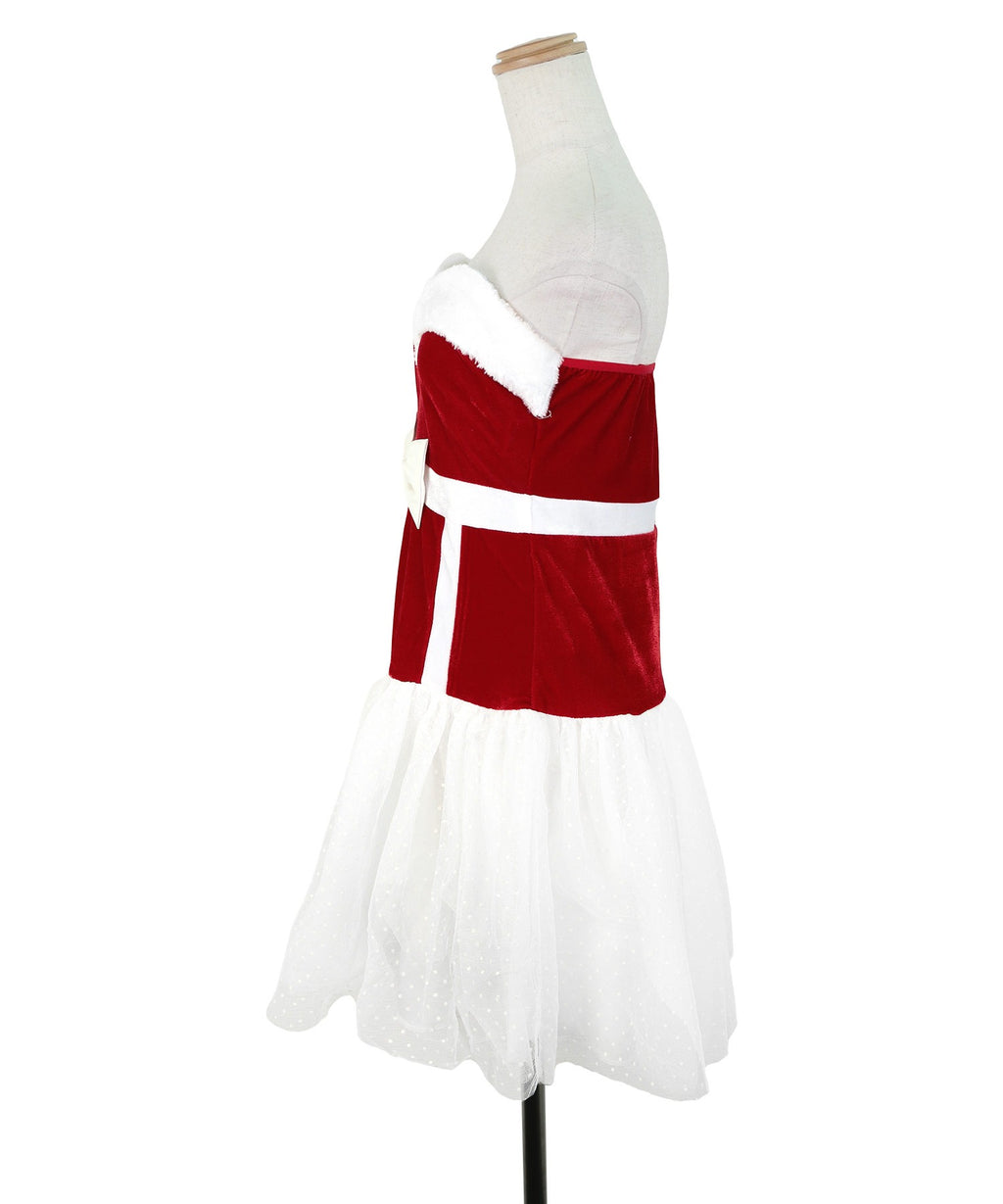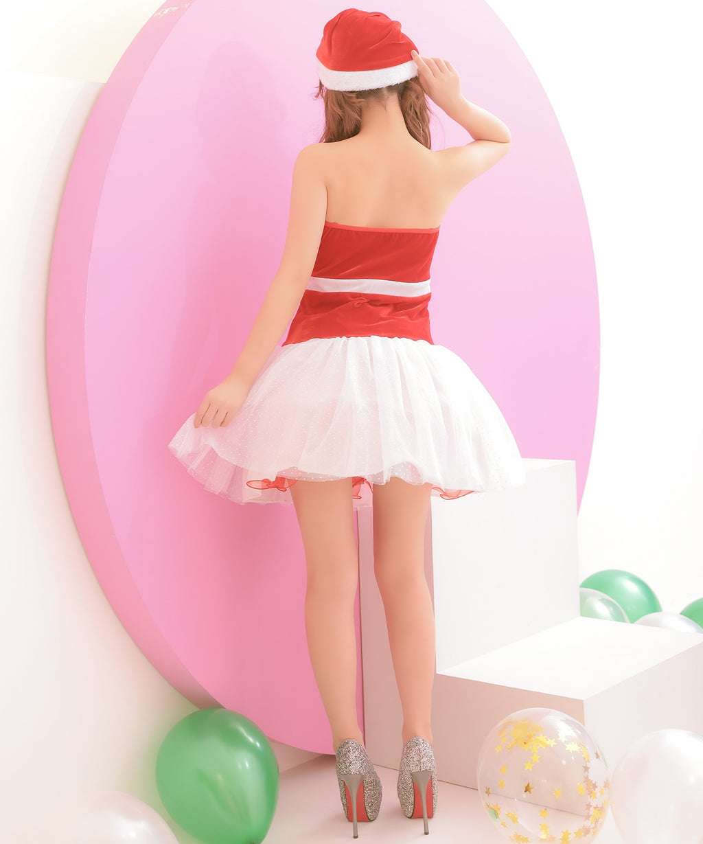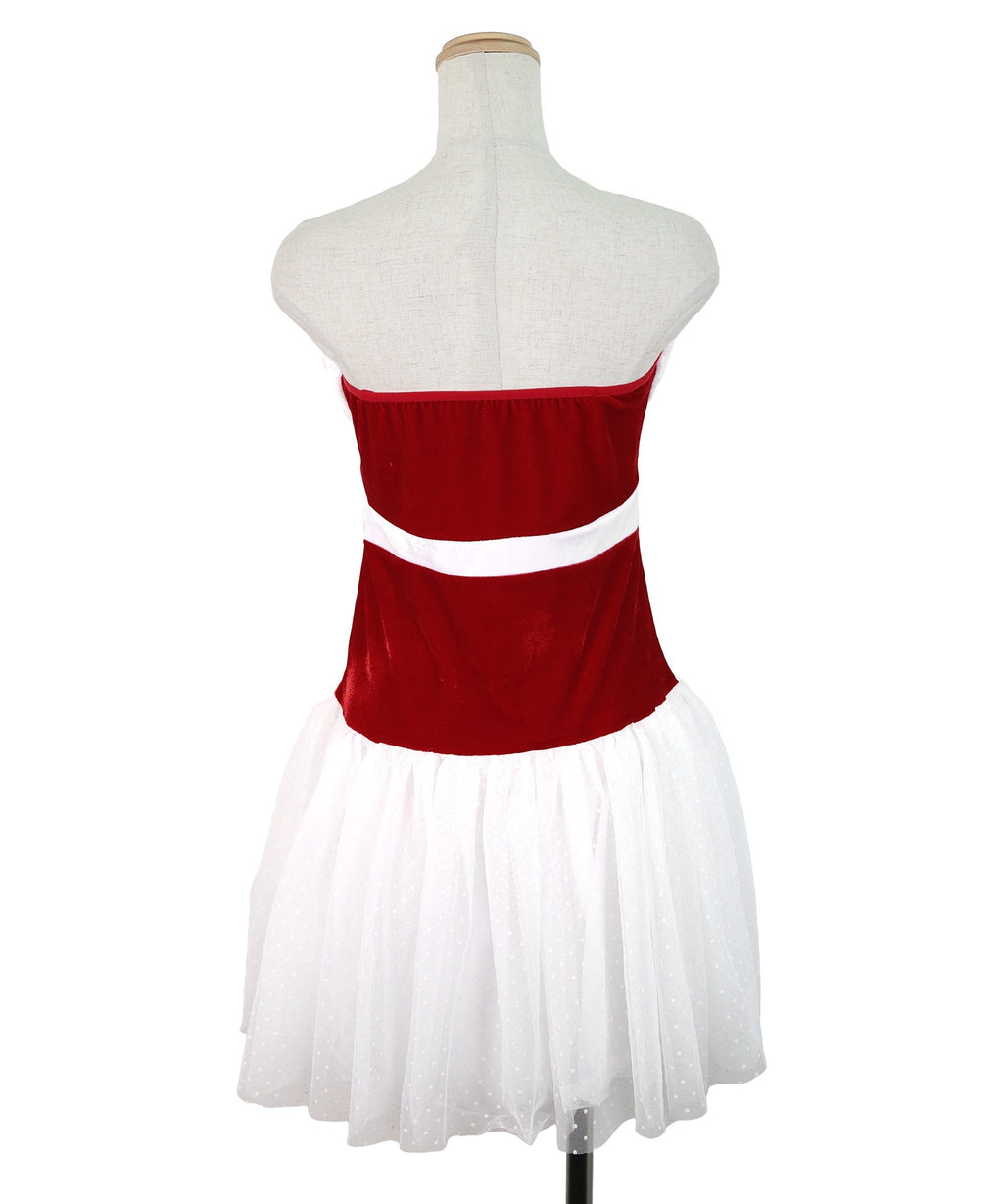 無肩帶薄紗裙連衣裙聖誕老人服裝三件套♪