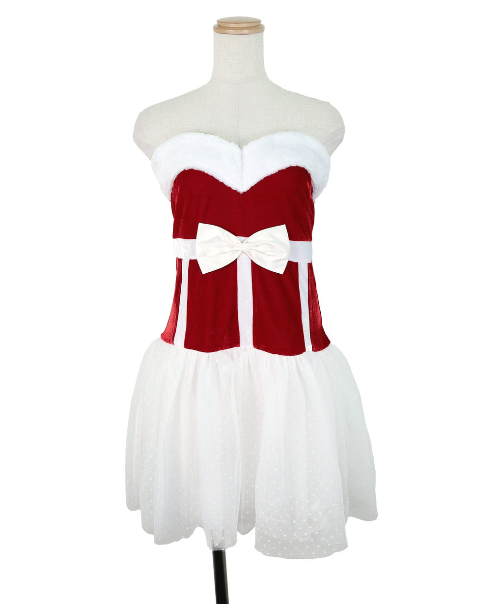 Tika Tika聖誕節聖誕老人cosplay熊頂薄紗裙子一件聖誕老人服裝3件套裝[返回產品]