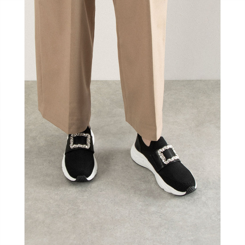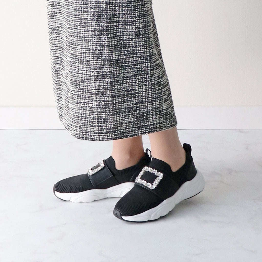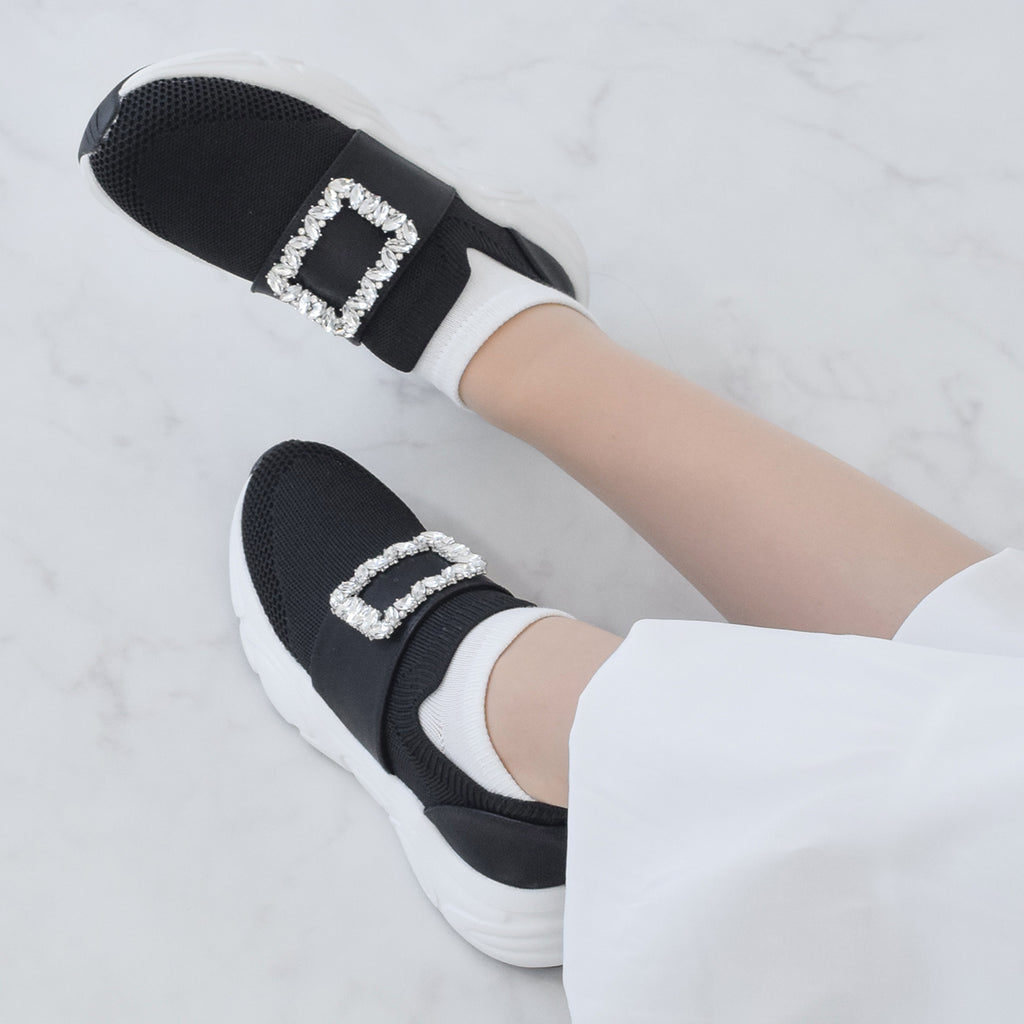 這款休閒針織材質的運動鞋,搭配華麗的扣飾珠寶,設計成大人可愛風格,容易與各種搭配相容的運動鞋。