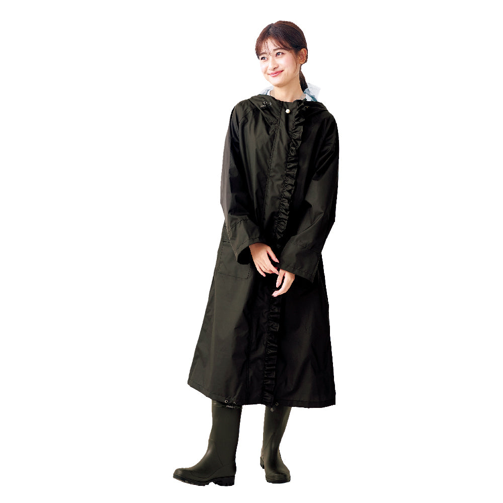 ・下擺褶皺和後絲帶很時尚!出現了粉紅色技巧的長型自行車雨衣。