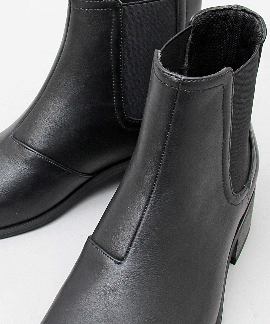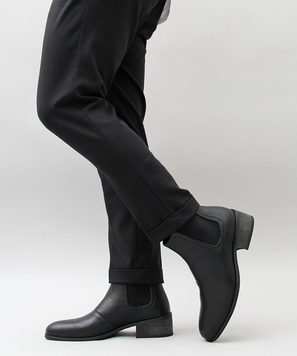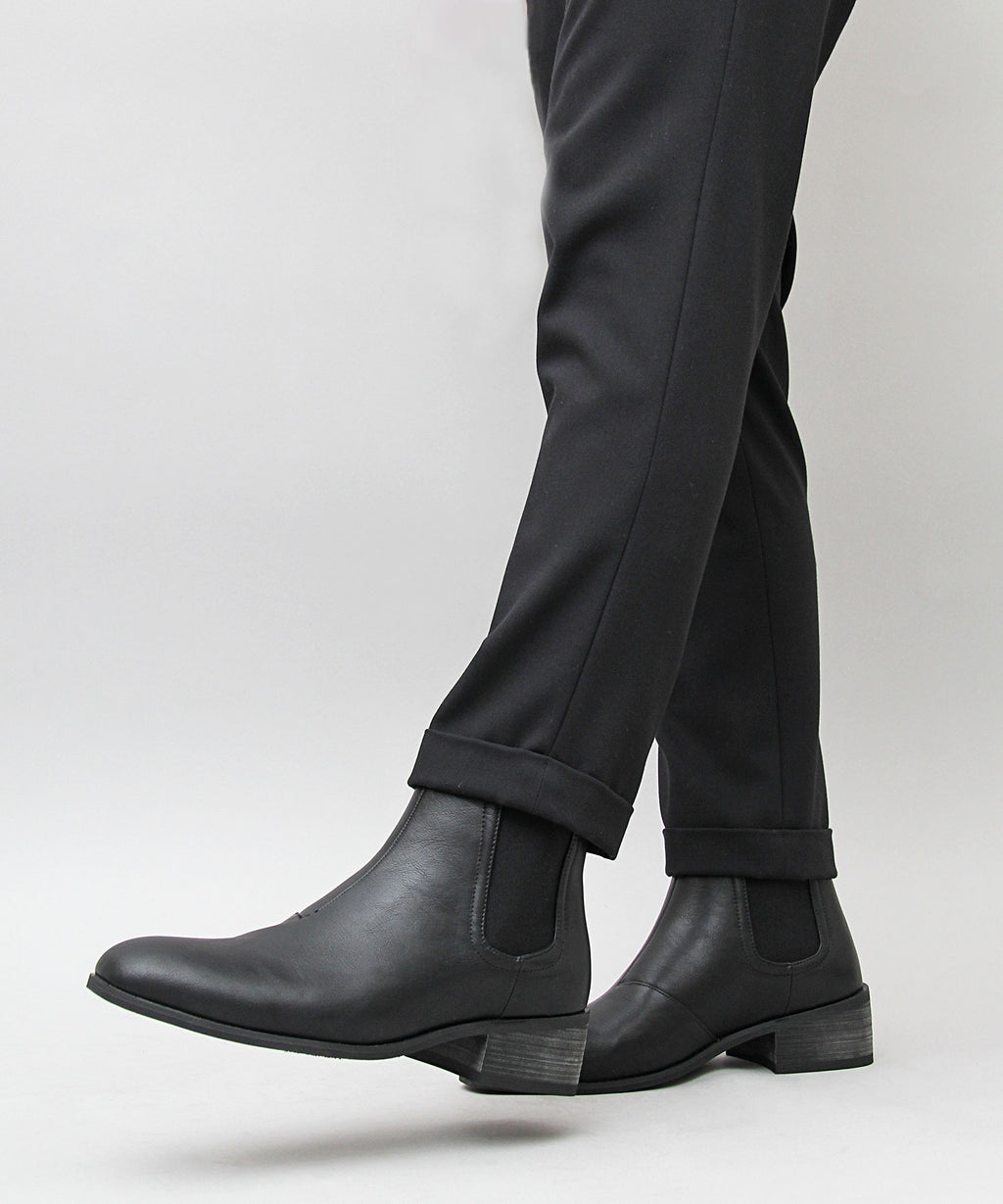 を側高靴にすることで,細身的褲子蓋上去也能讓褲腳整齊收束,這也是一個重點。