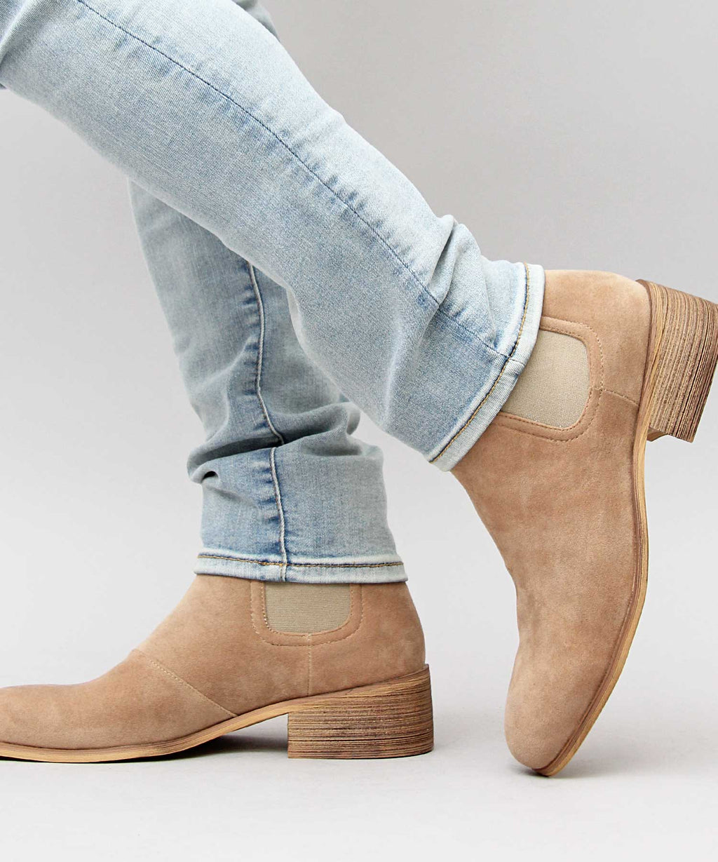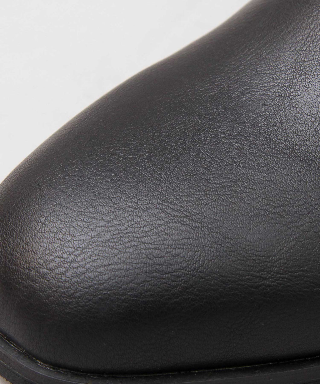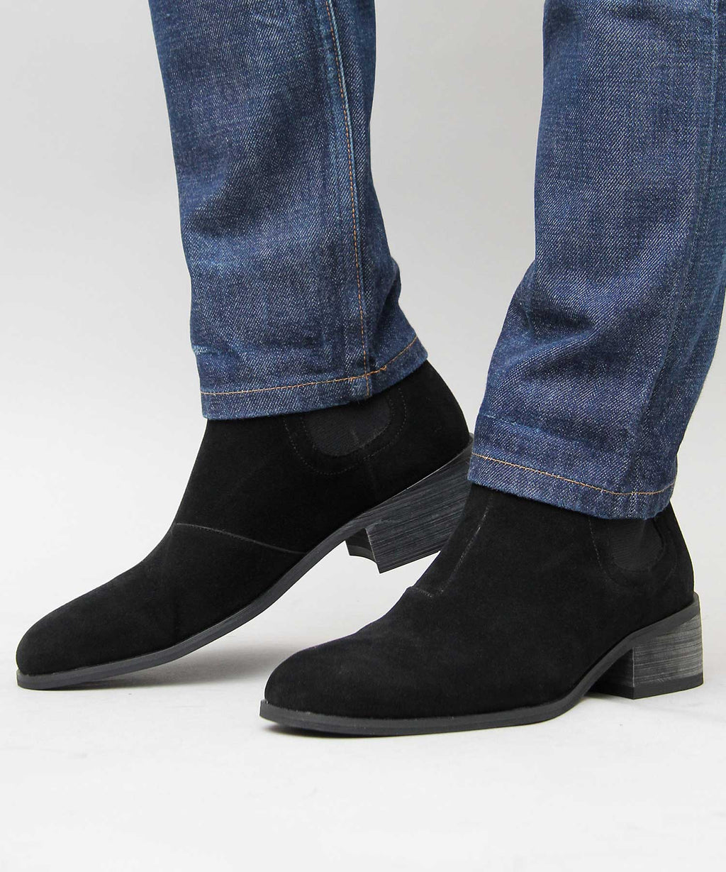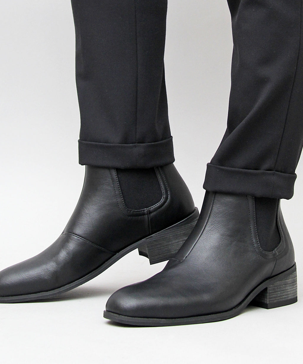 を側高靴にすることで,細身的褲子蓋上去也能讓褲腳整齊收束,這也是一個重點。