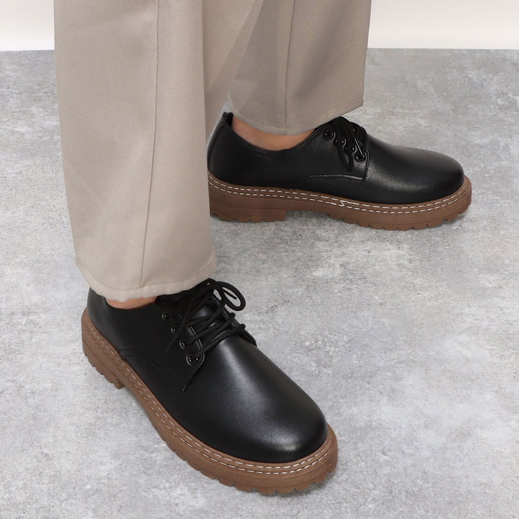程適的厚底坦克鞋底,與寬褲等搭配相當合適的輪廓。