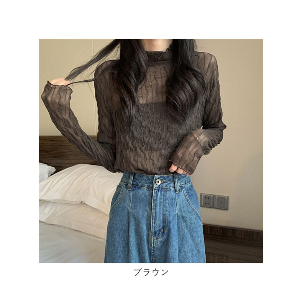 ・採用透明布料製成的上衣,寬鬆寬鬆的設計。與內衣搭配,打造時尚疊搭♪