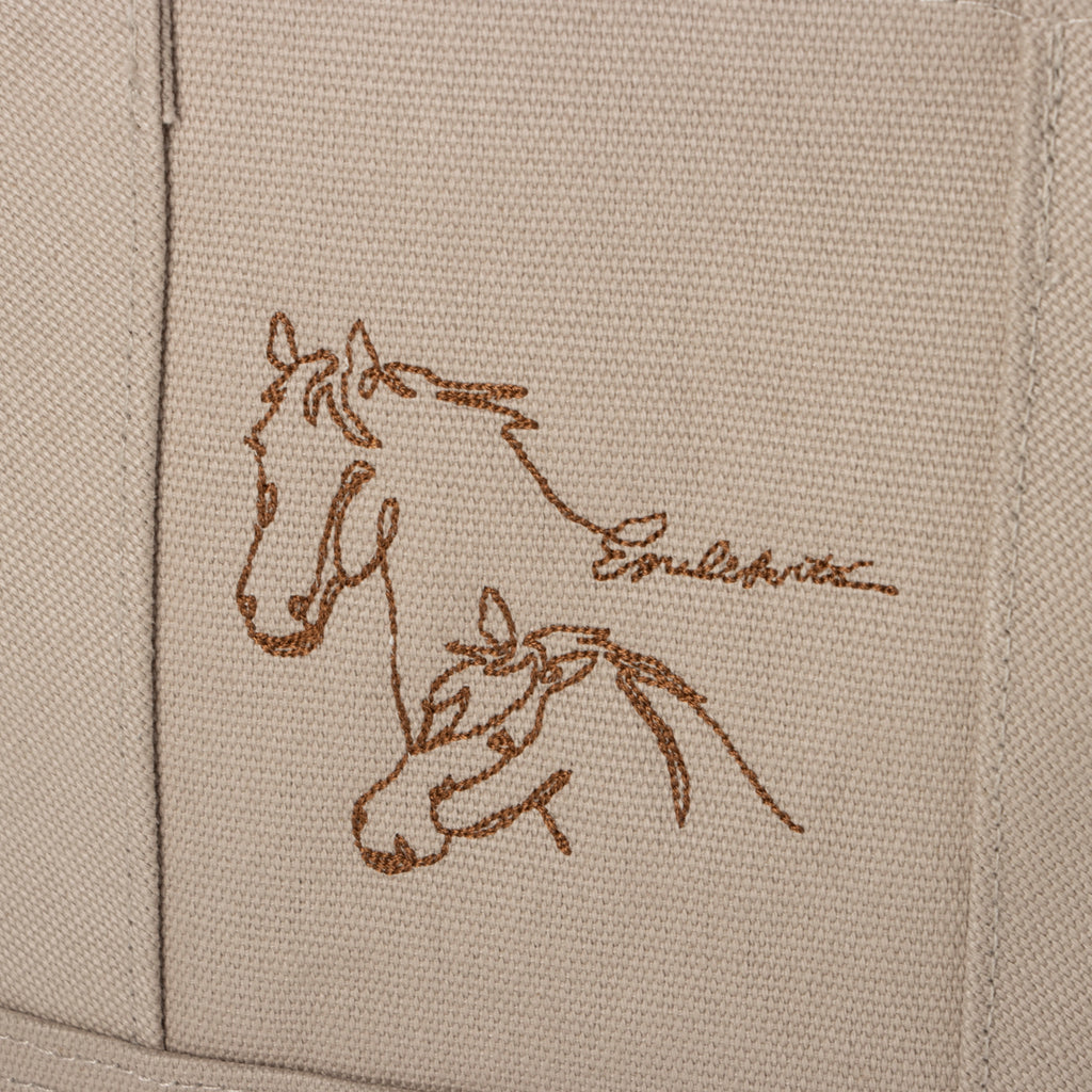 - 帶有金馬刺繡的迷你帆布手提包。