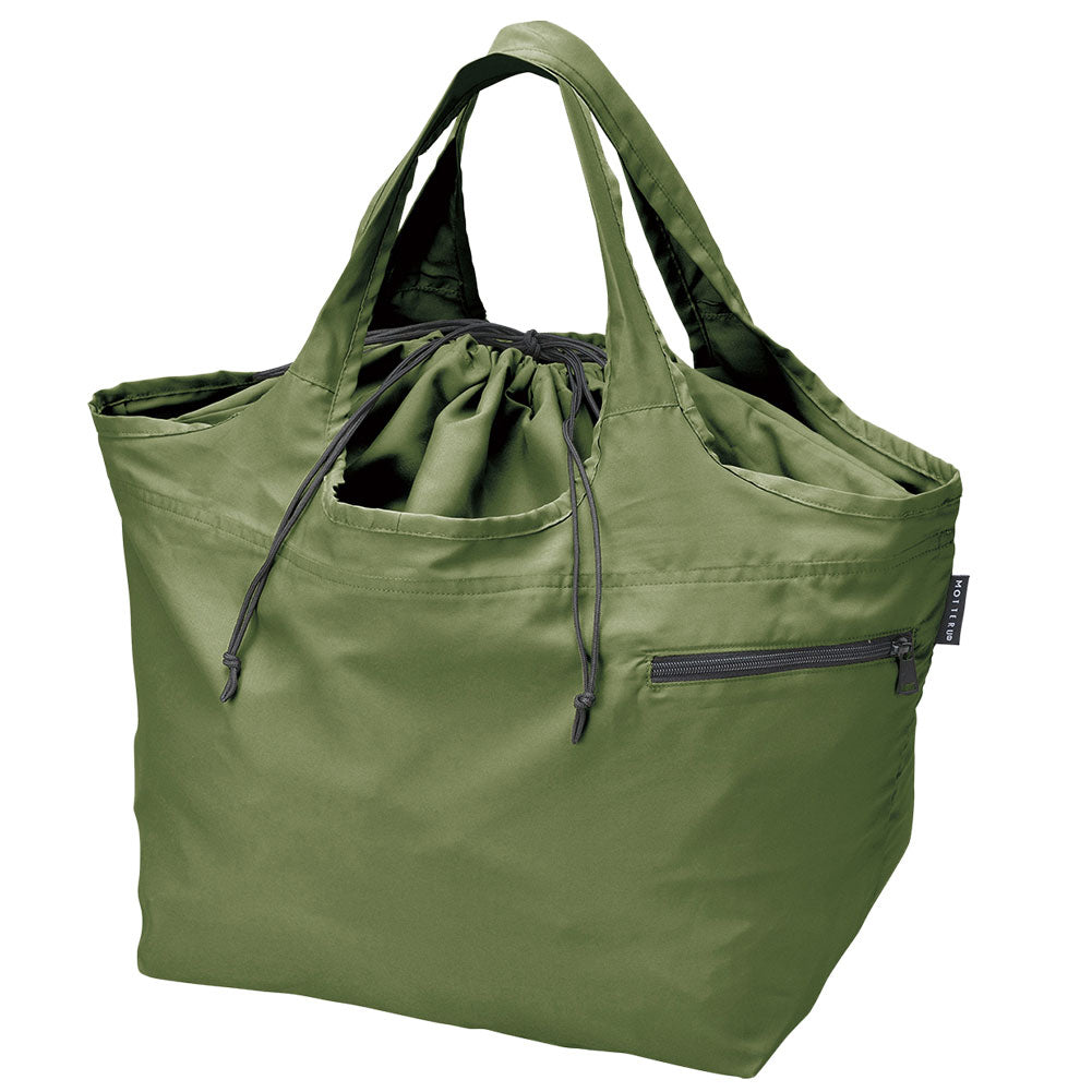 - 可以像抽繩袋一樣用繩子將開口收緊,這樣即使買很多東西,食物也不會溢出來。